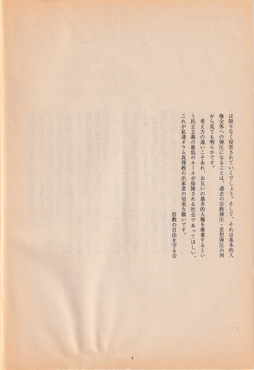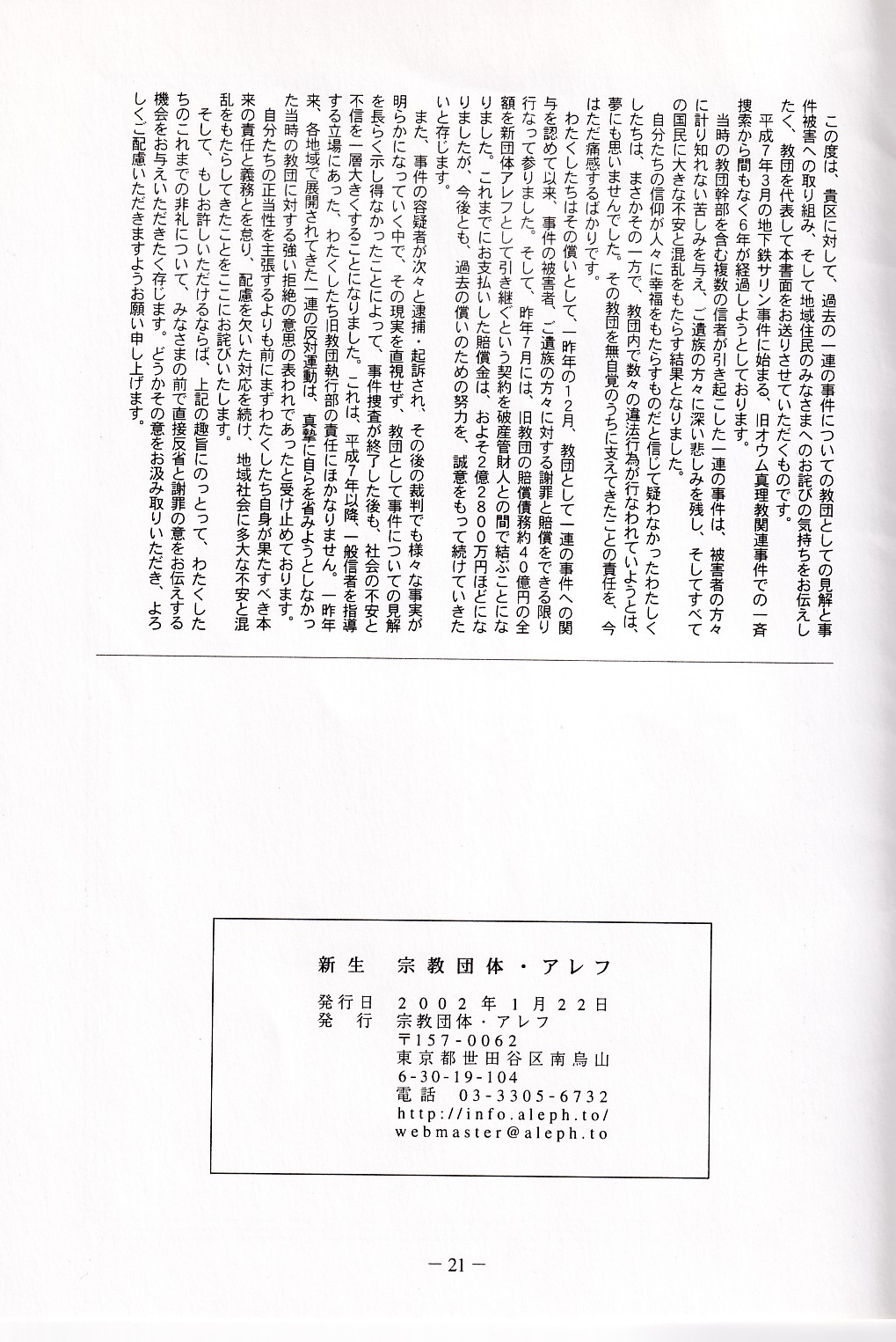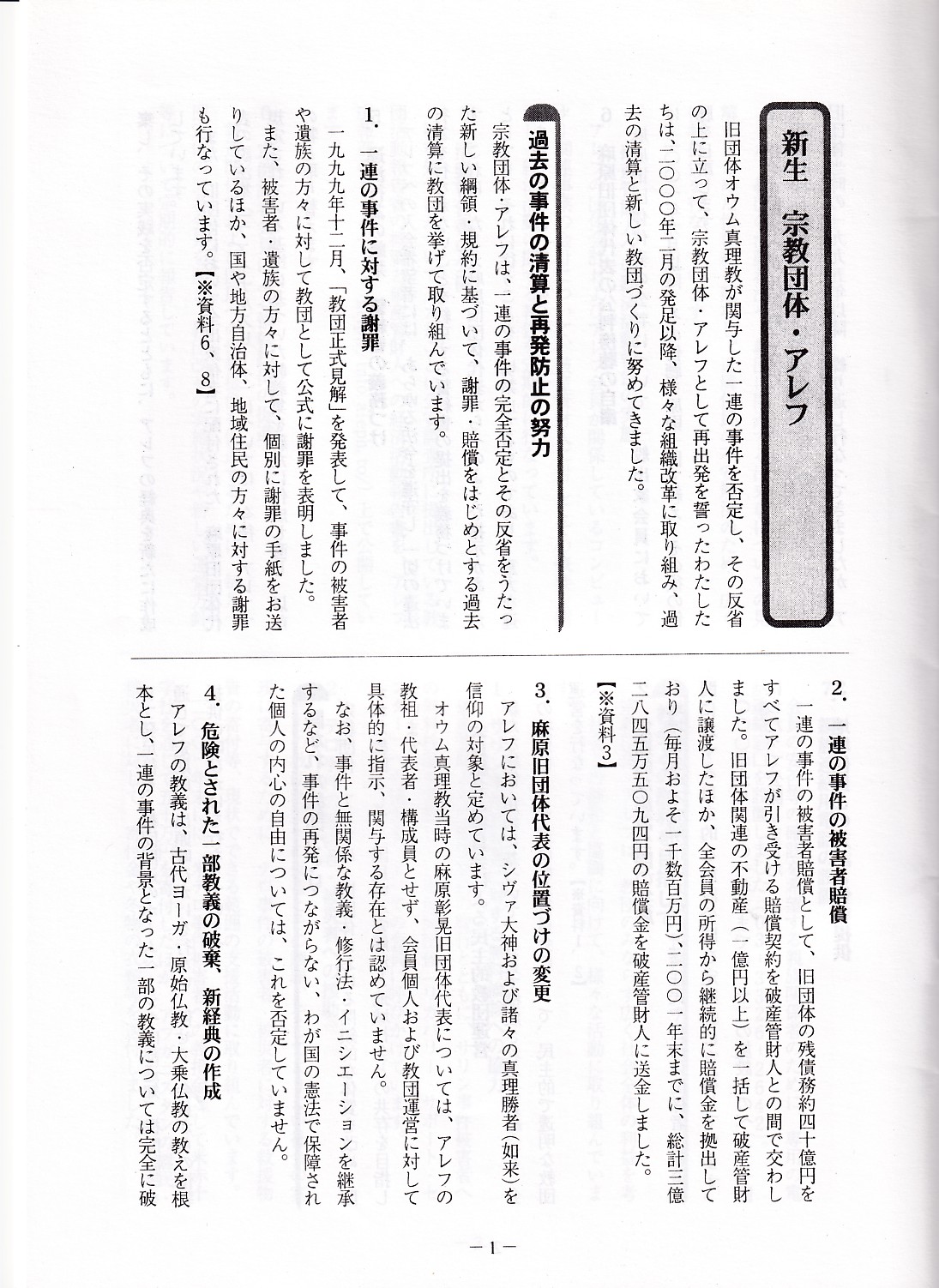 オウム真理教から生まれ変わった教団の取り組みを紹介した冊子。2002年1月22日発行。