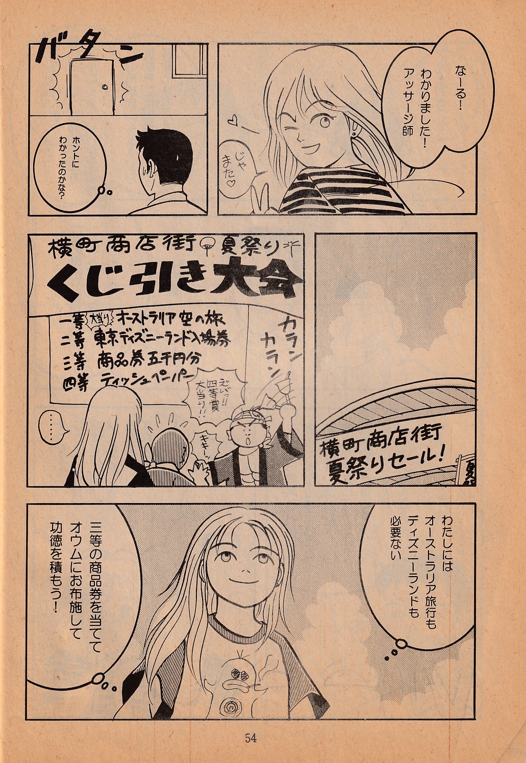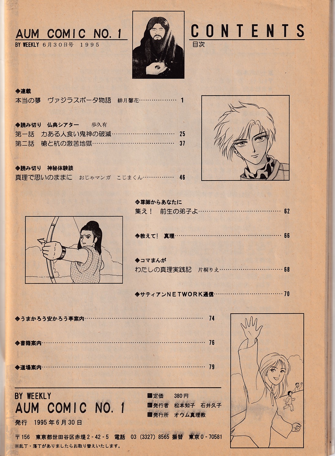 オウム真理ったら、サリンを撒いた直後にこんな楽しい漫画雑誌を新刊したのですね。オープニングは有名な?ヴァジラ・スポータ物語(本当の夢)。