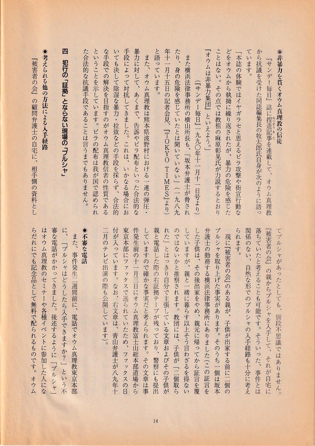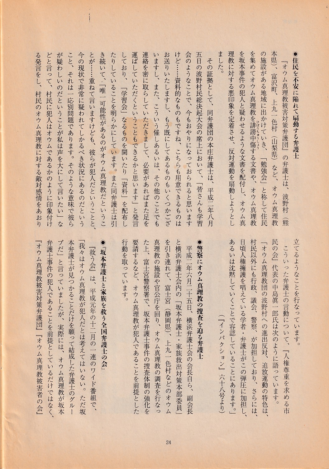 報道されない真相:坂本弁護士一家失踪事件におけるオウム真理教信者に対する人権侵害(1991年5月25日発行)