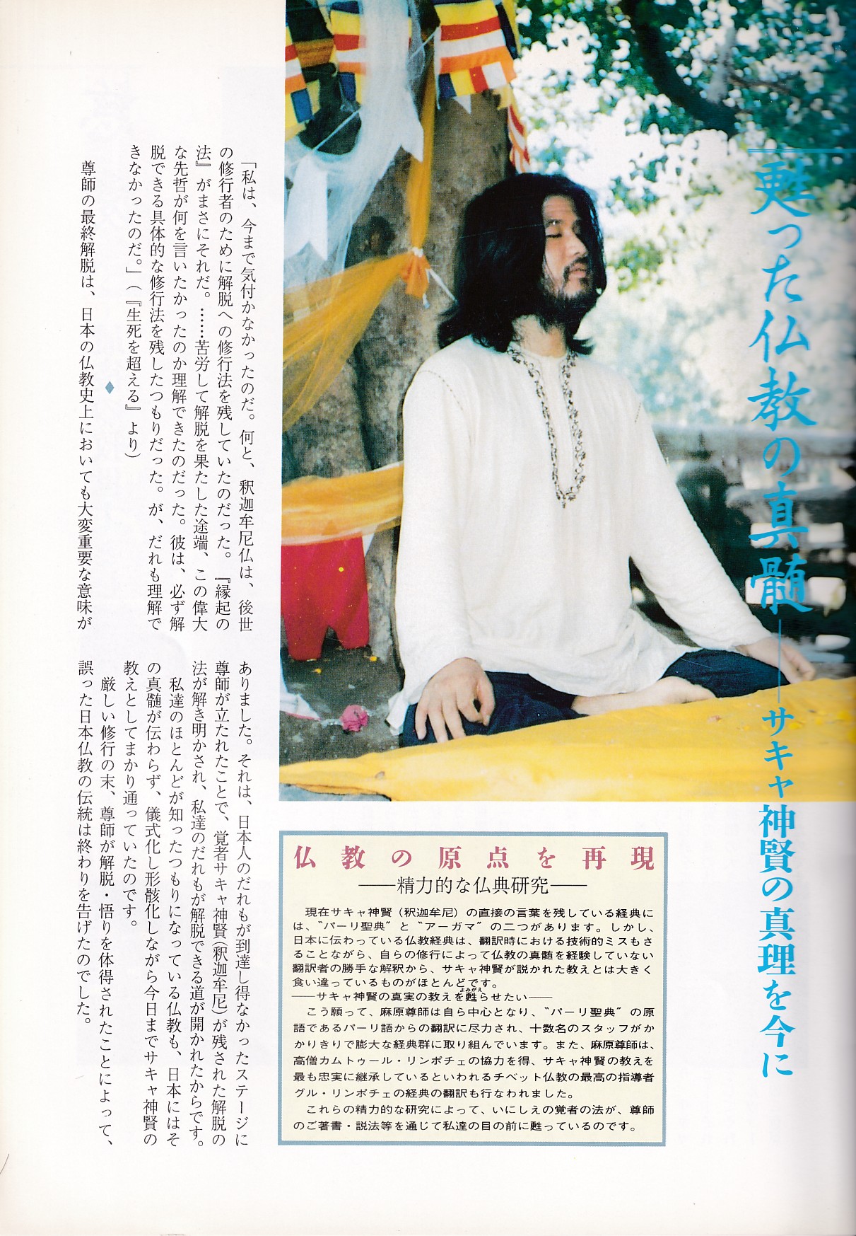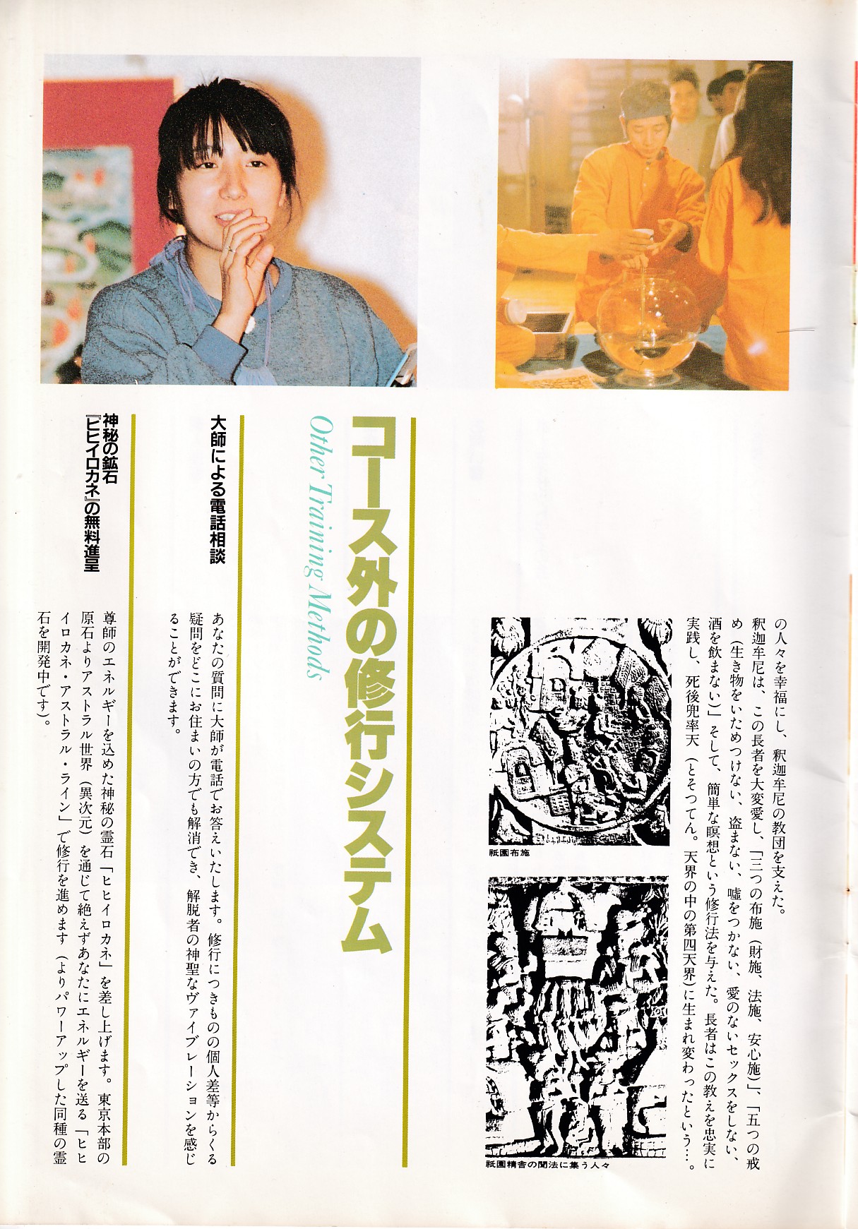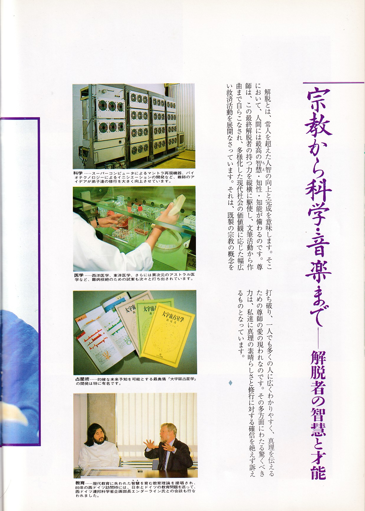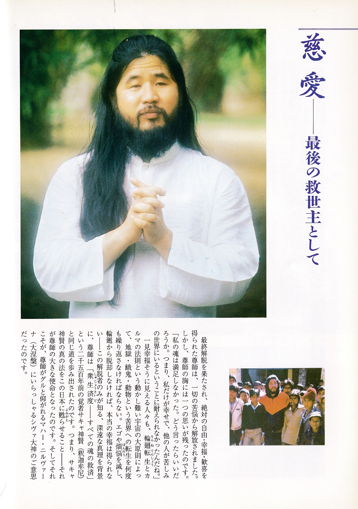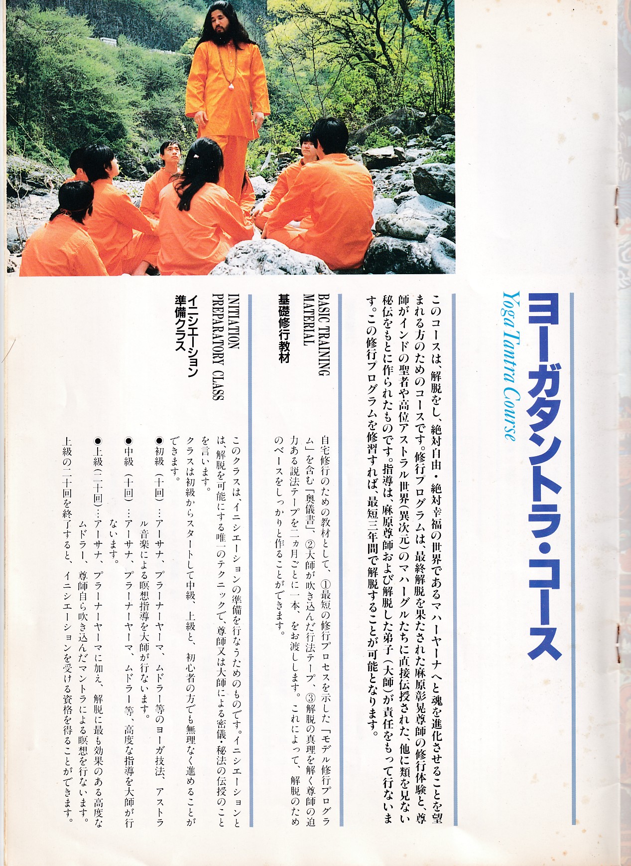 上と同じく、オウム真理教の紹介パンフ。こちらはカラー写真中心のパンフ。A4サイズの大判です。久しぶりに凛々しい尊師のお姿をご覧になりたい方にお勧めです。
