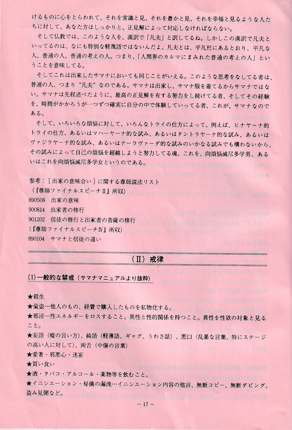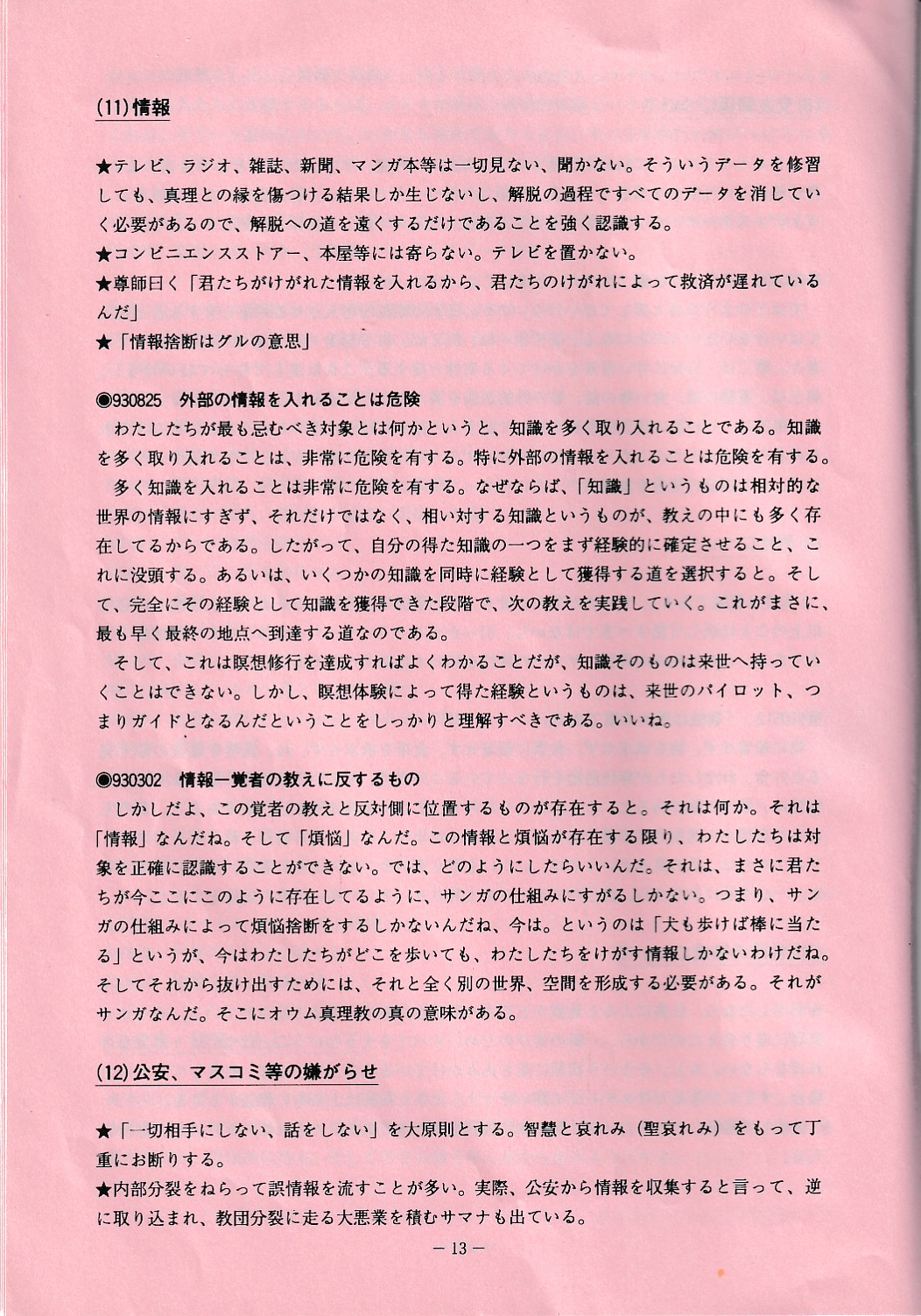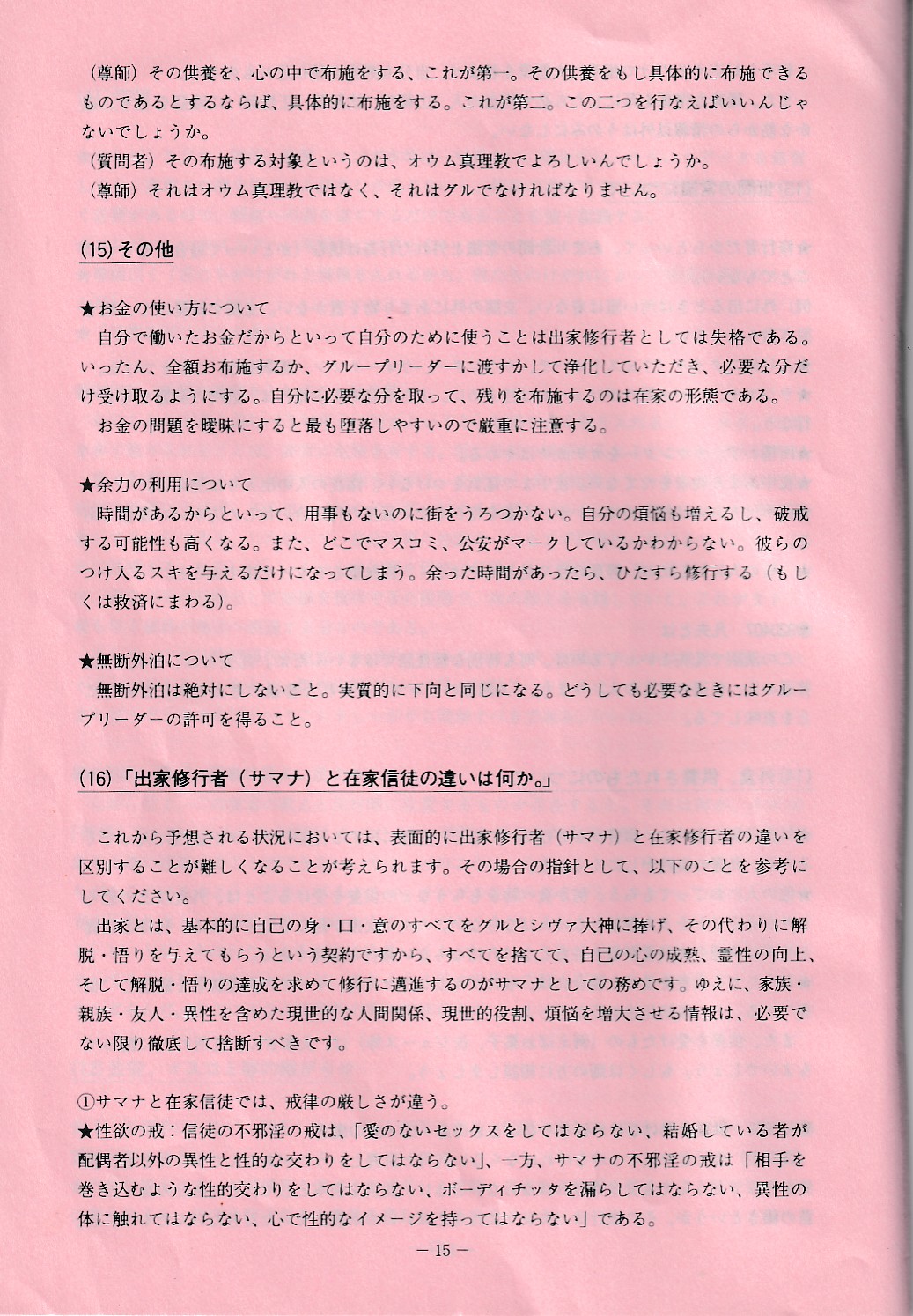 サリン事件後に作られたサマナ向けのマニュアルです。もっともこの後、上九一色村は崩壊します。