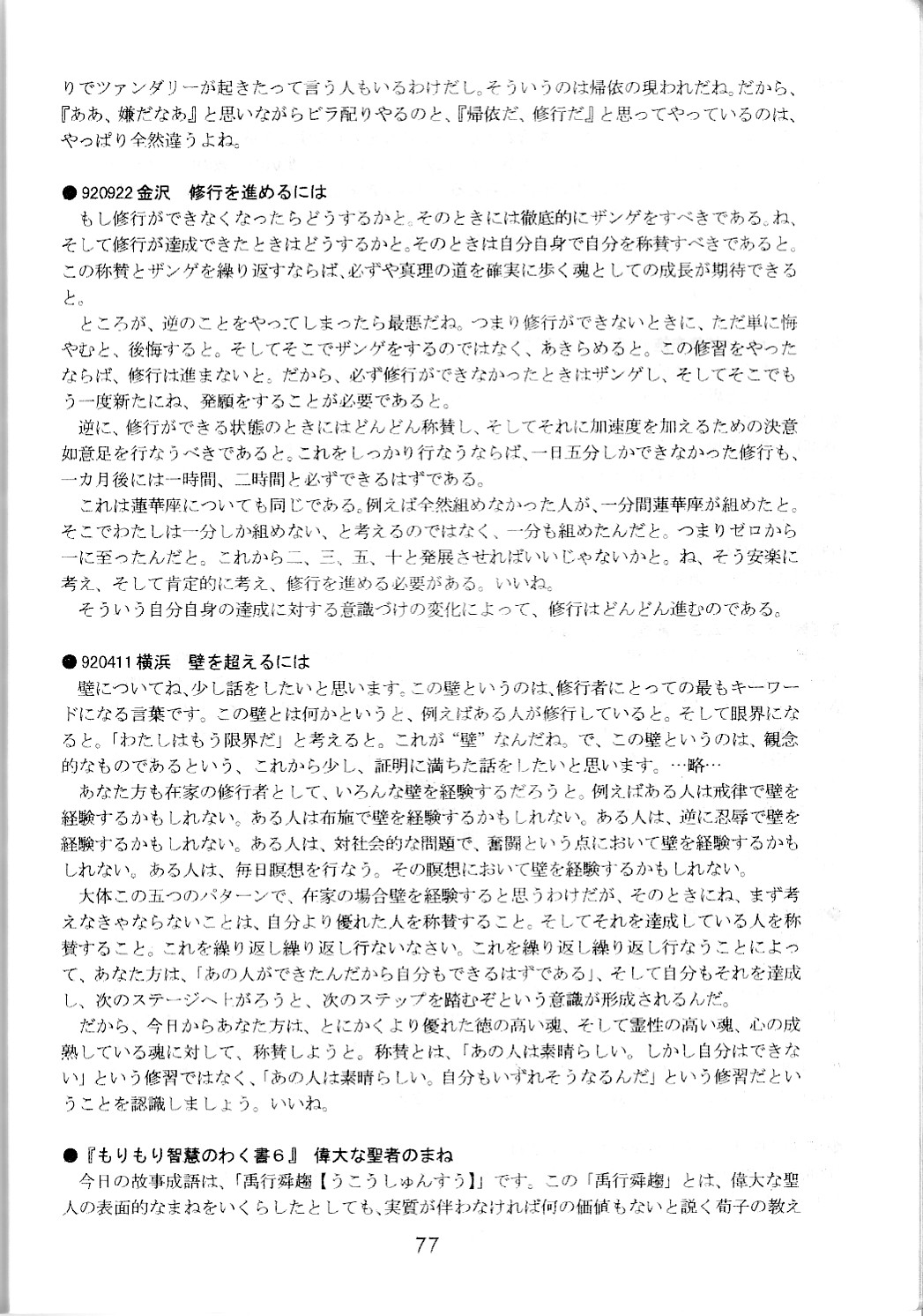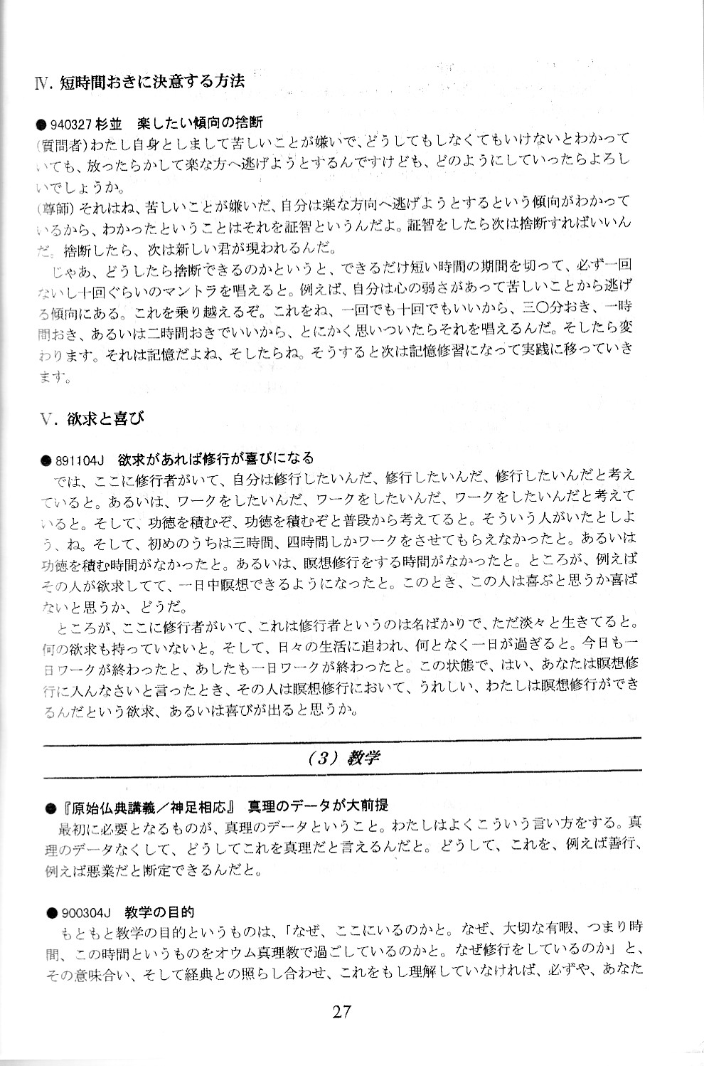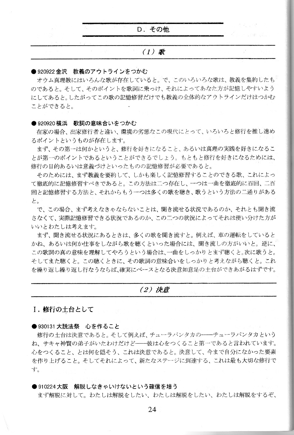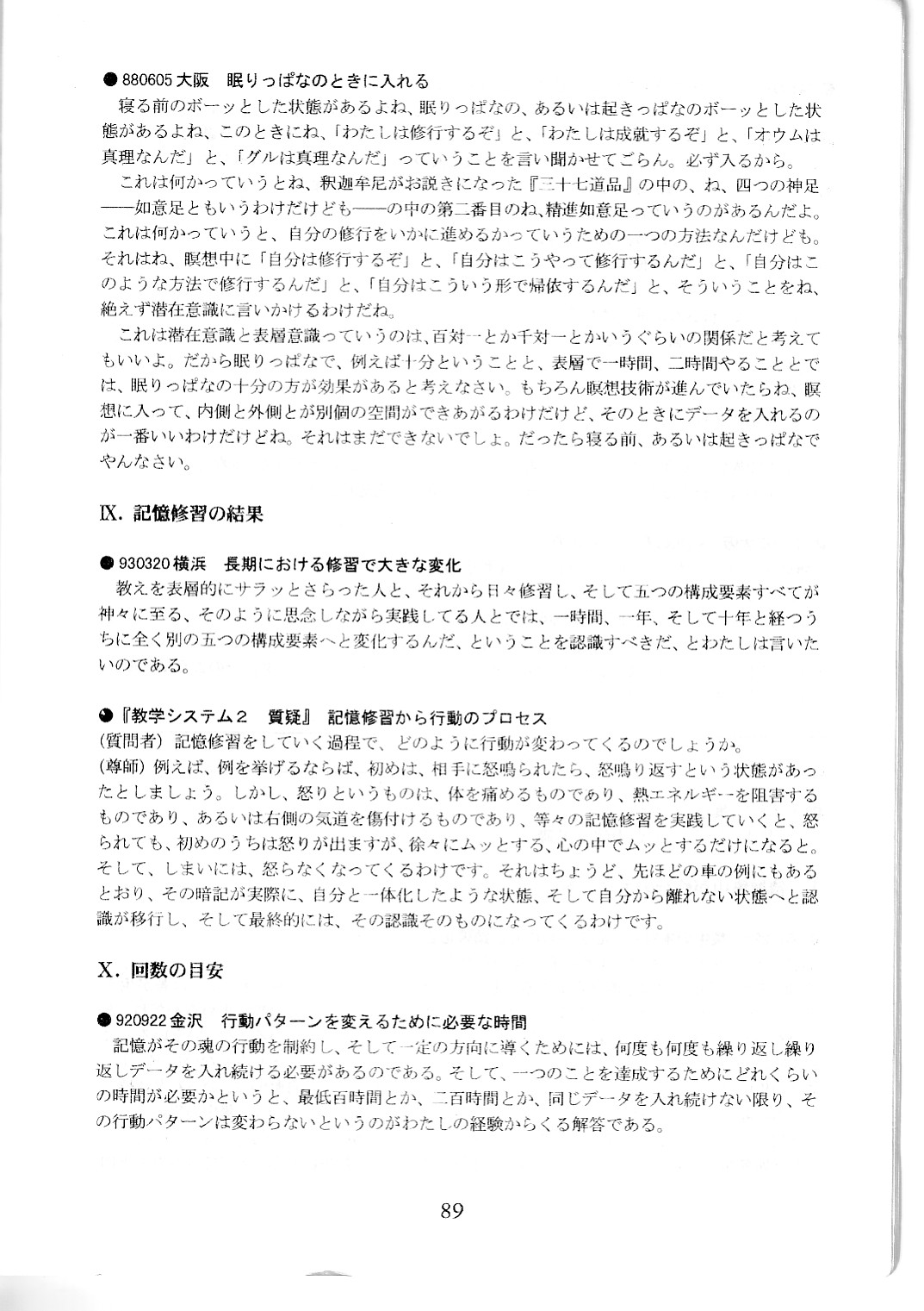 サリン事件後に作られたサマナ向けのマニュアルです。もっともこの後、上九一色村は崩壊します。