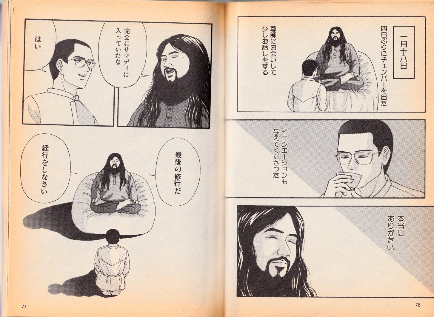 麻原彰晃の自伝風架空漫画(後編)。しかし、前編と後編で全くタイトルが違う。更に、インド旅行を契機に、かわゆいかわゆいレイちゃんが消えて、ケイマだのアングリだのレギュラー陣に。俺のレイちゃんを返してくれ!