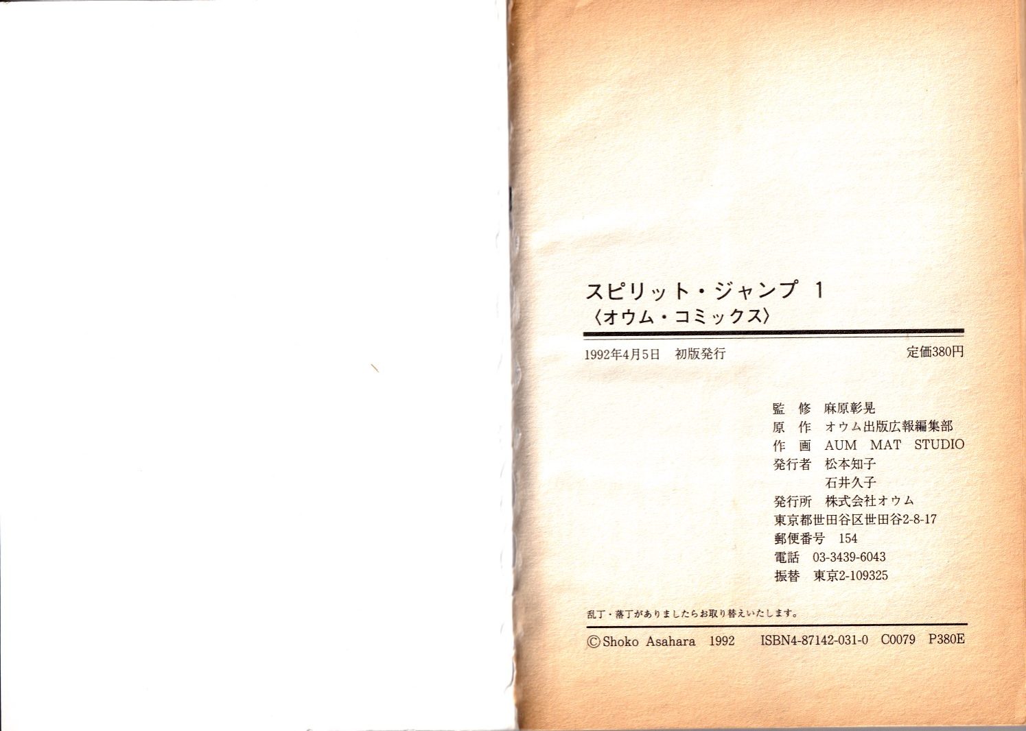 オウム真理教の漫画単行本。第3巻まで持ってます。