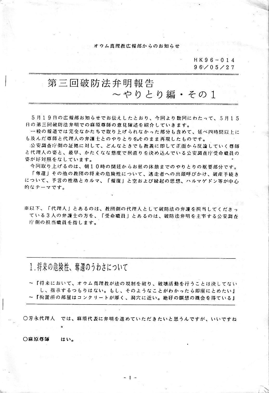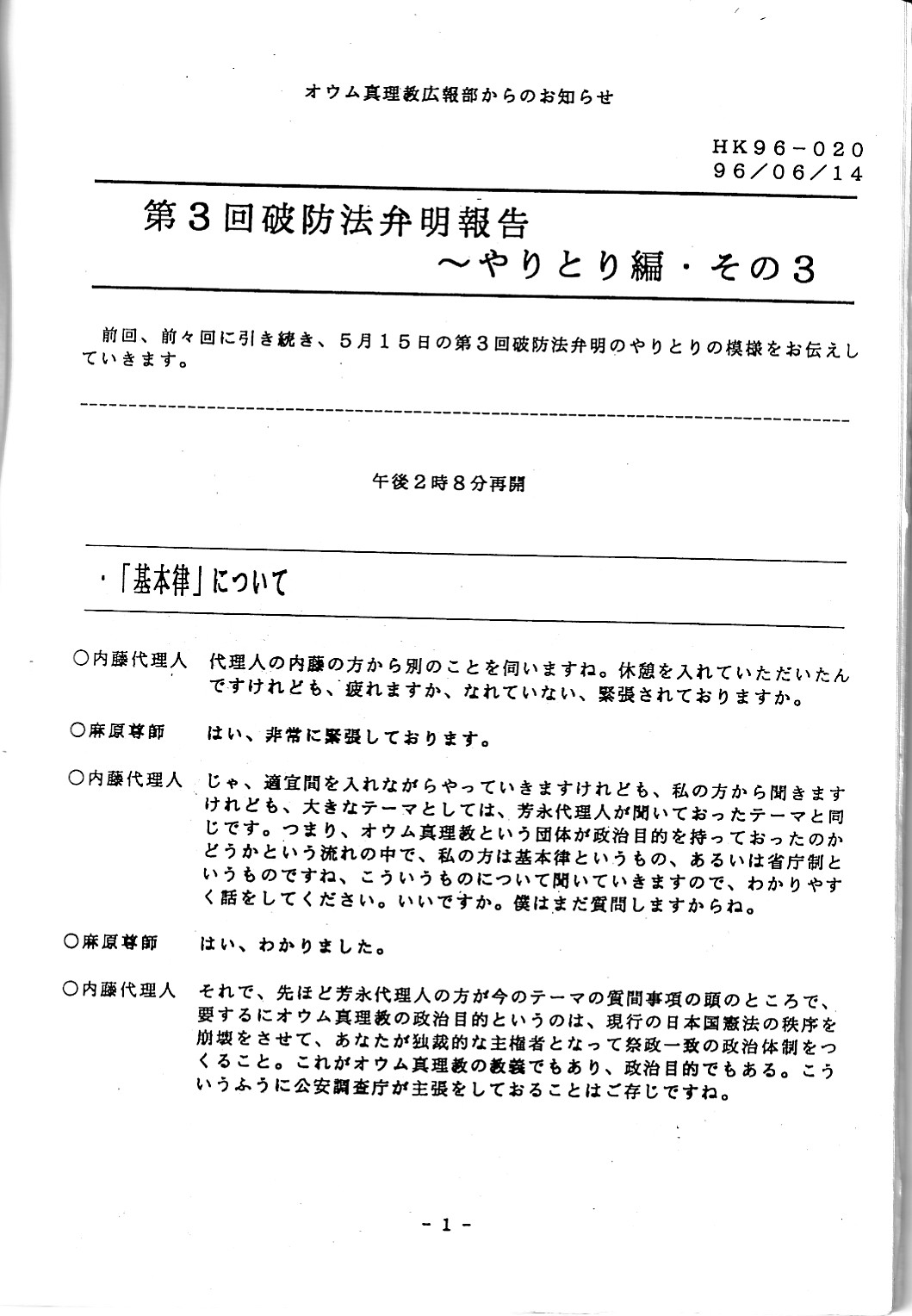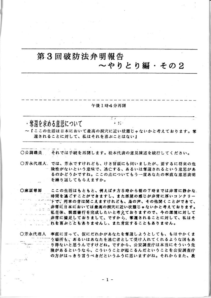 第三回破防法弁明報告~やり取り編(教団関係資料)