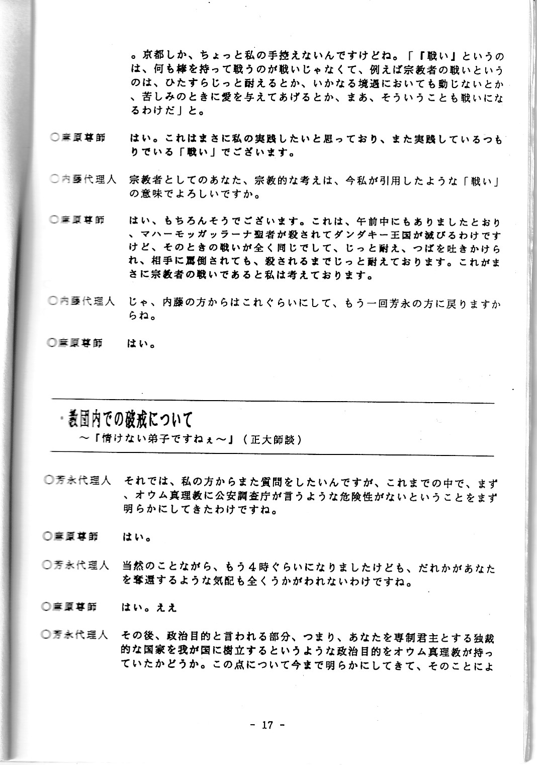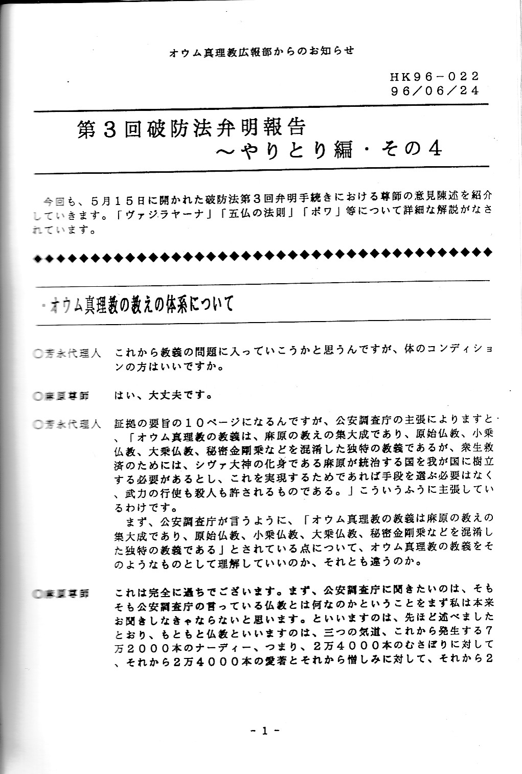 オウム真理教に破壊活動防止法に基づく解散命令適用が浮上した際の教団内資料。その1からその4まであります。なお、その4が終わると、最後に何故か車輛仕業点検簿がありますす。何故に「車輛」と旧字?