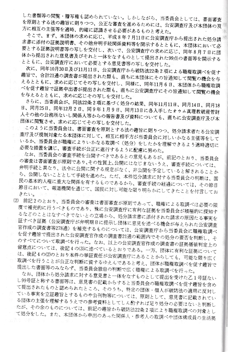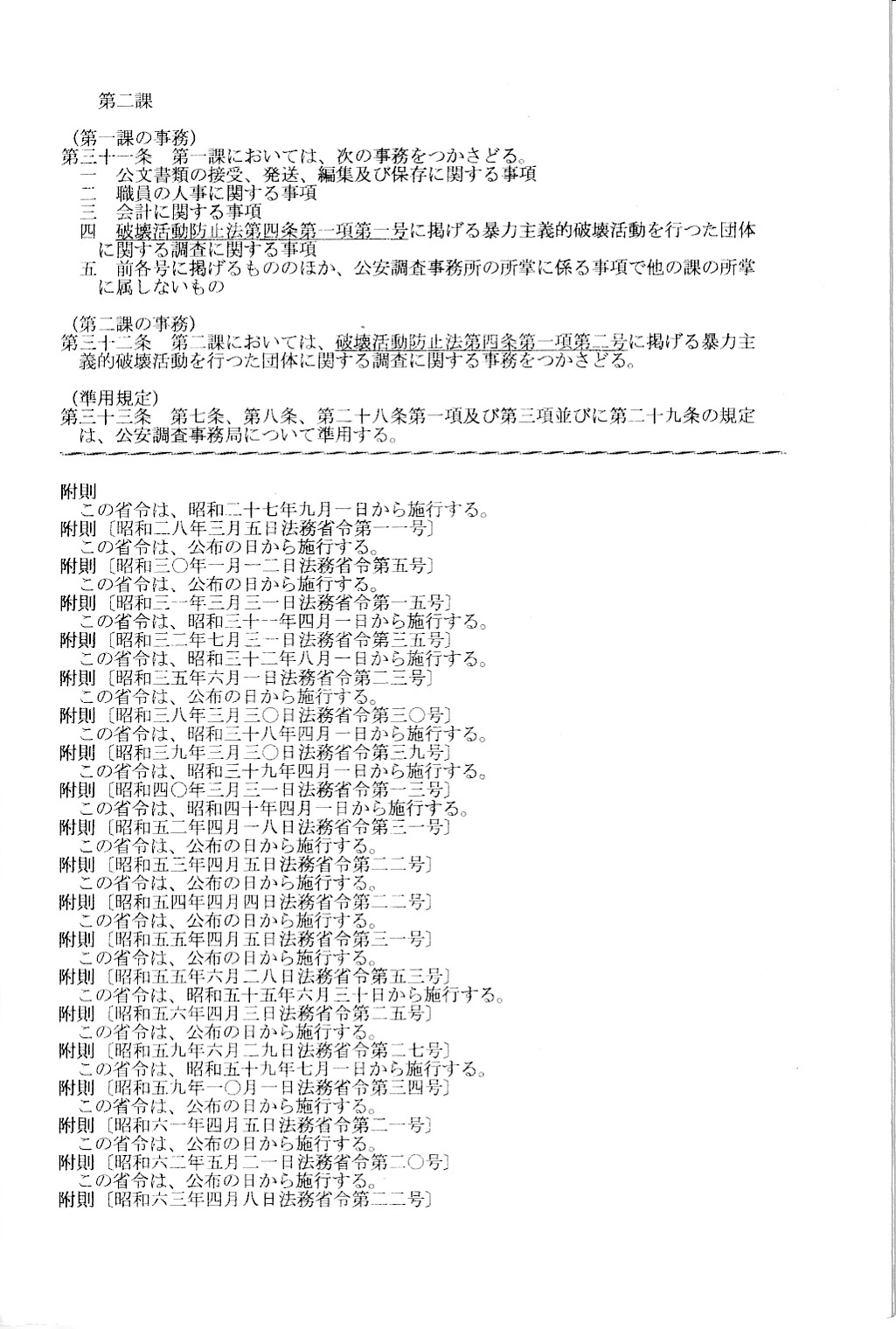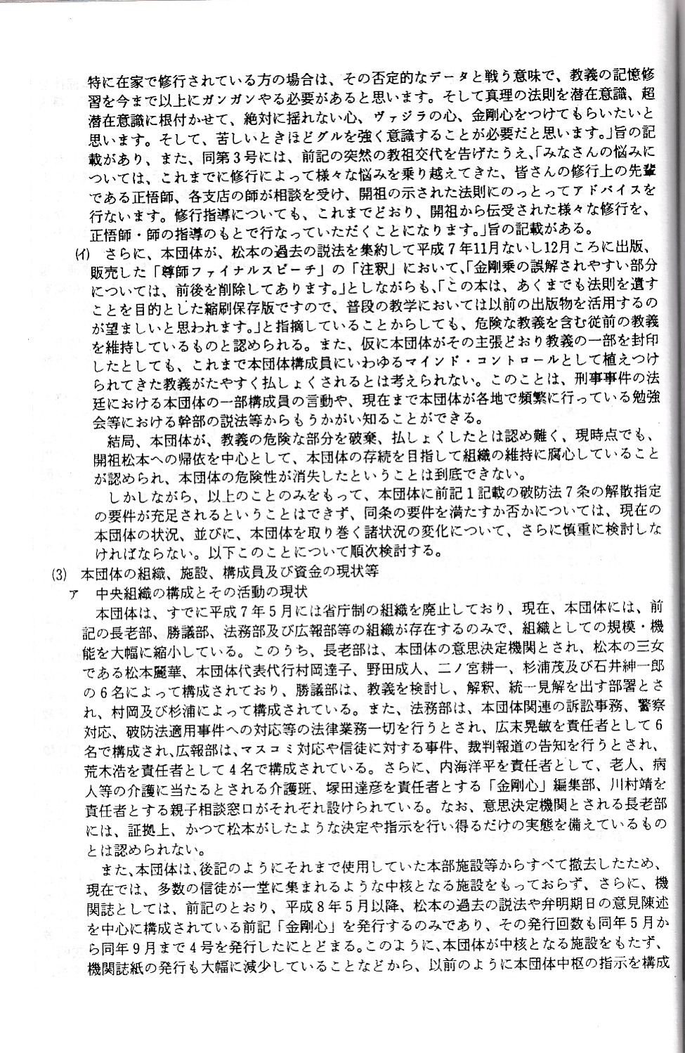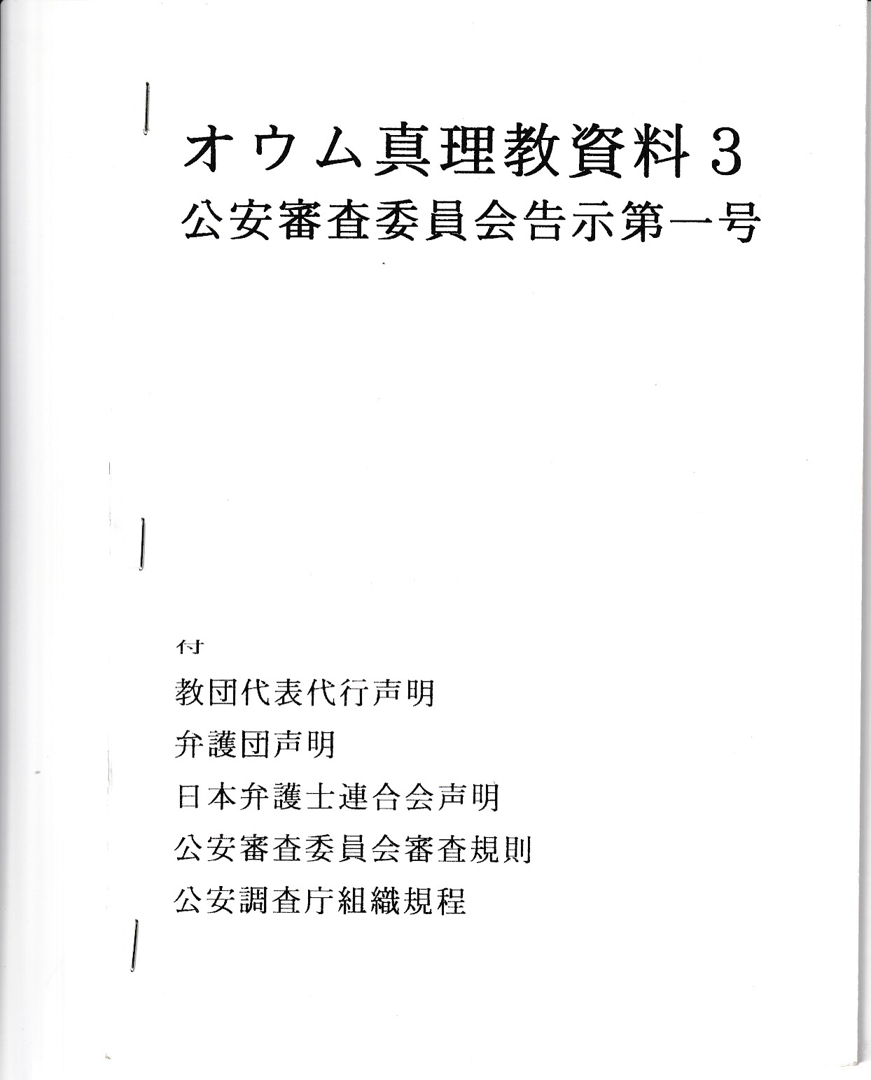 オウム真理教資料3(公安審査委員会告示第一号)