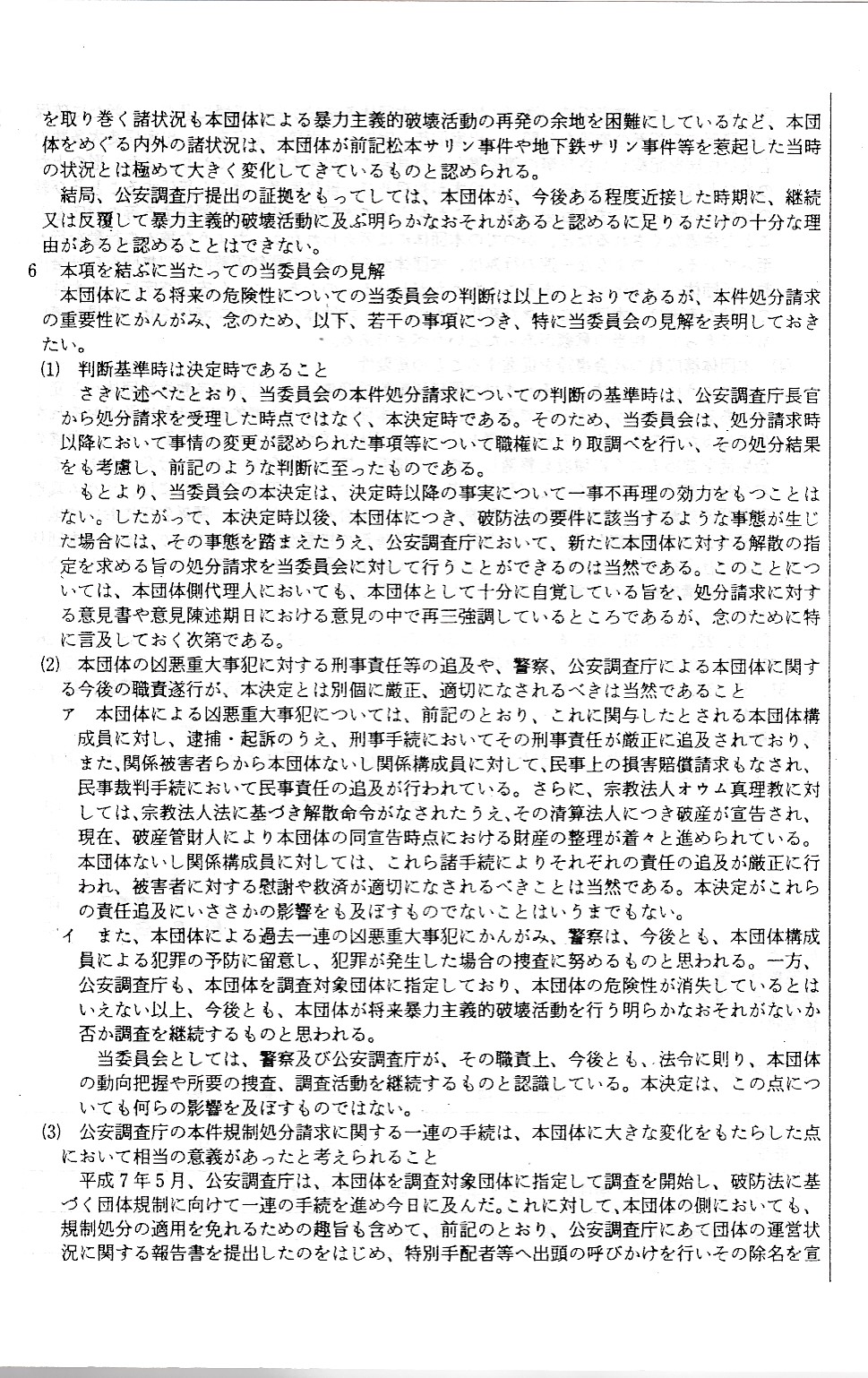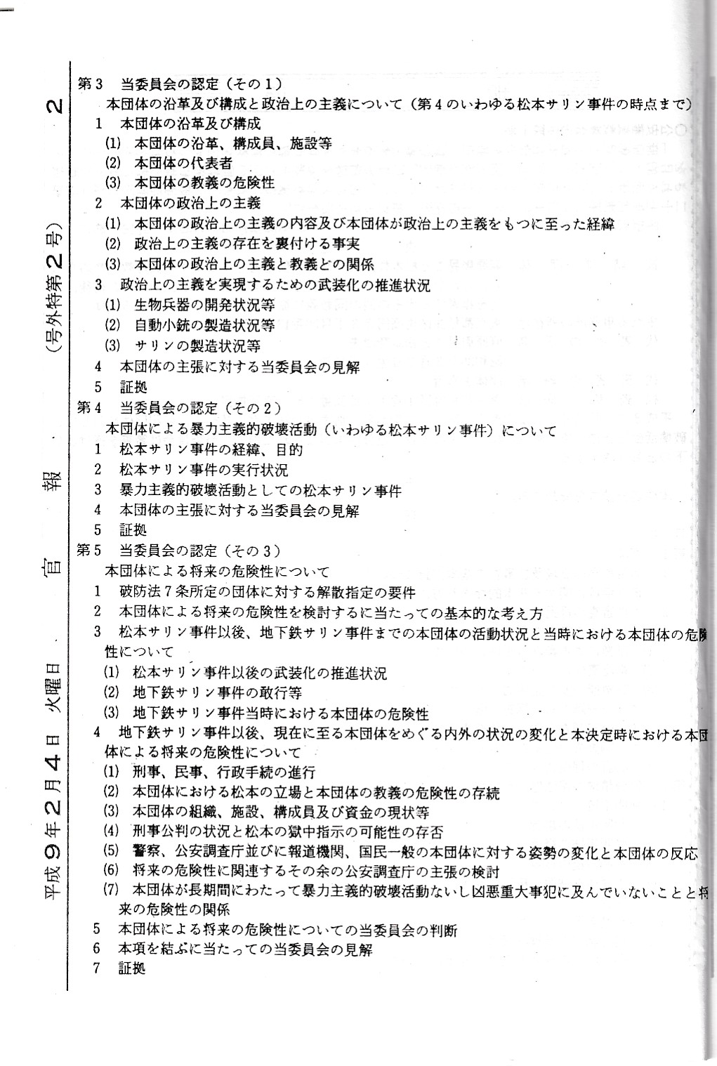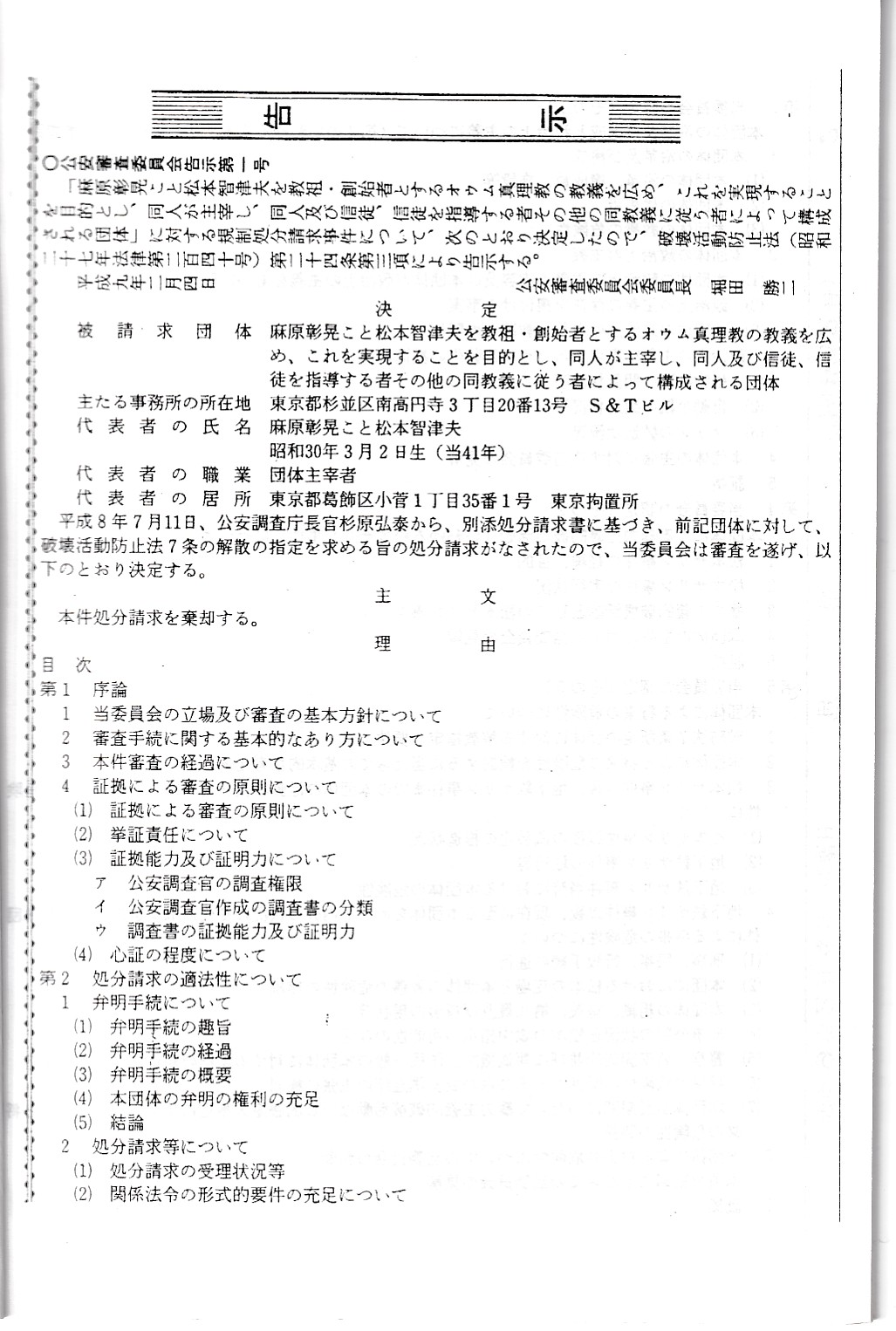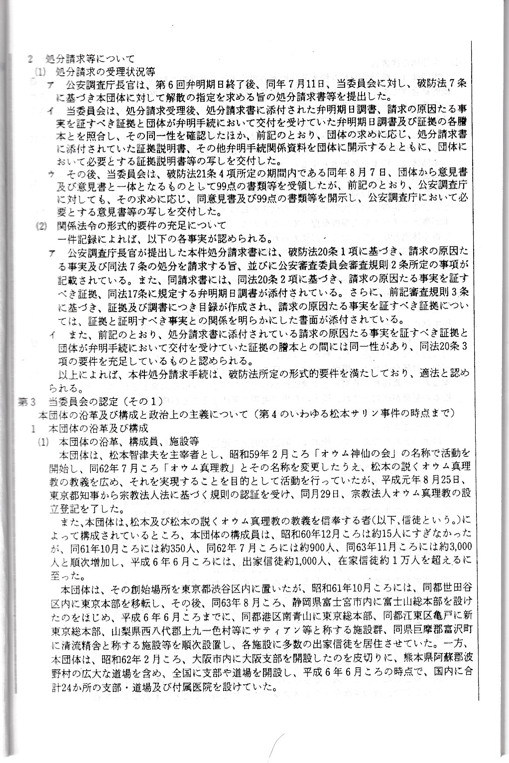 オウム真理教資料3(公安審査委員会告示第一号)