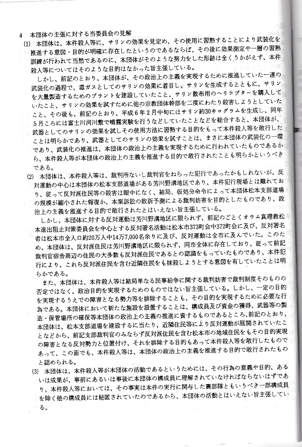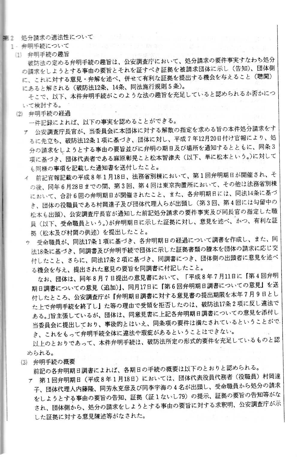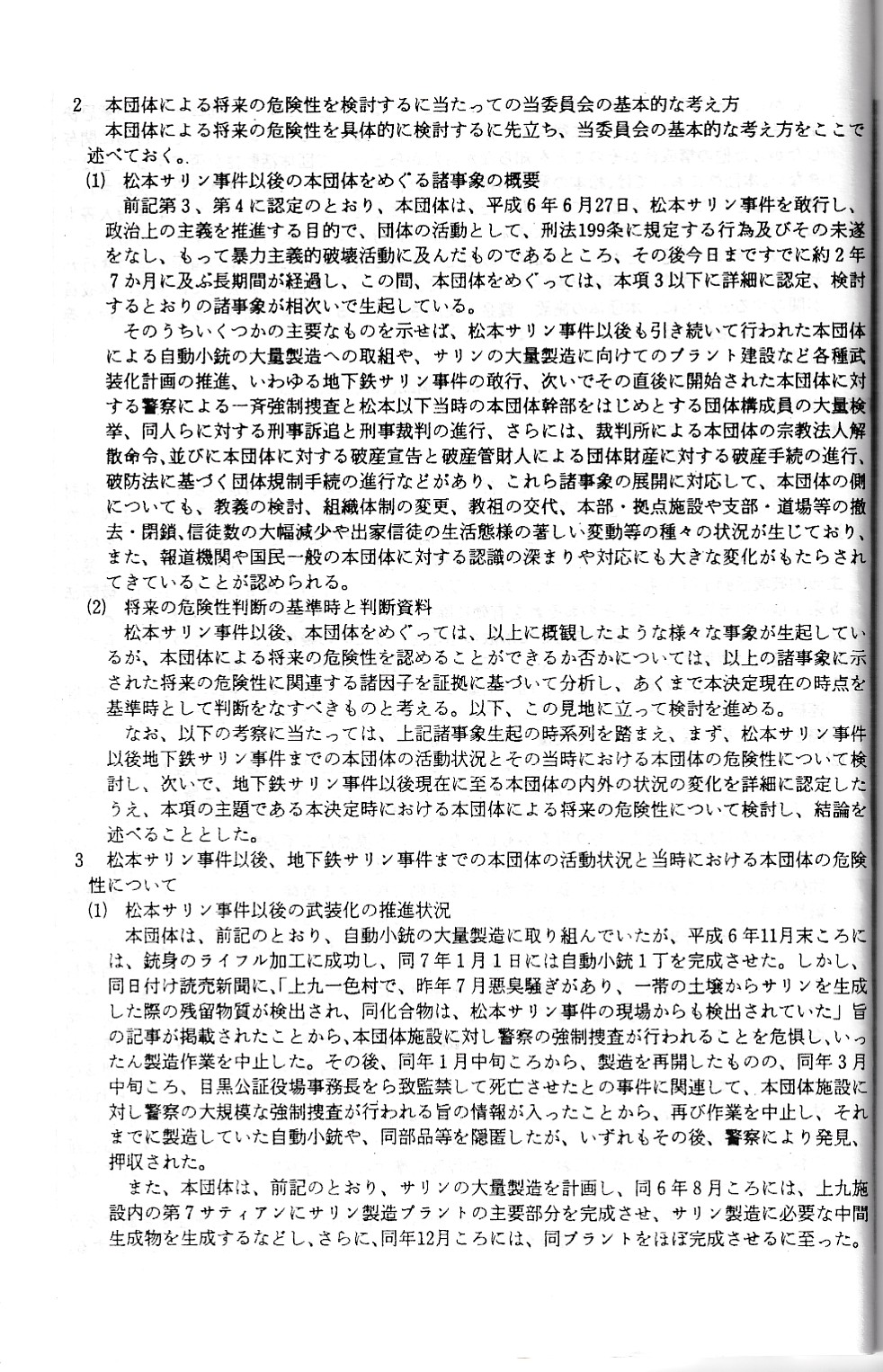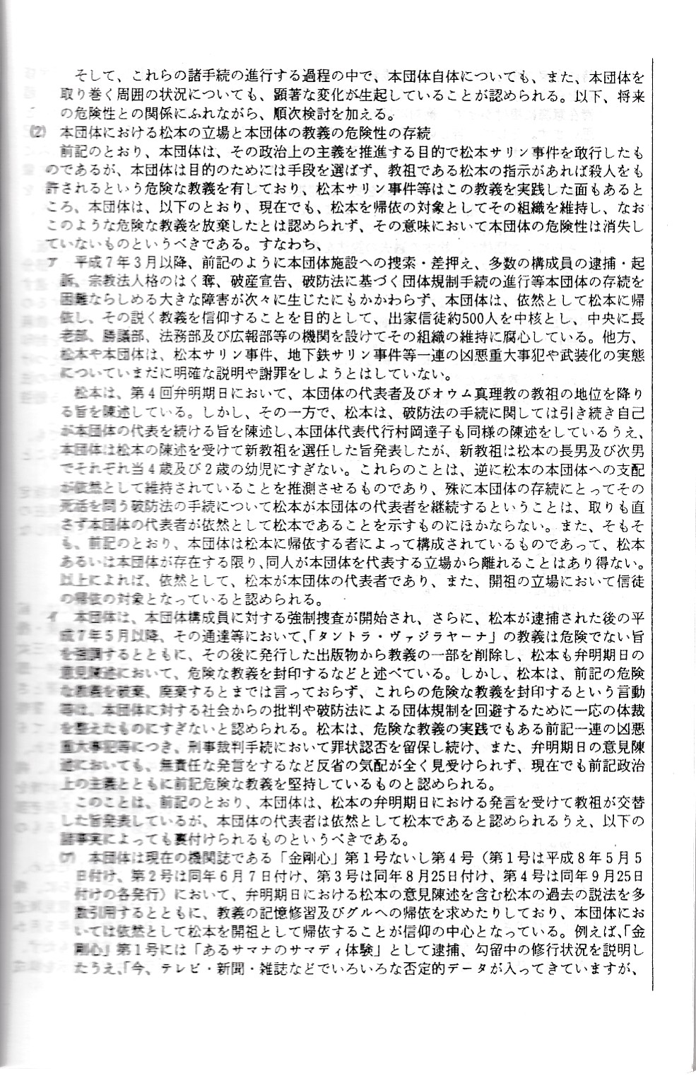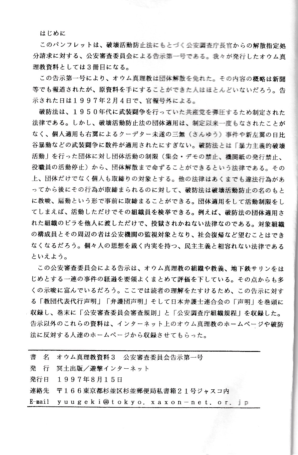 オウム真理教資料3(公安審査委員会告示第一号)