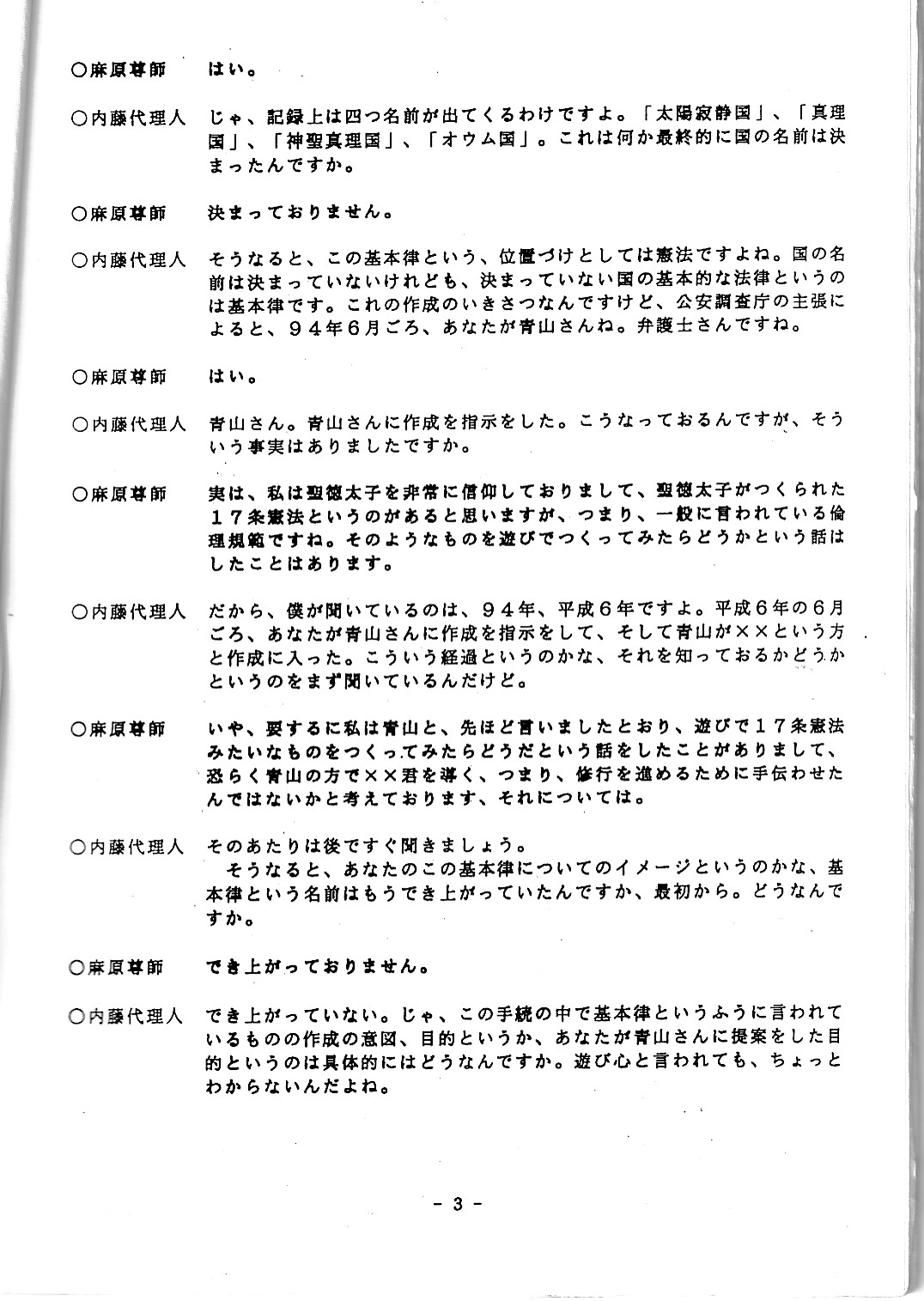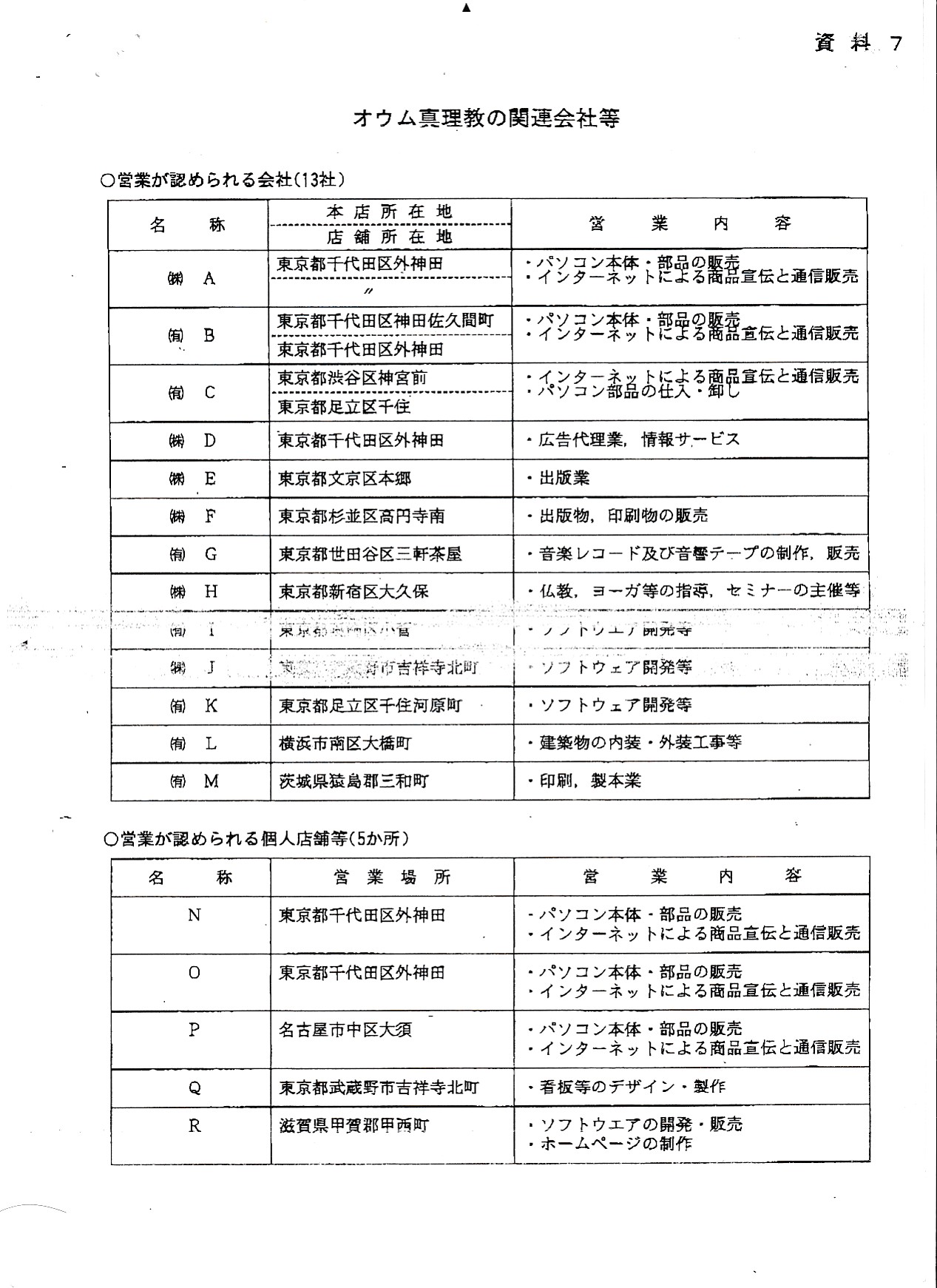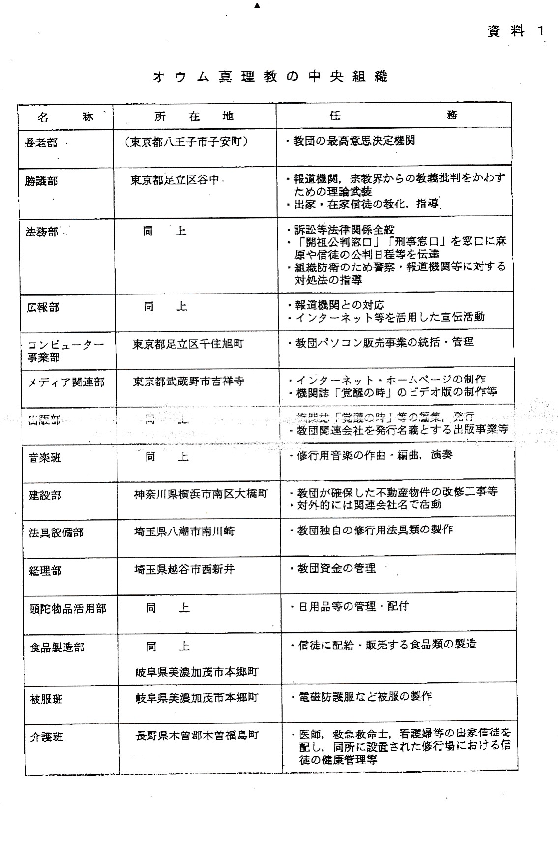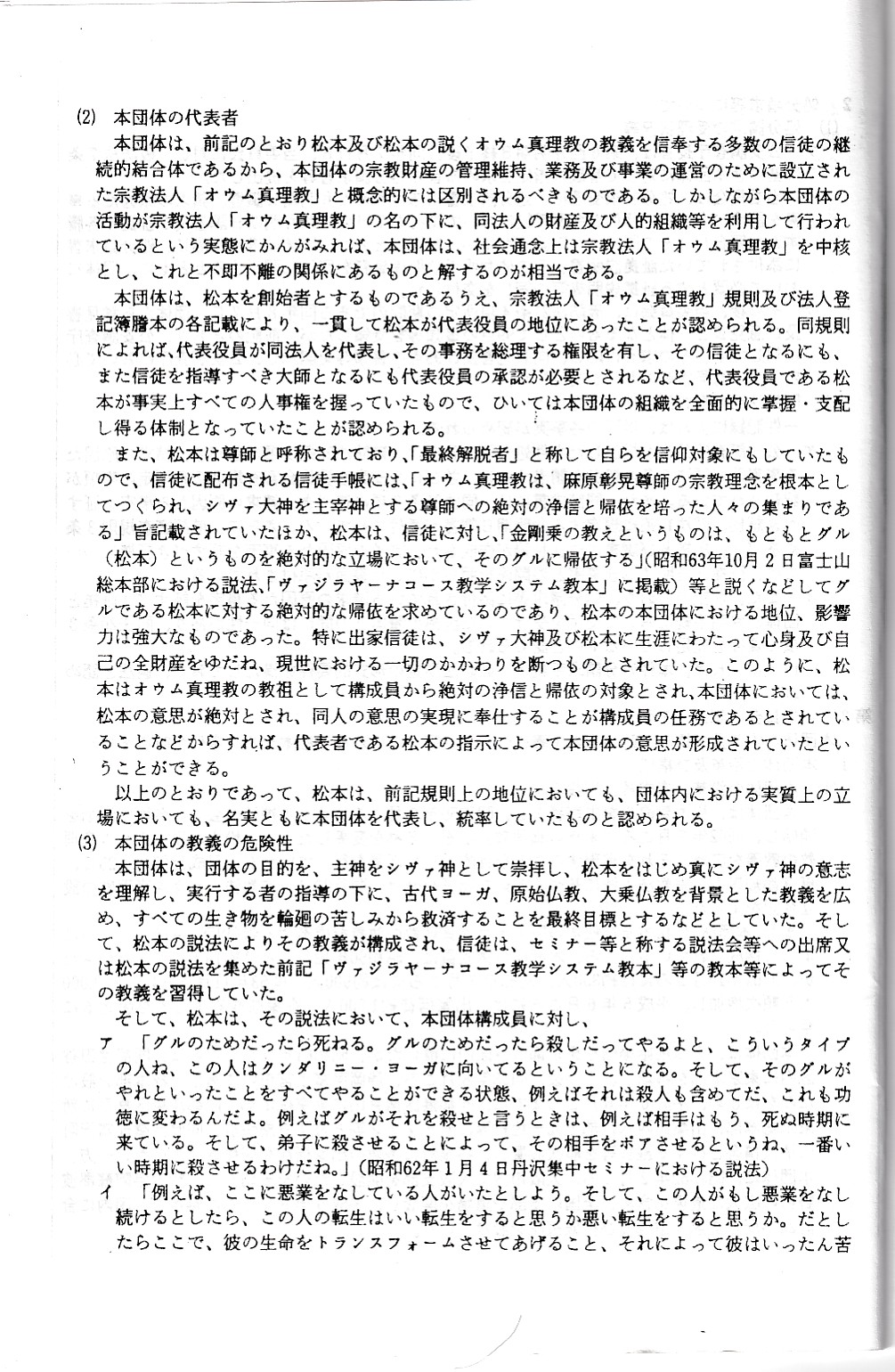 オウム真理教資料3(公安審査委員会告示第一号)