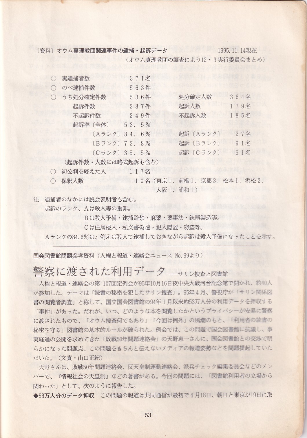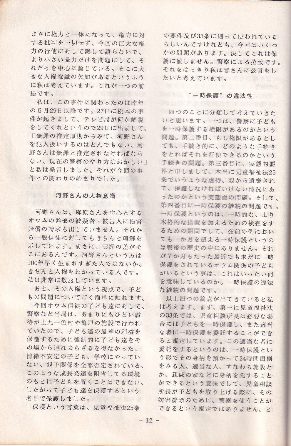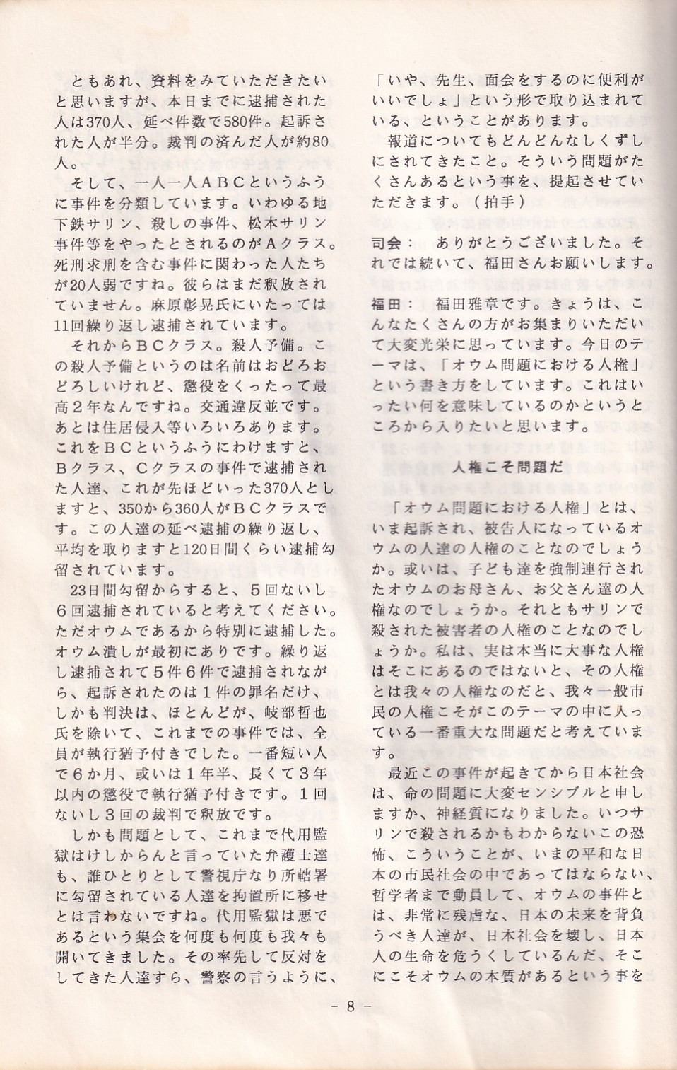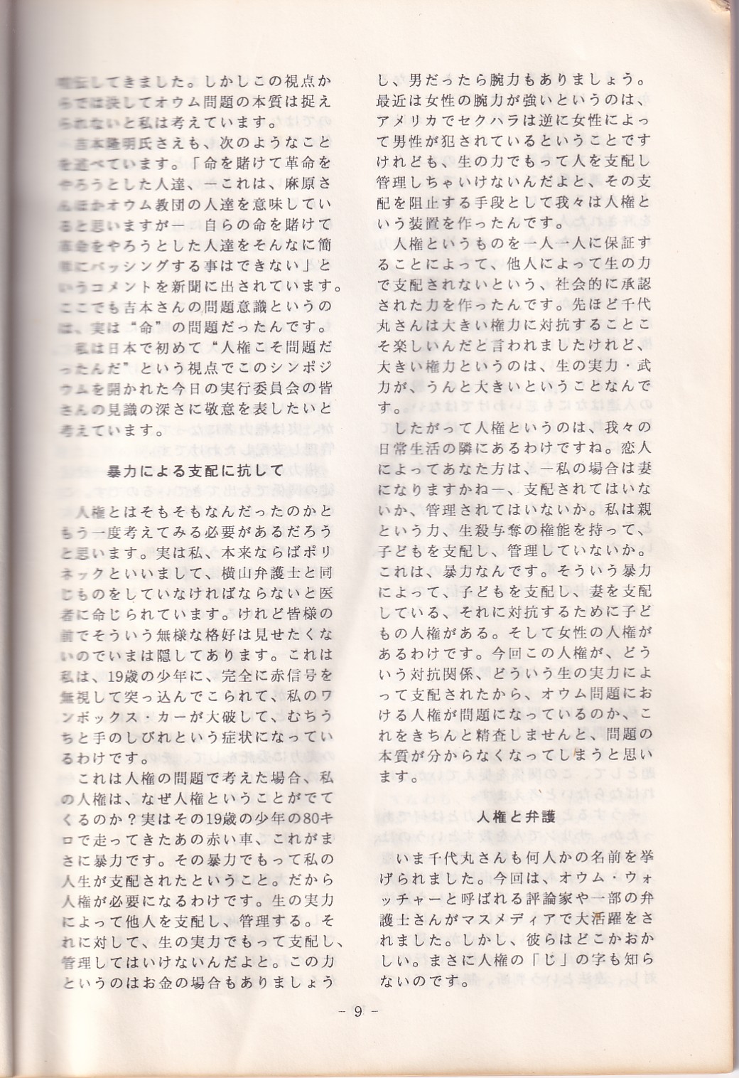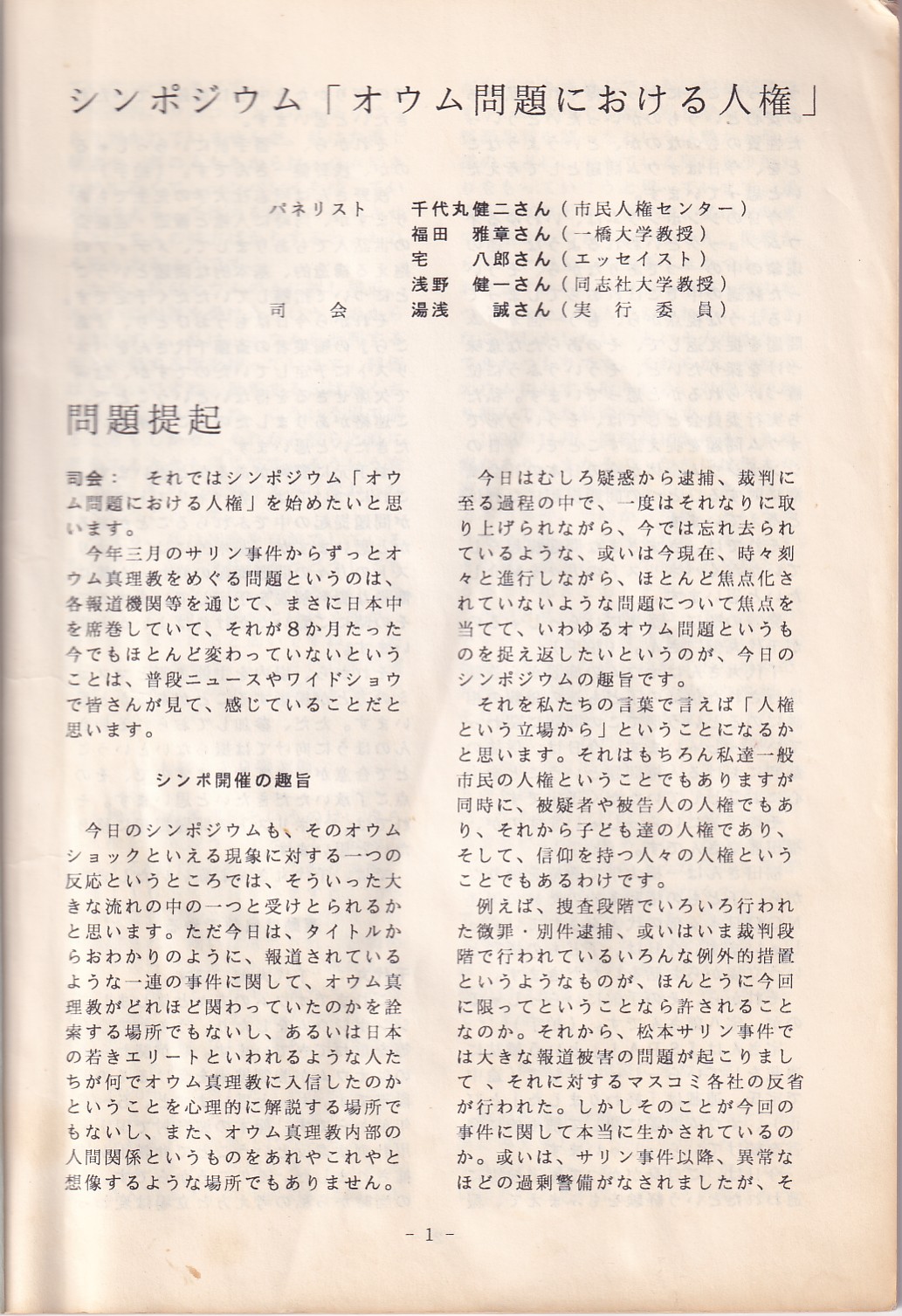 95・12・3シンポジウムの記録 オウム問題における人権