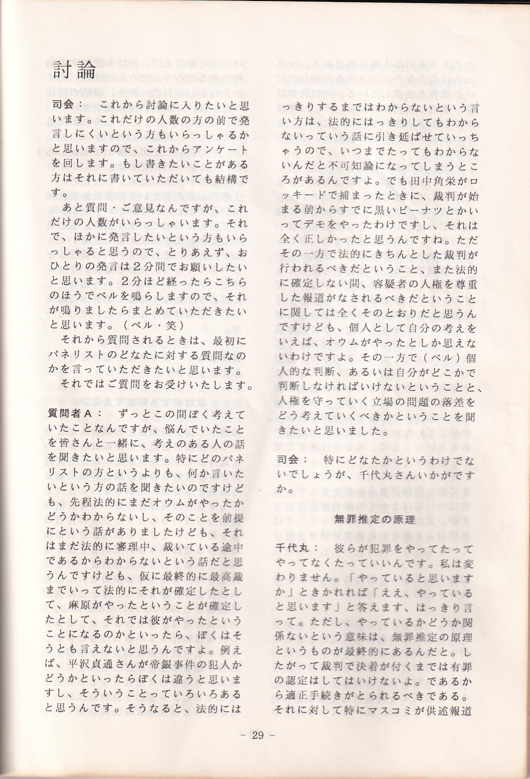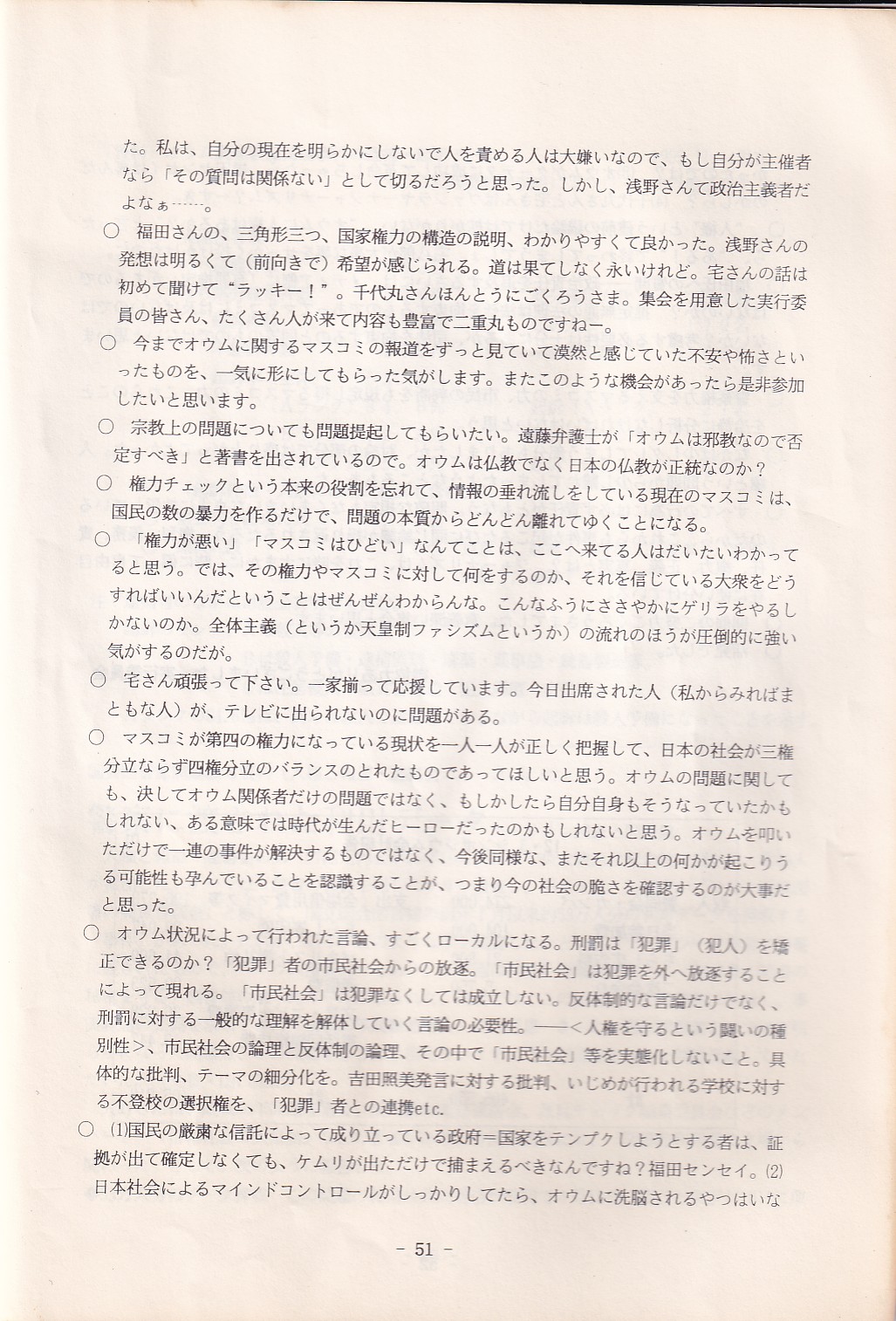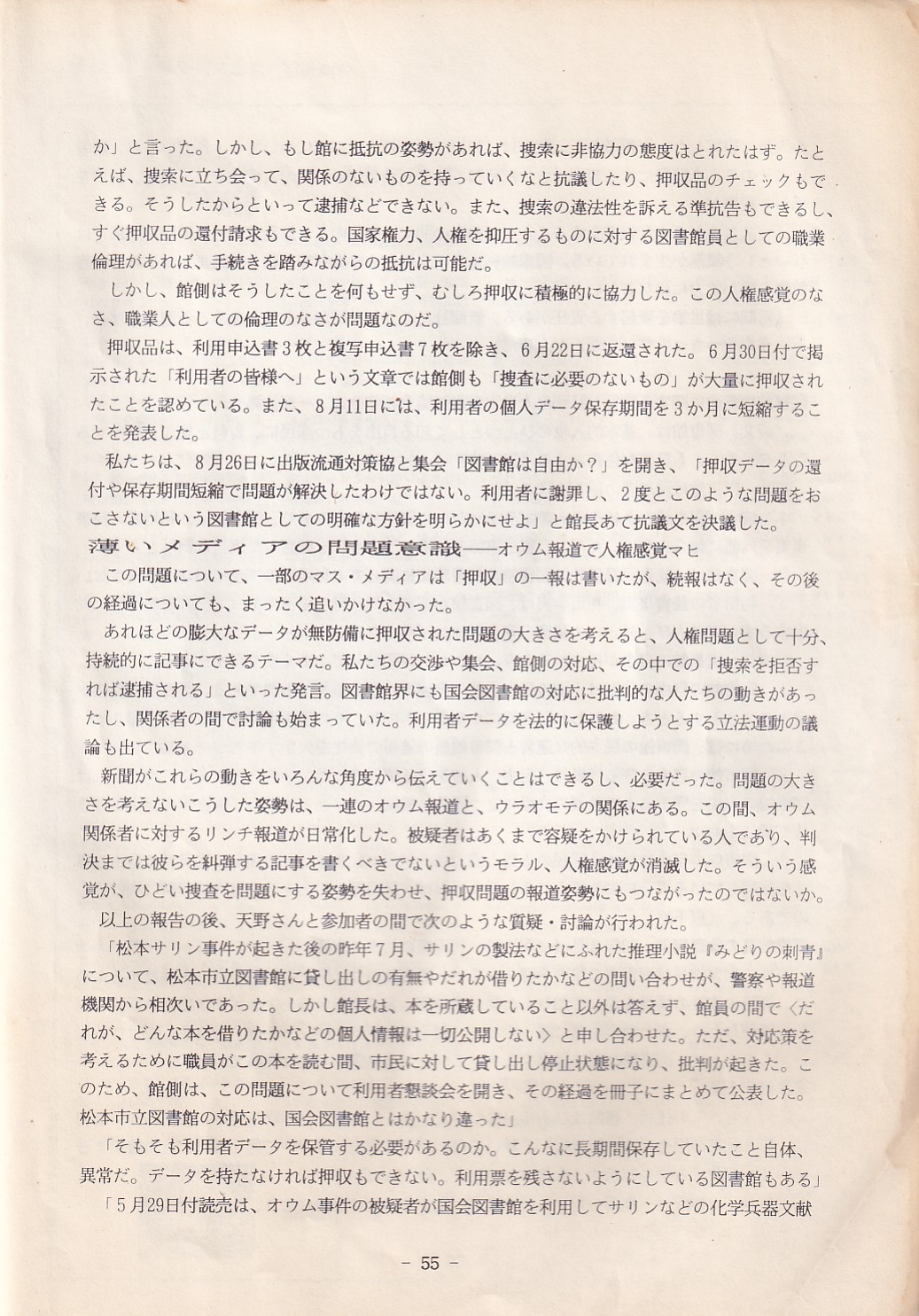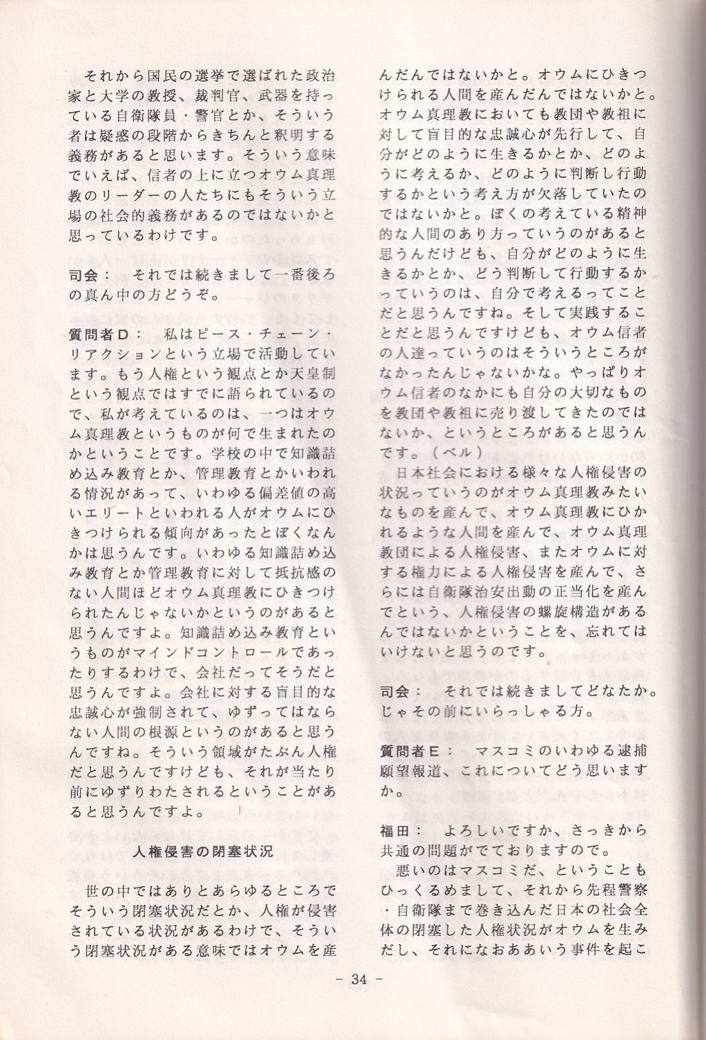 95・12・3シンポジウムの記録 オウム問題における人権