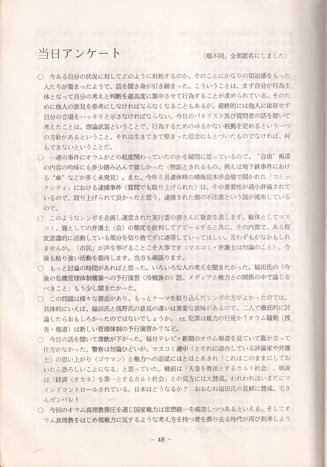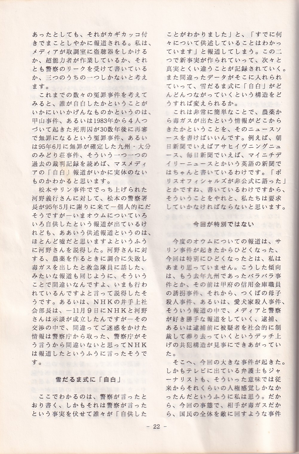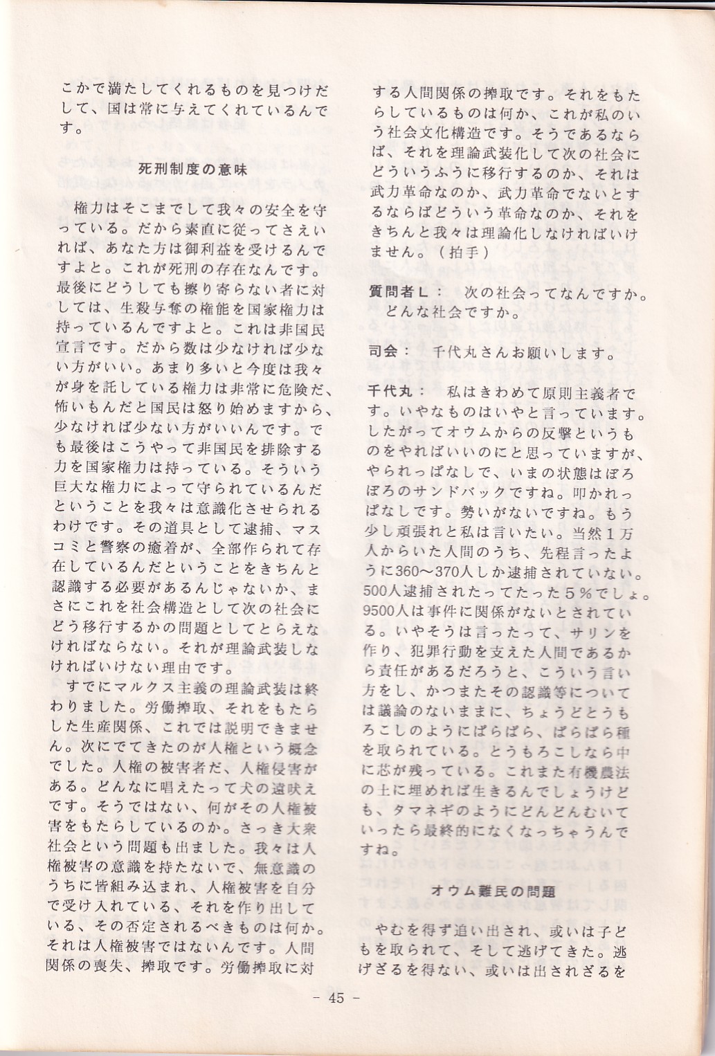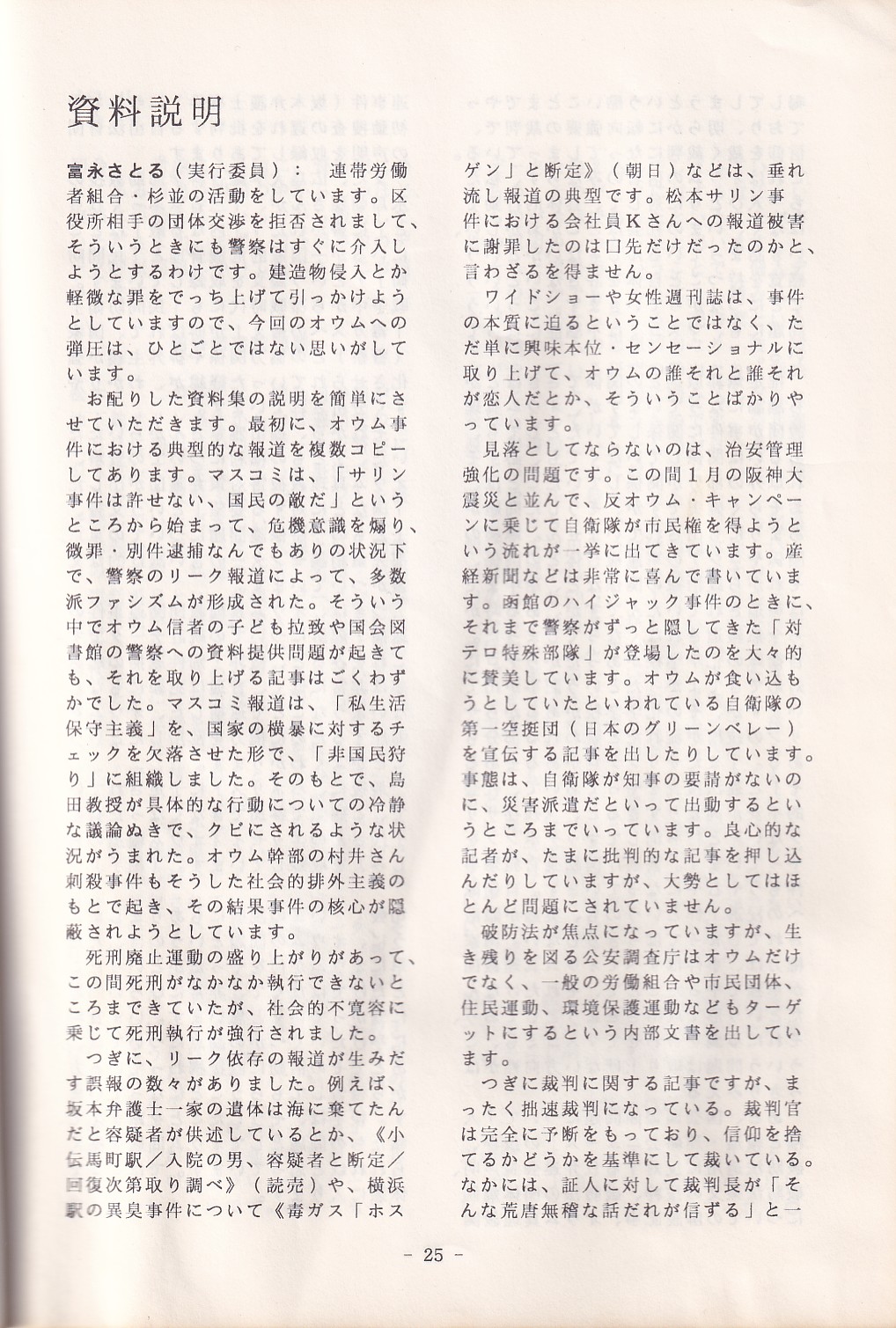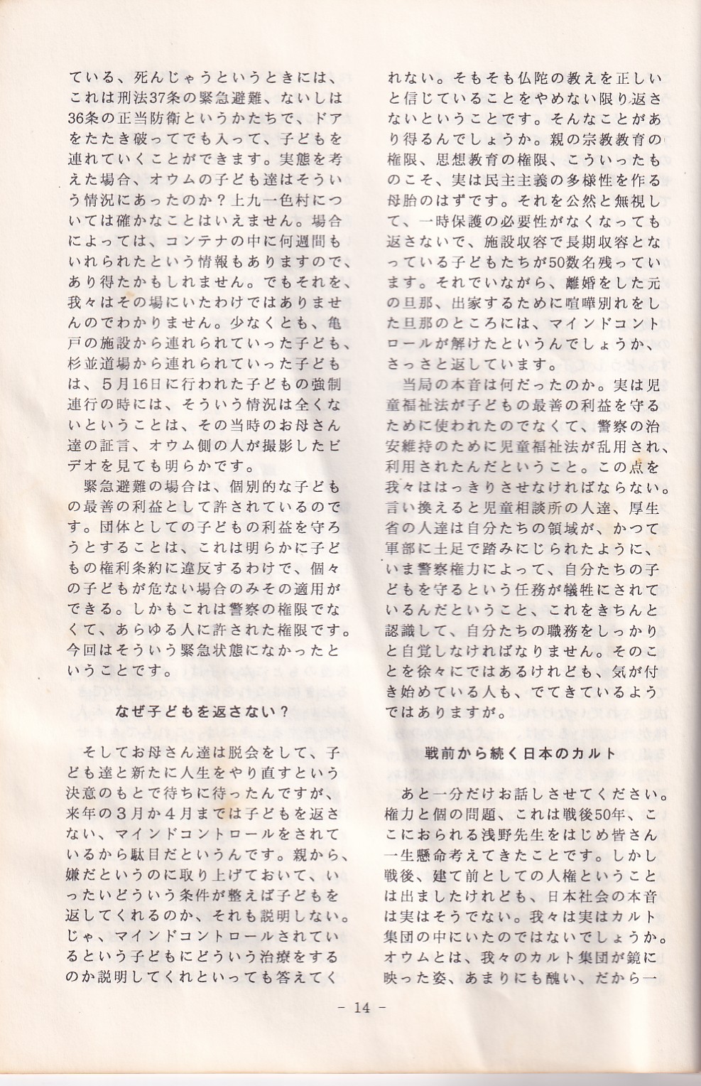 95・12・3シンポジウムの記録 オウム問題における人権