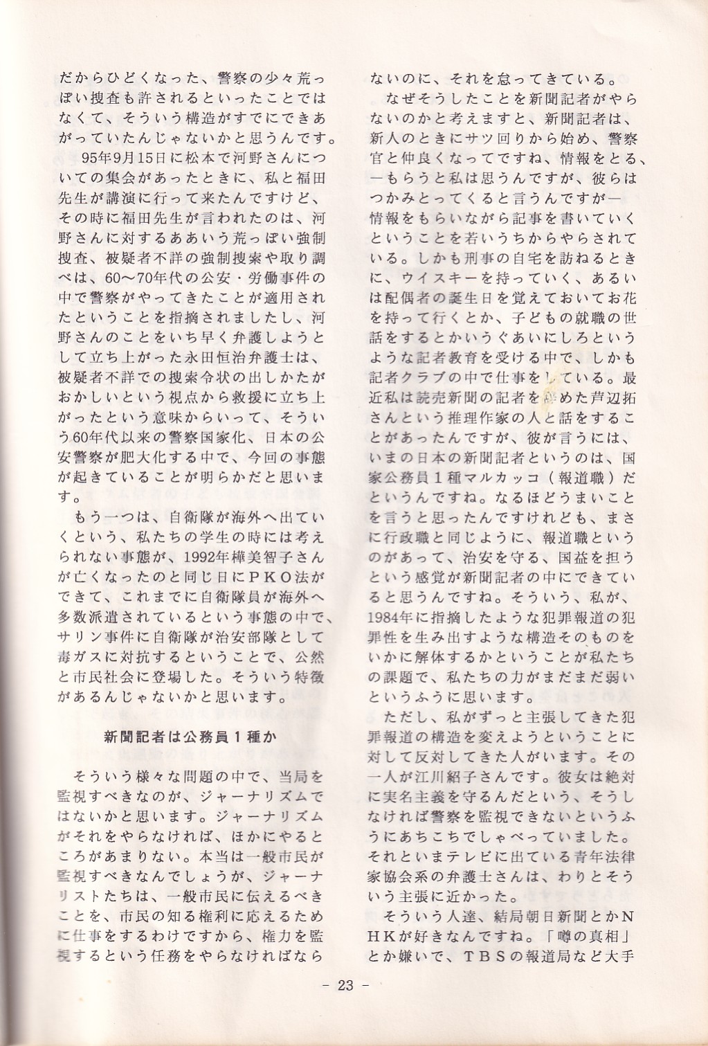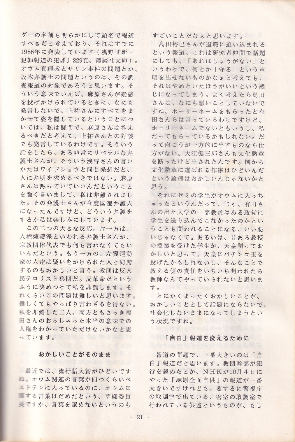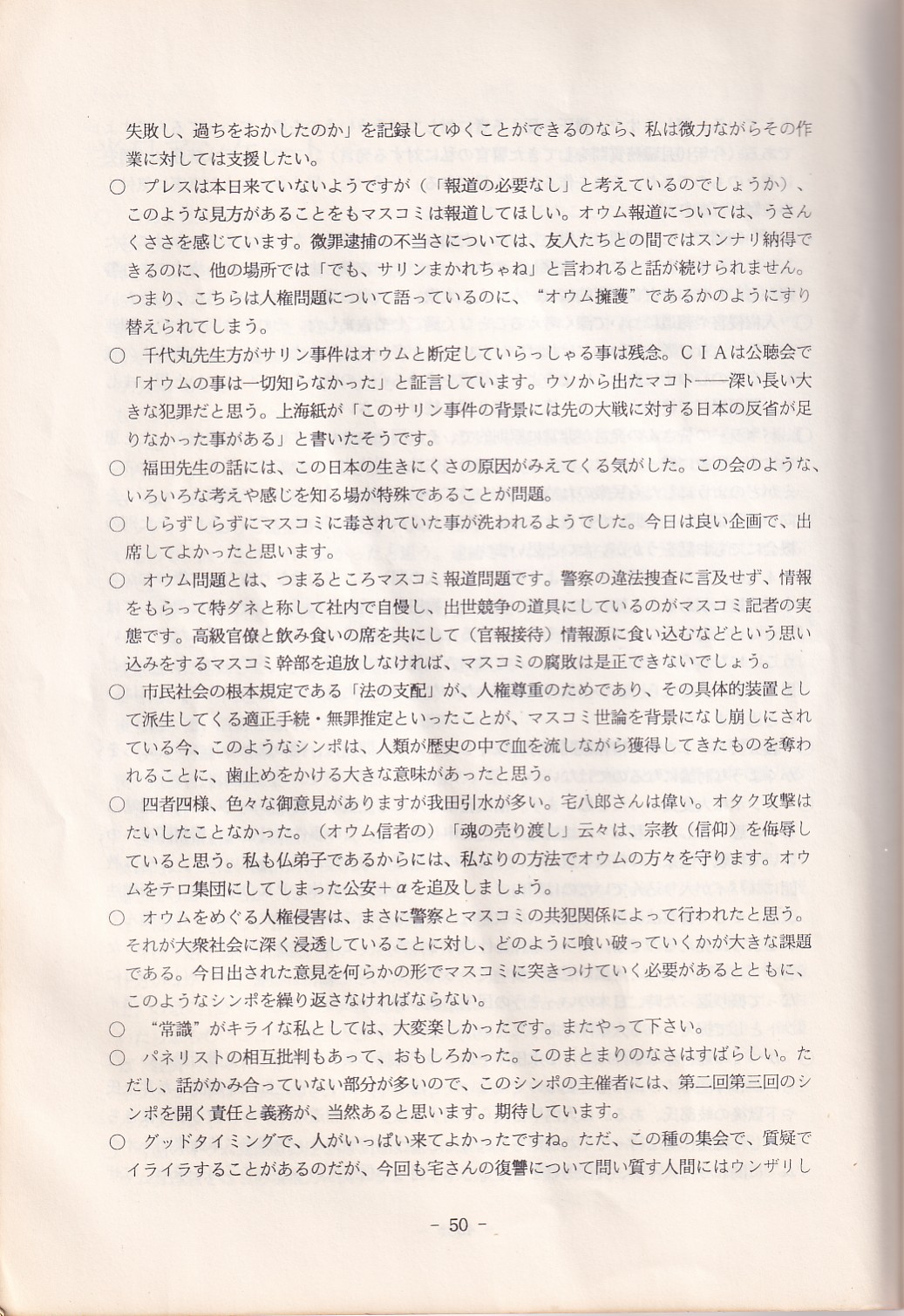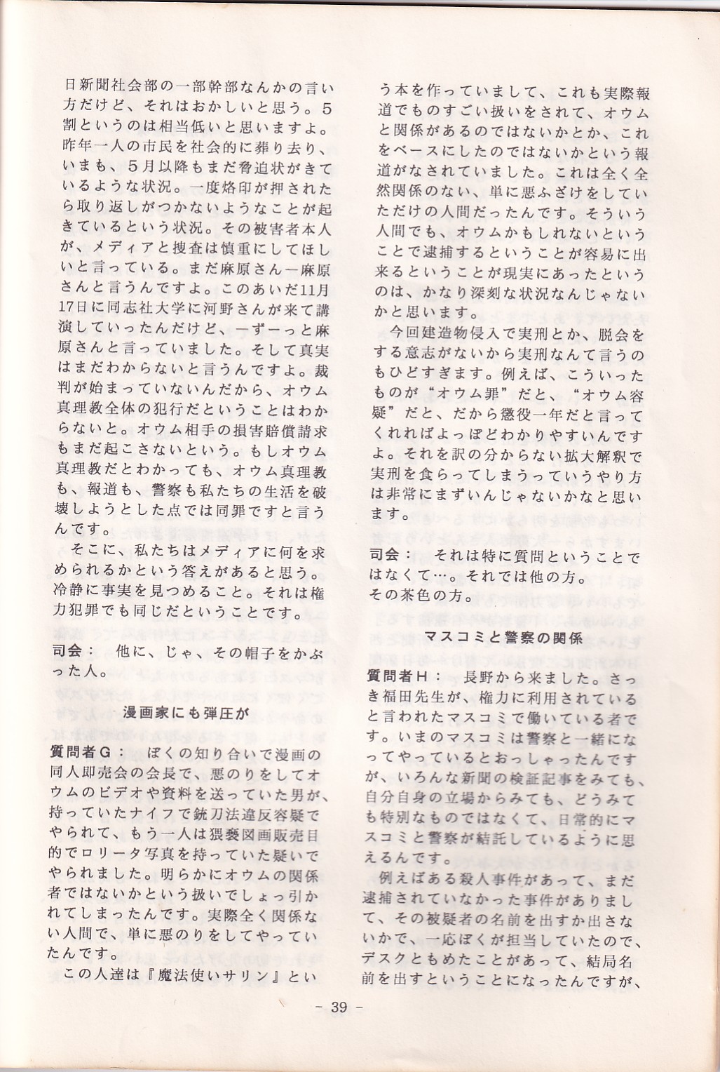 95・12・3シンポジウムの記録 オウム問題における人権