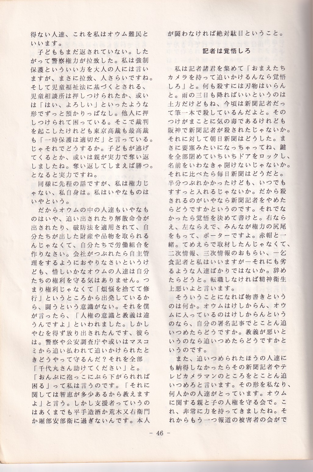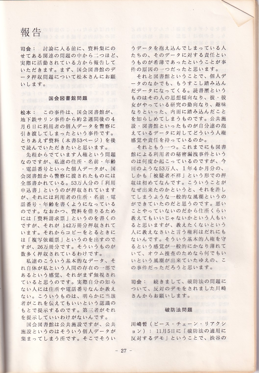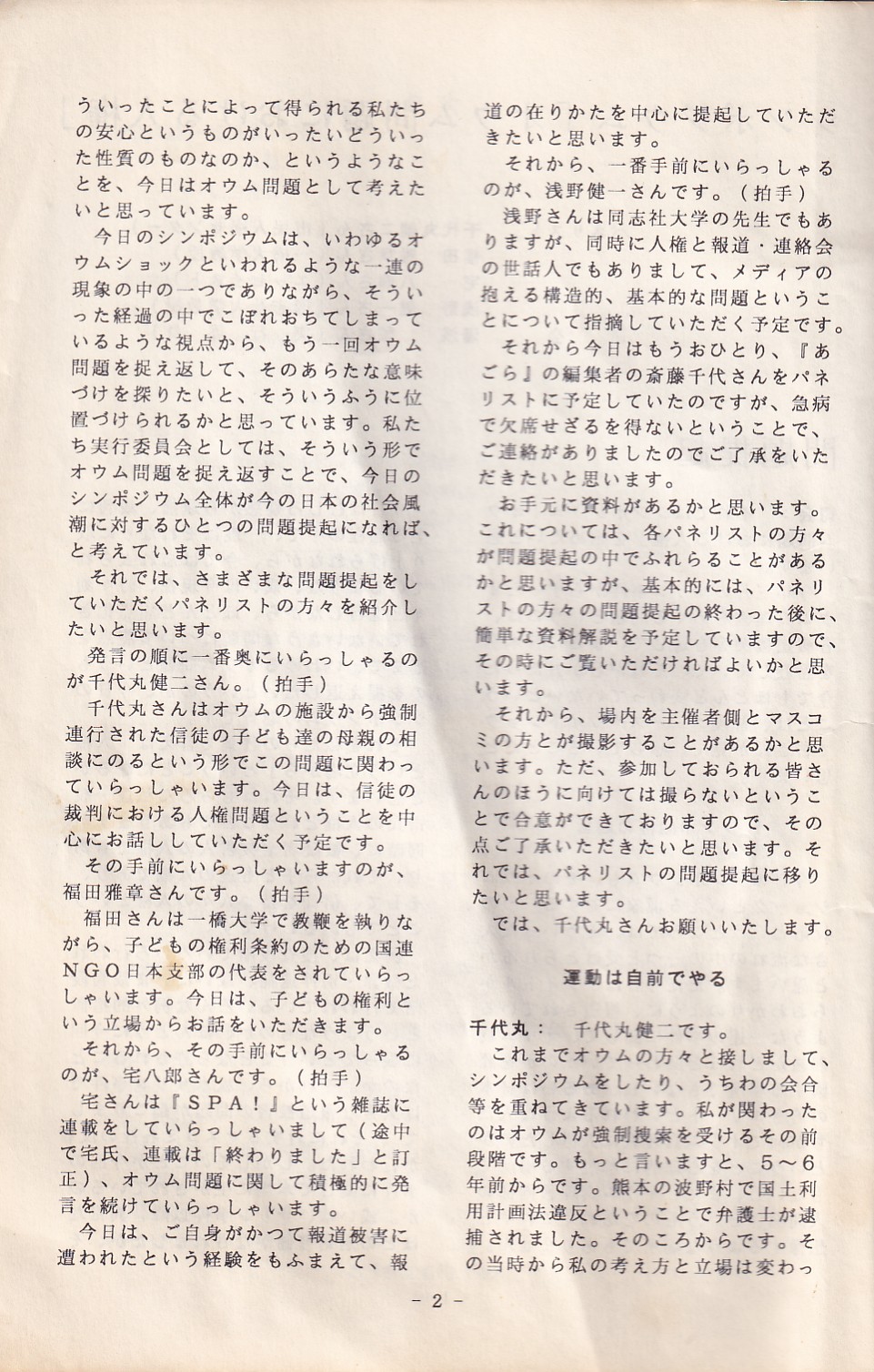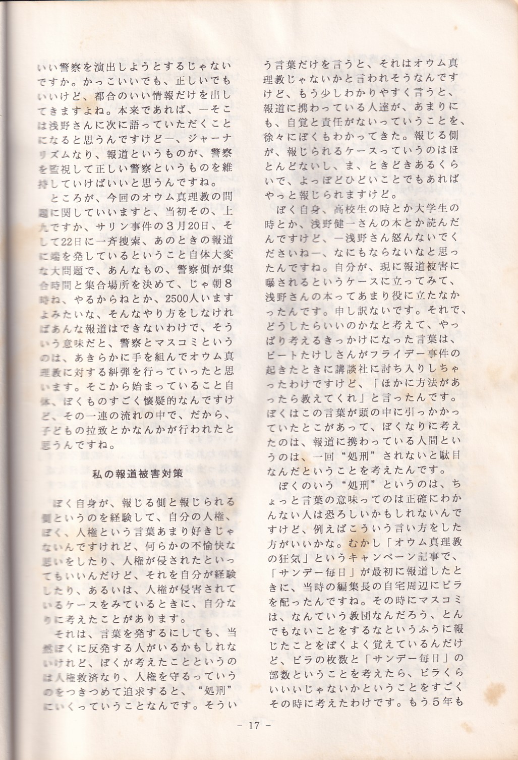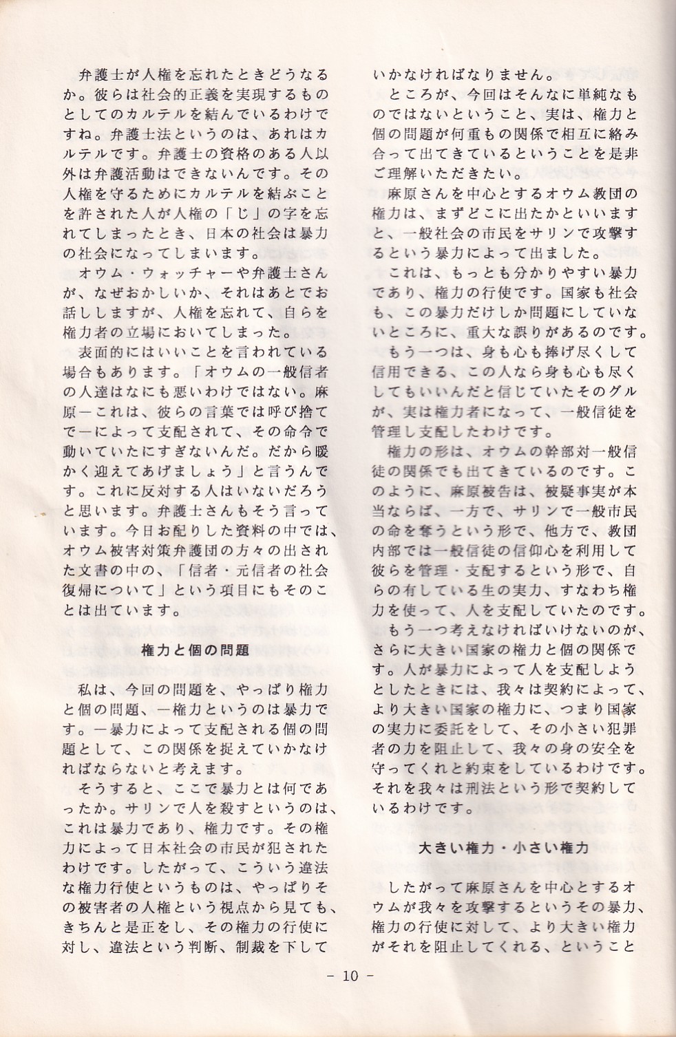 95・12・3シンポジウムの記録 オウム問題における人権