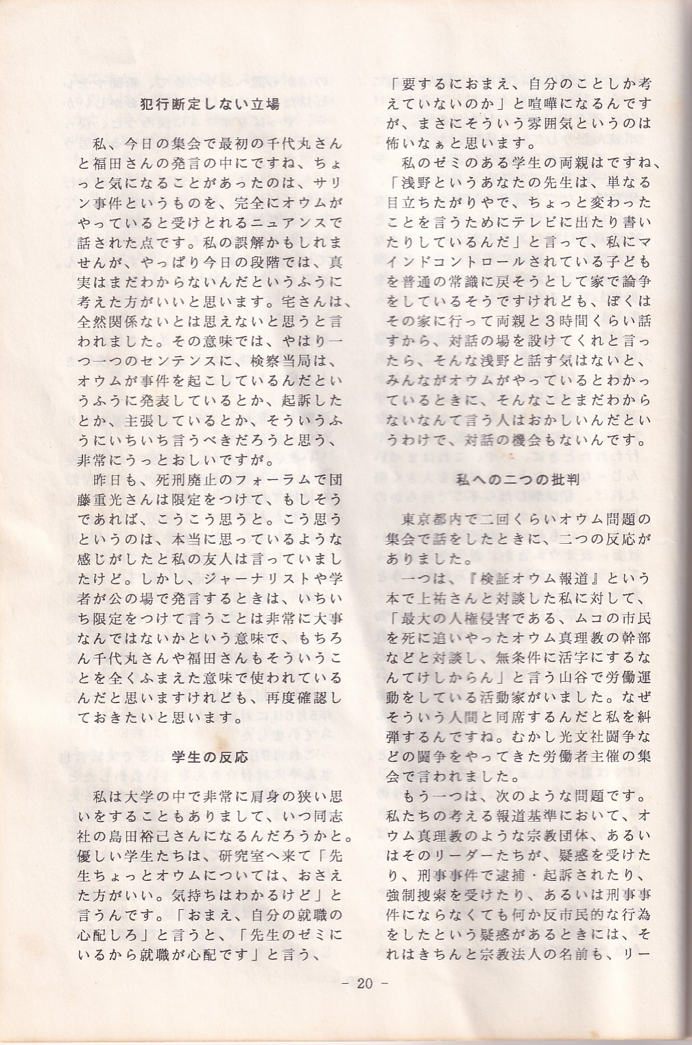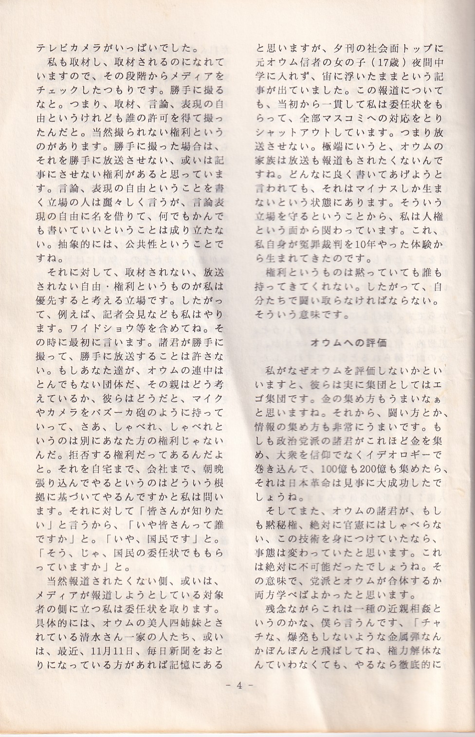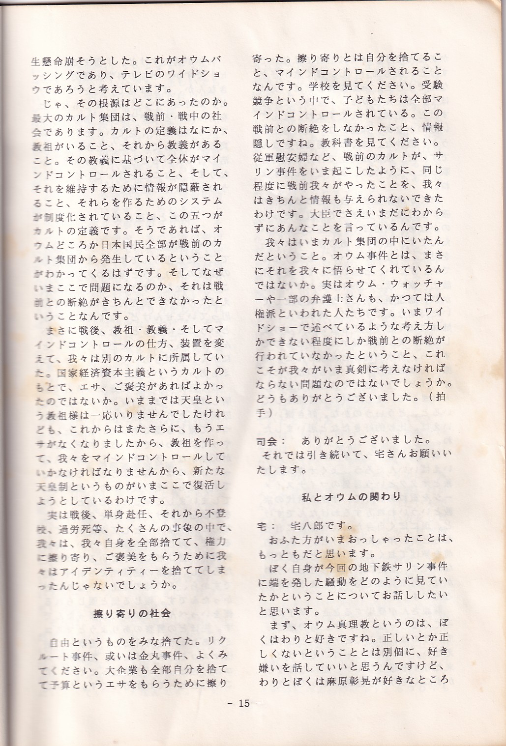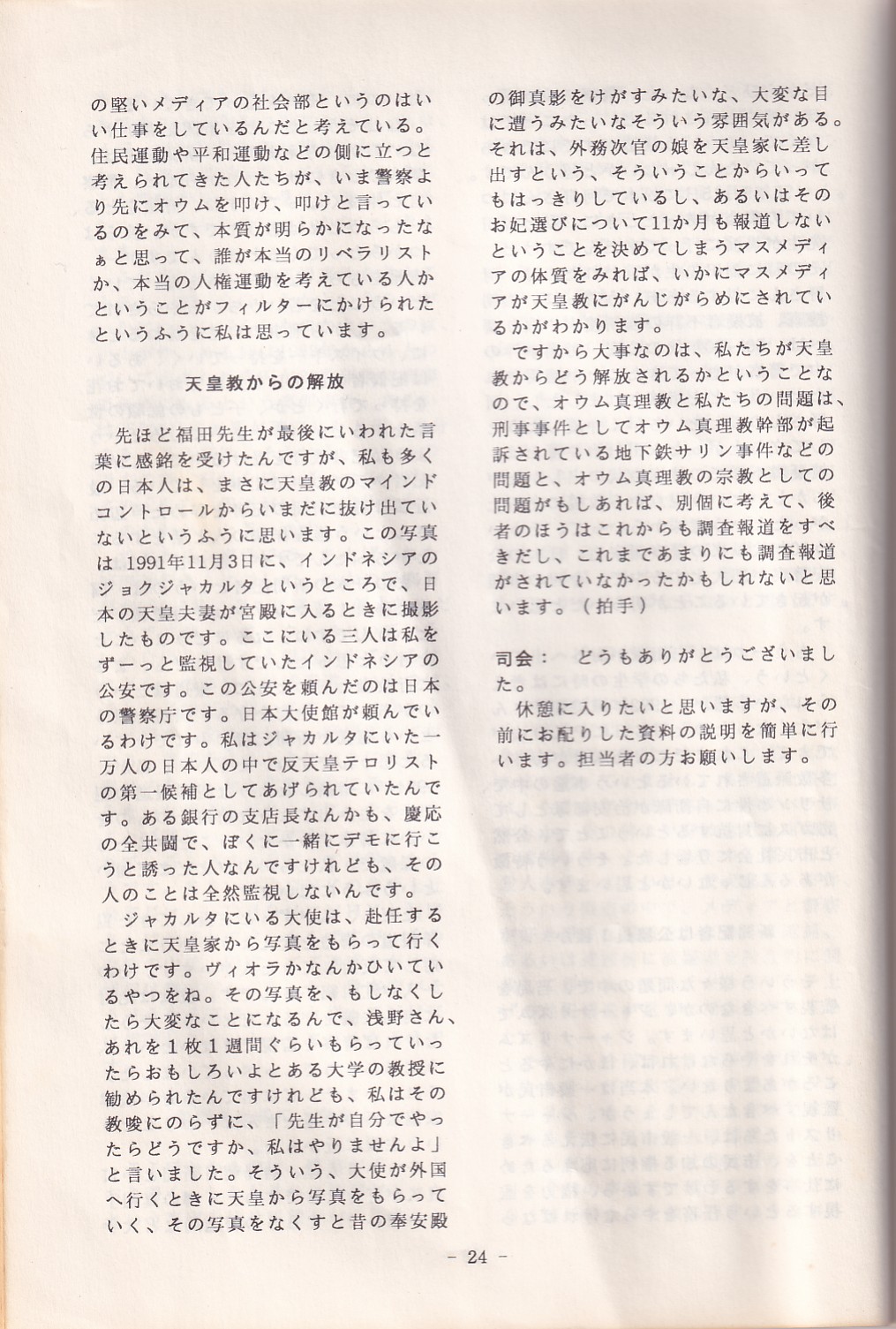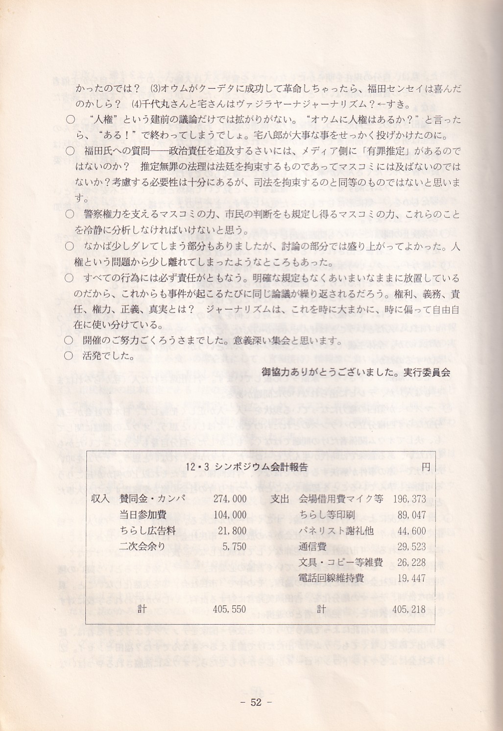 95・12・3シンポジウムの記録 オウム問題における人権