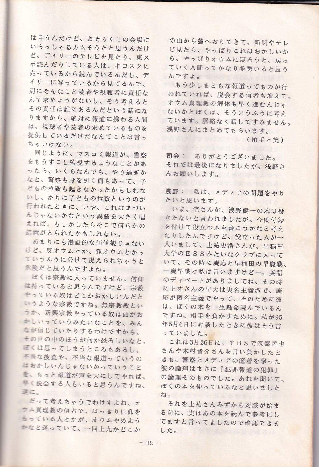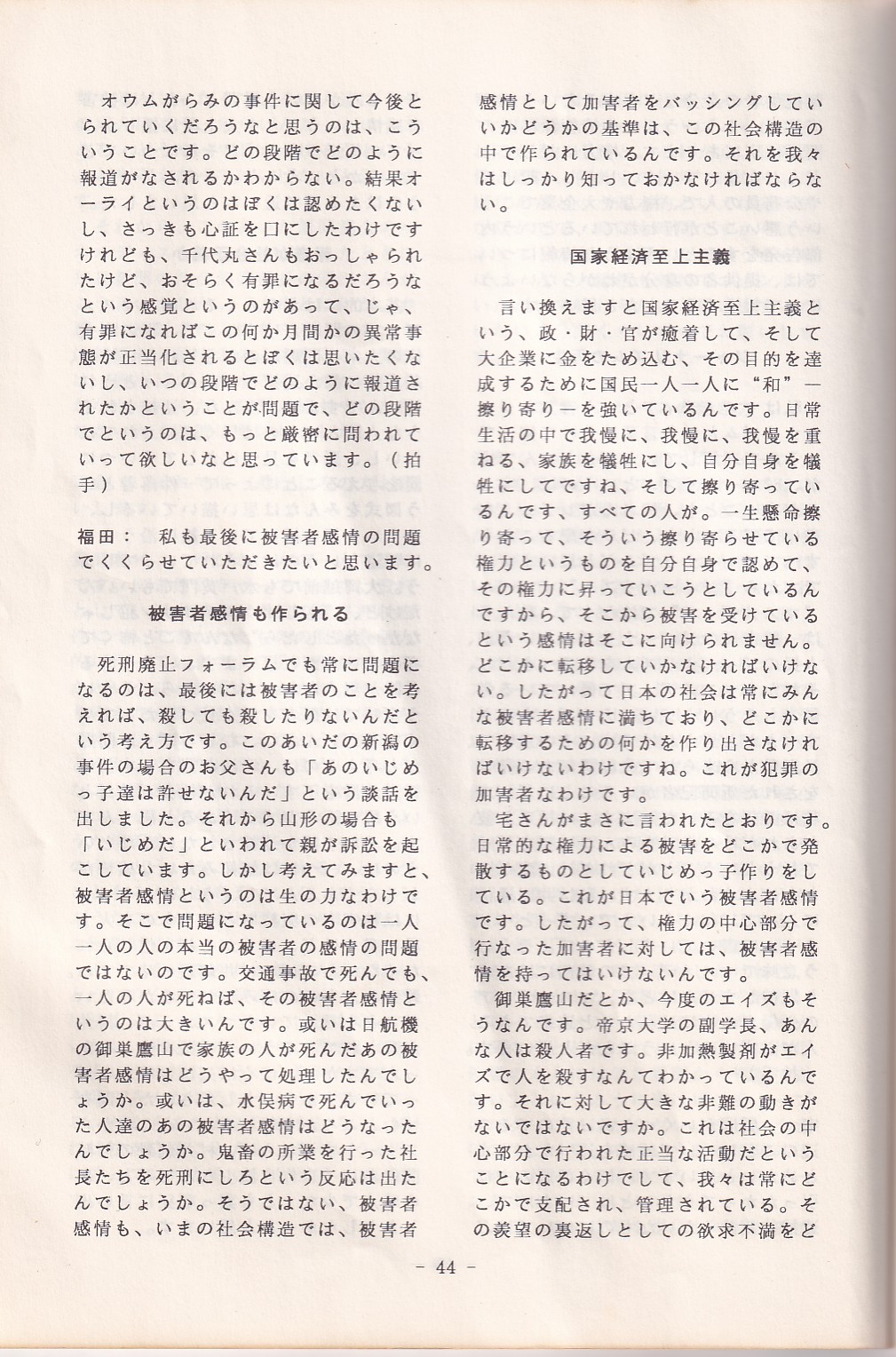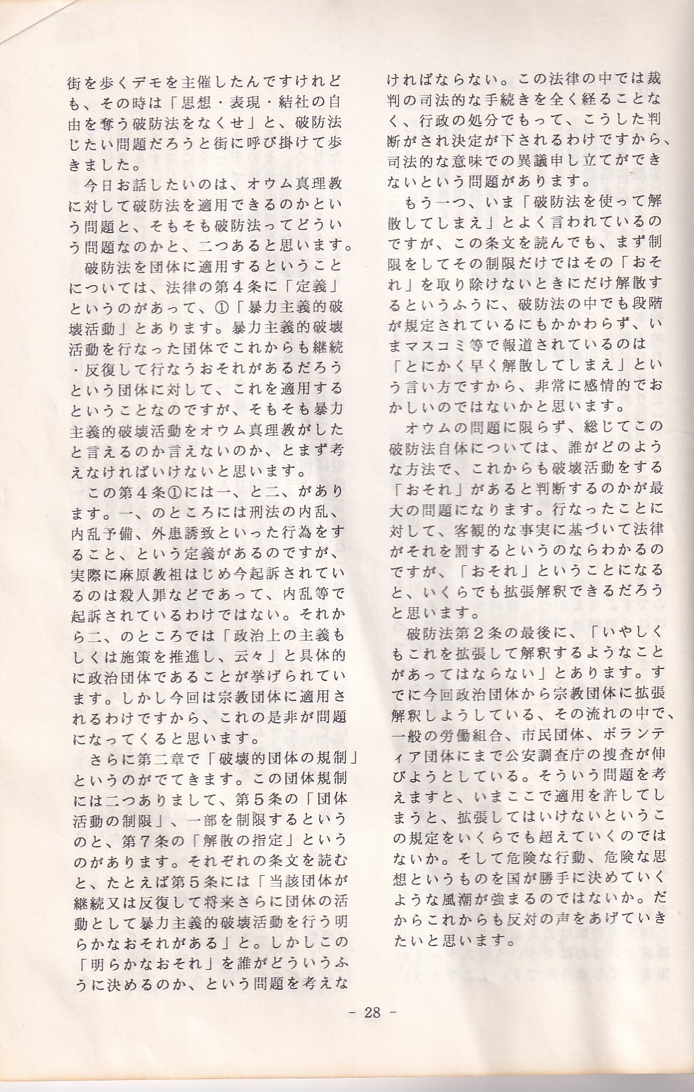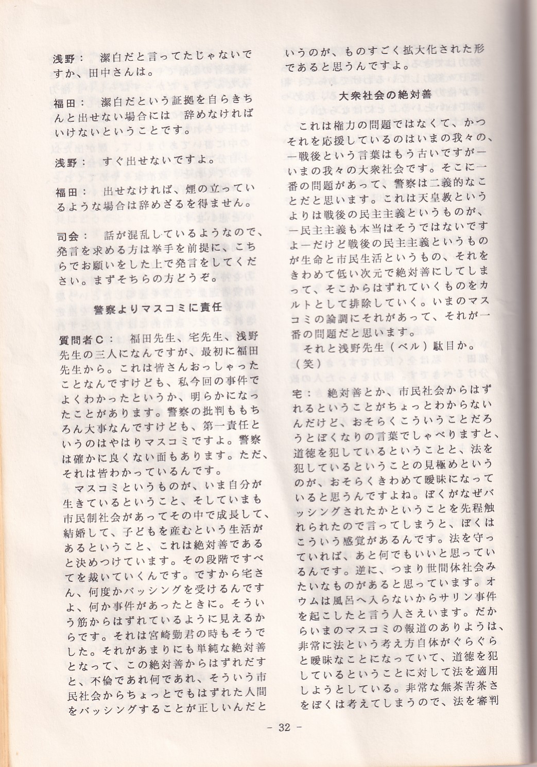 95・12・3シンポジウムの記録 オウム問題における人権