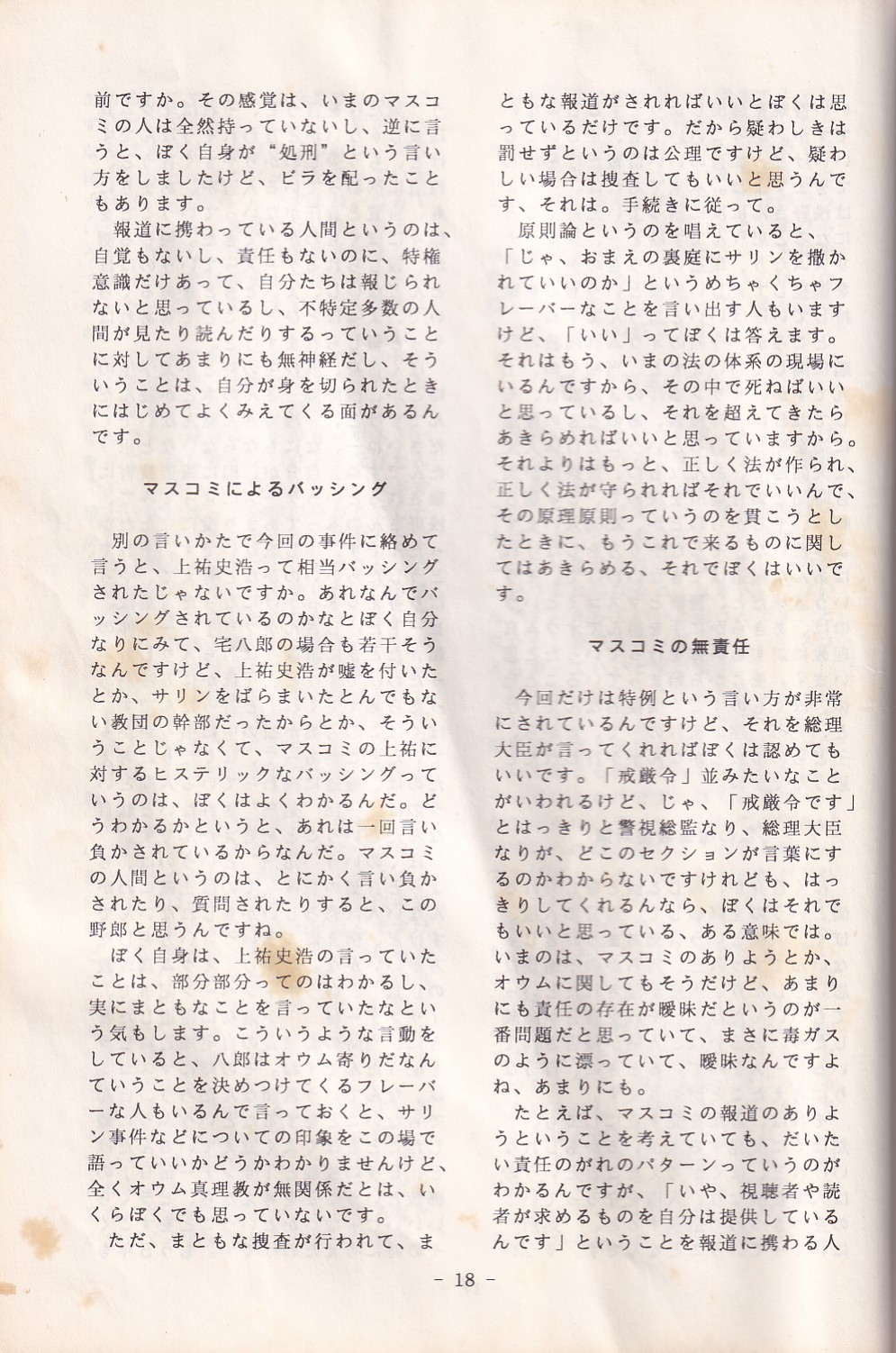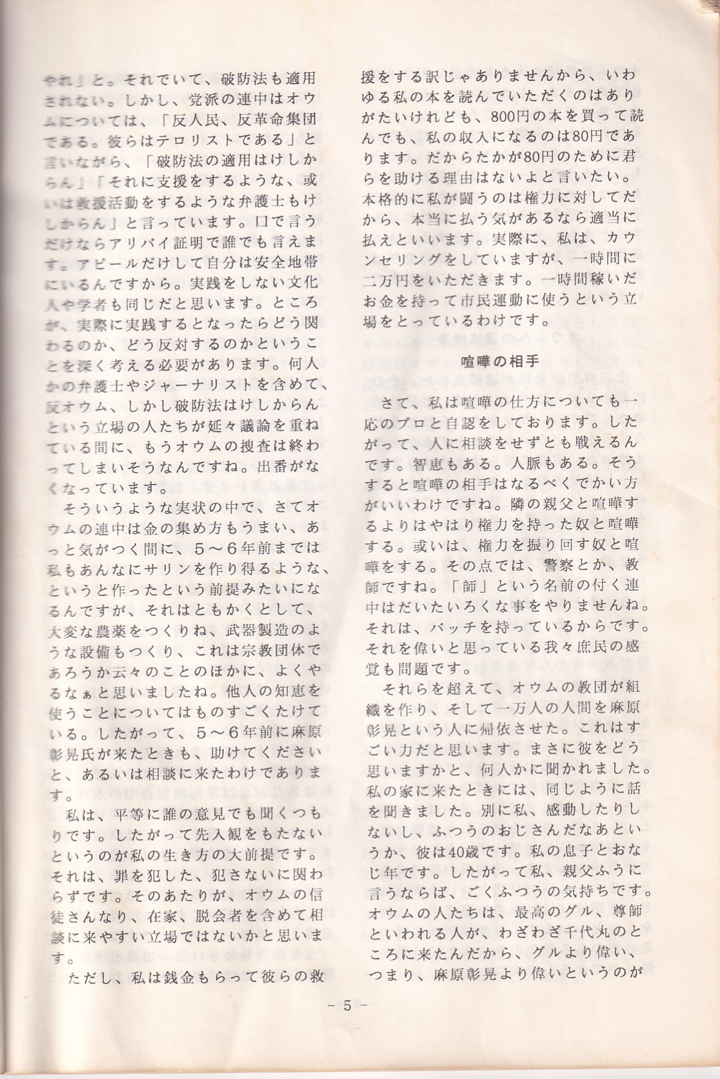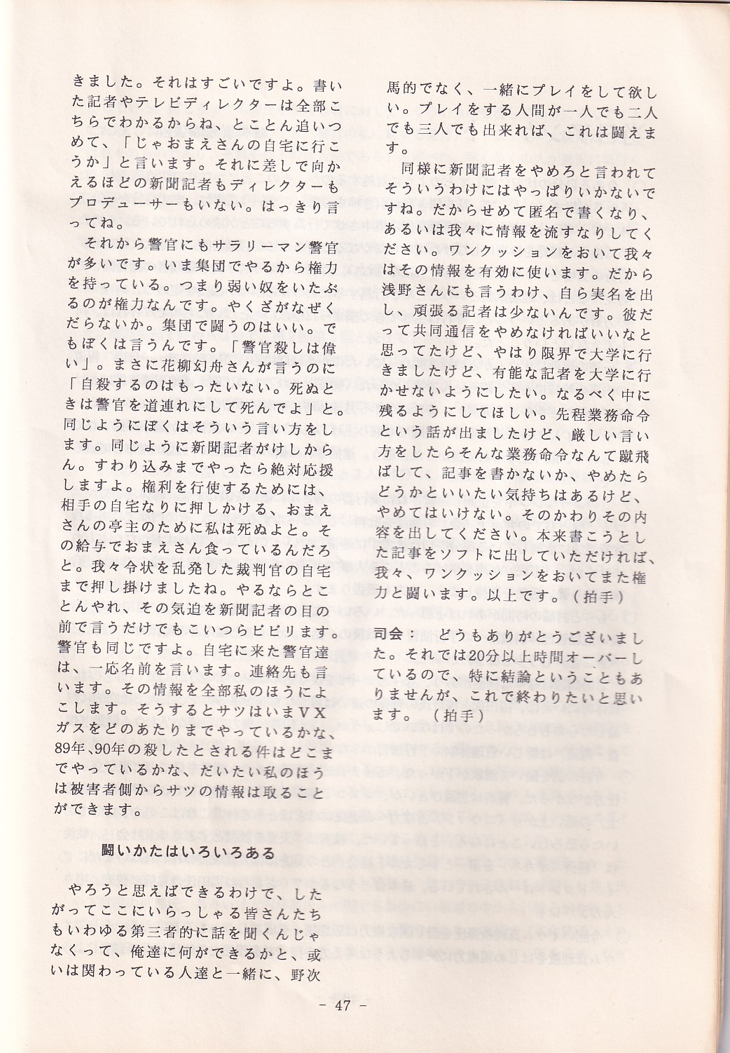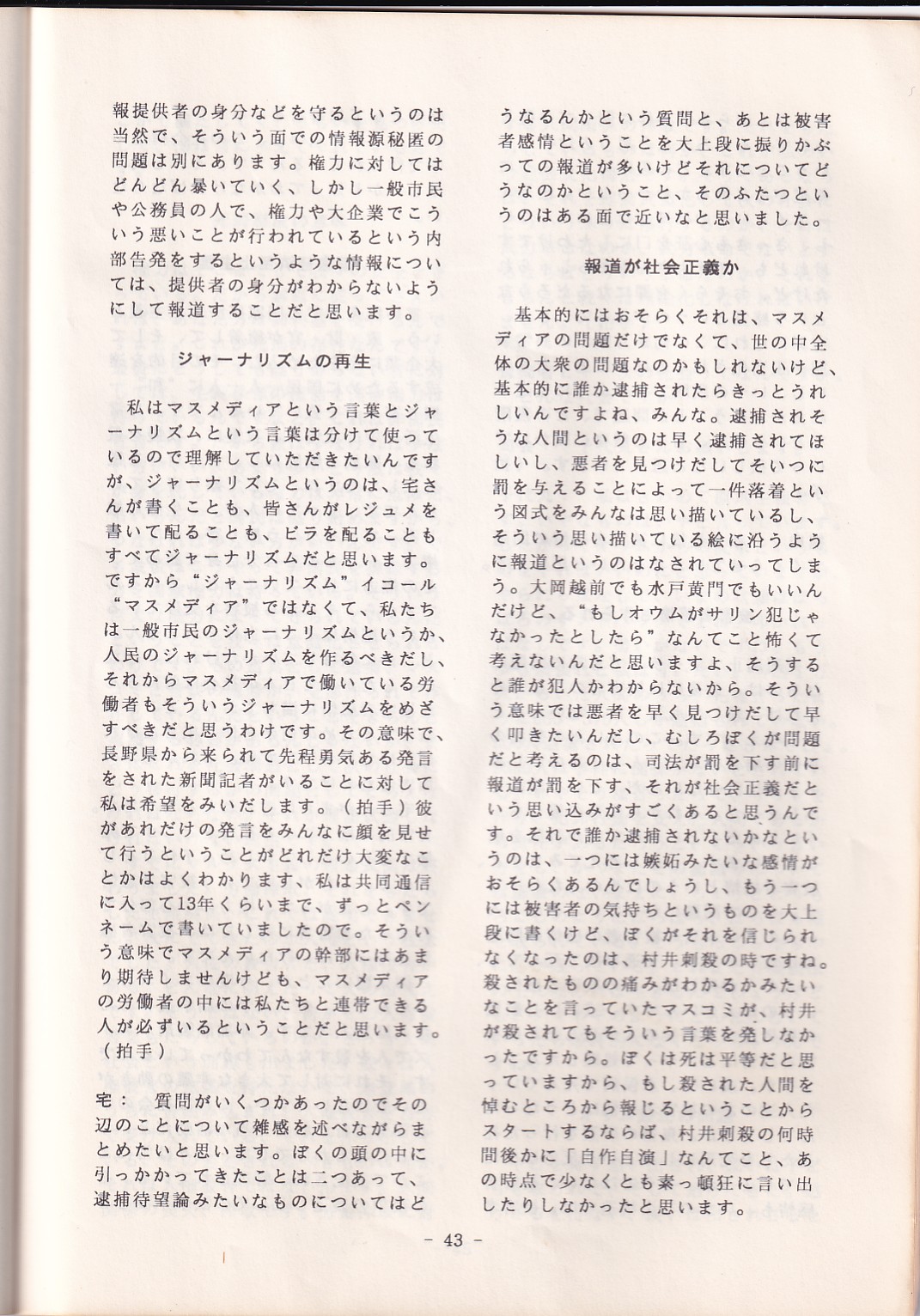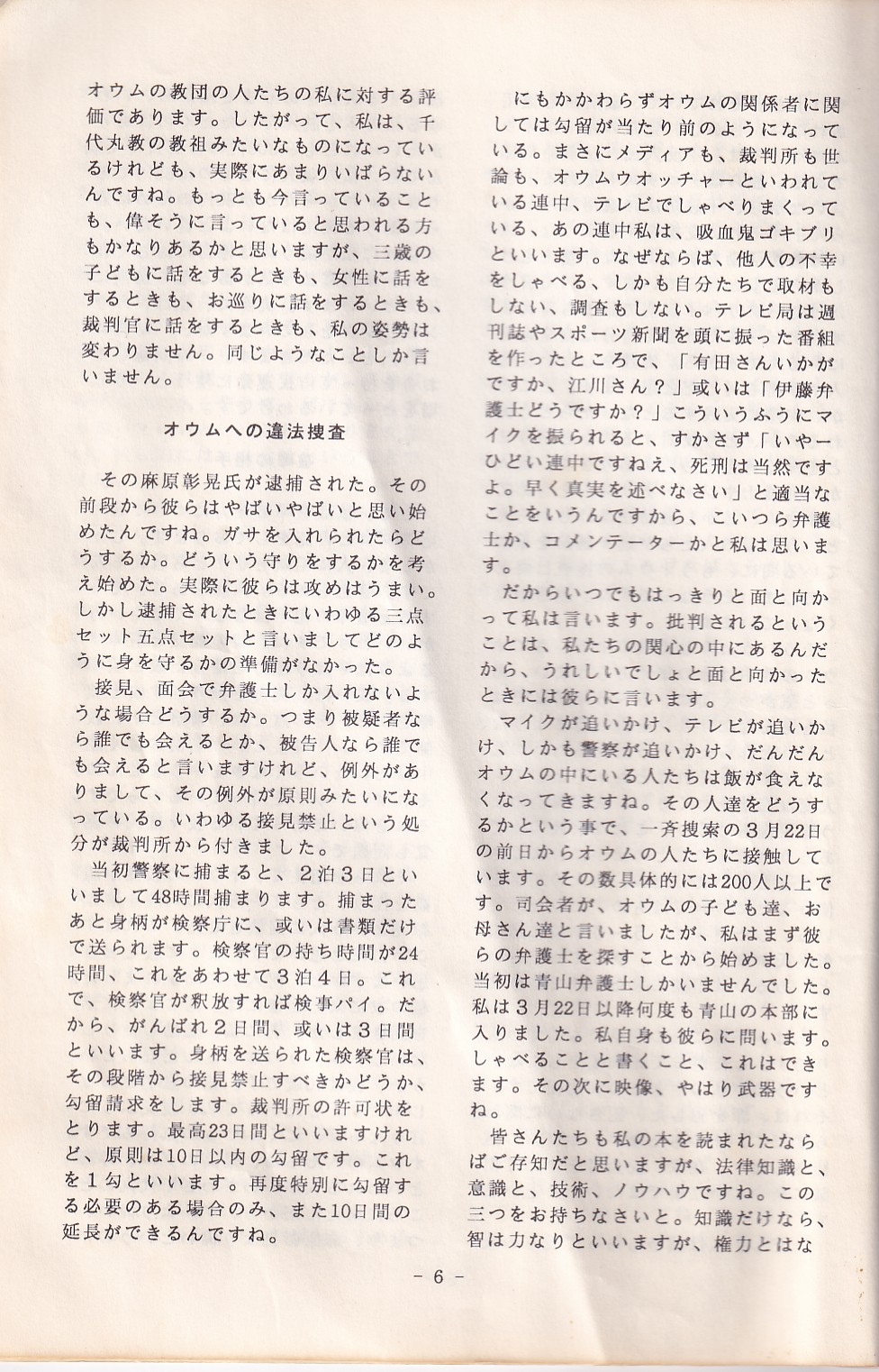 95・12・3シンポジウムの記録 オウム問題における人権
