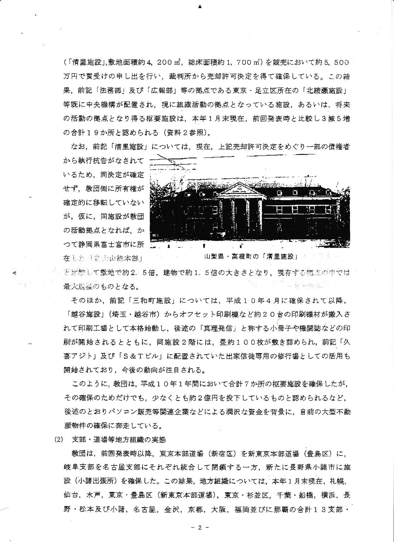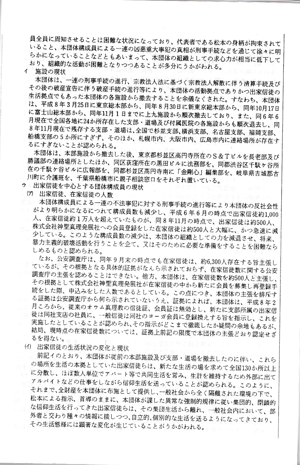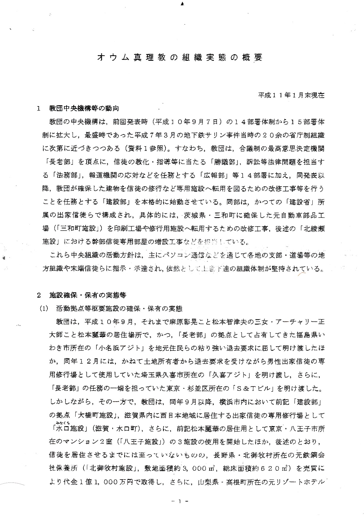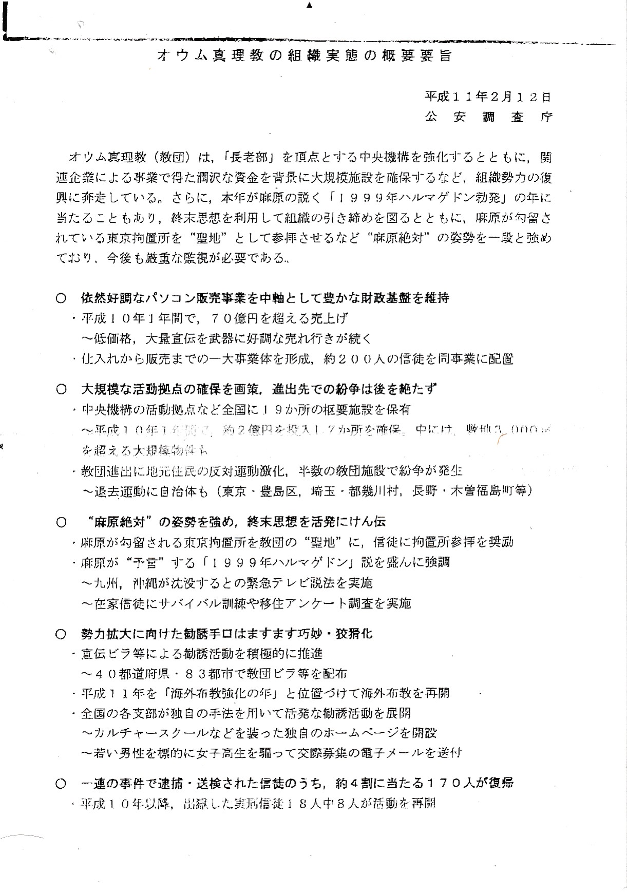 オウム真理教の組織実態の概要要旨(平成11年2月11日公安調査庁)