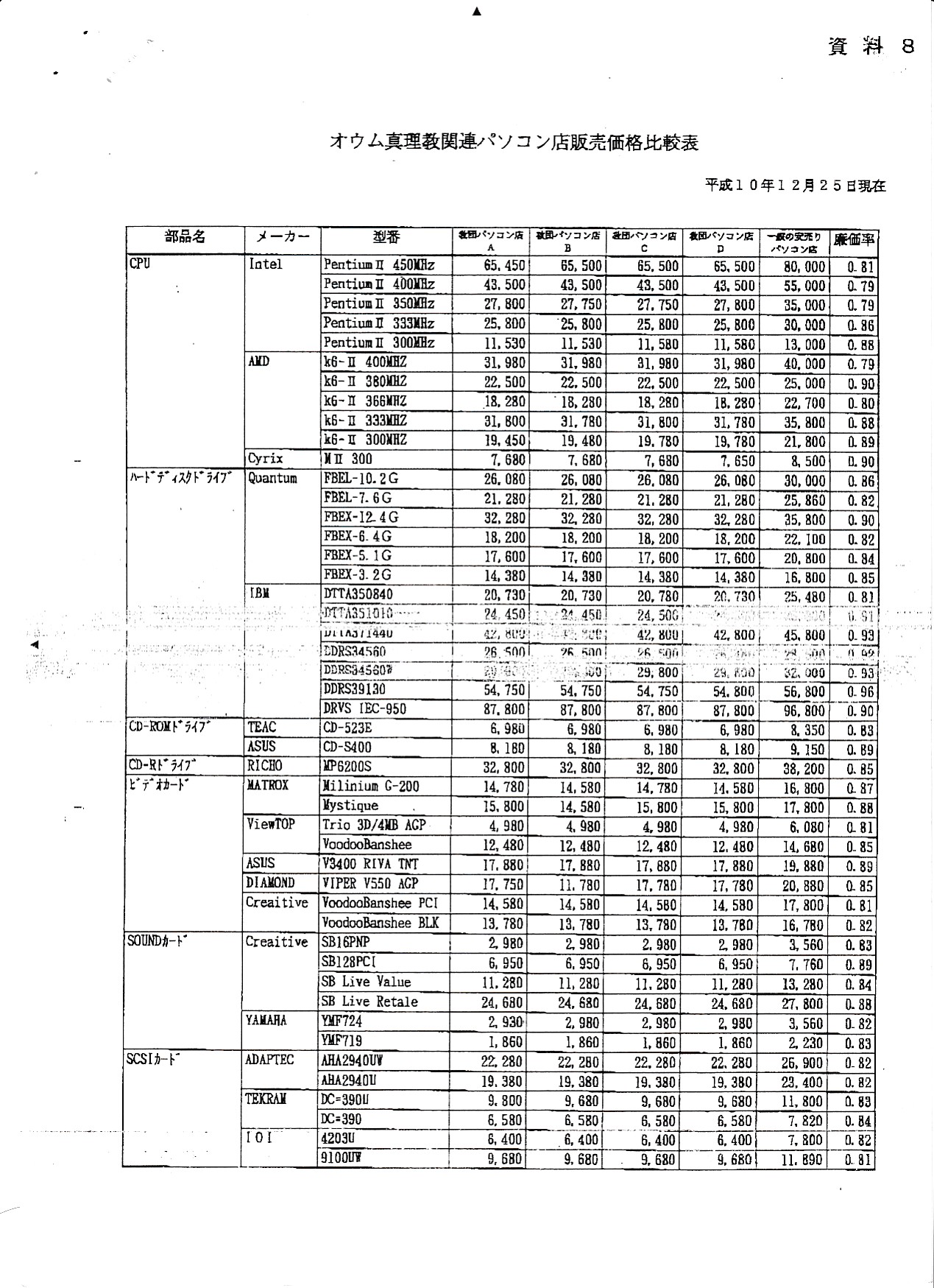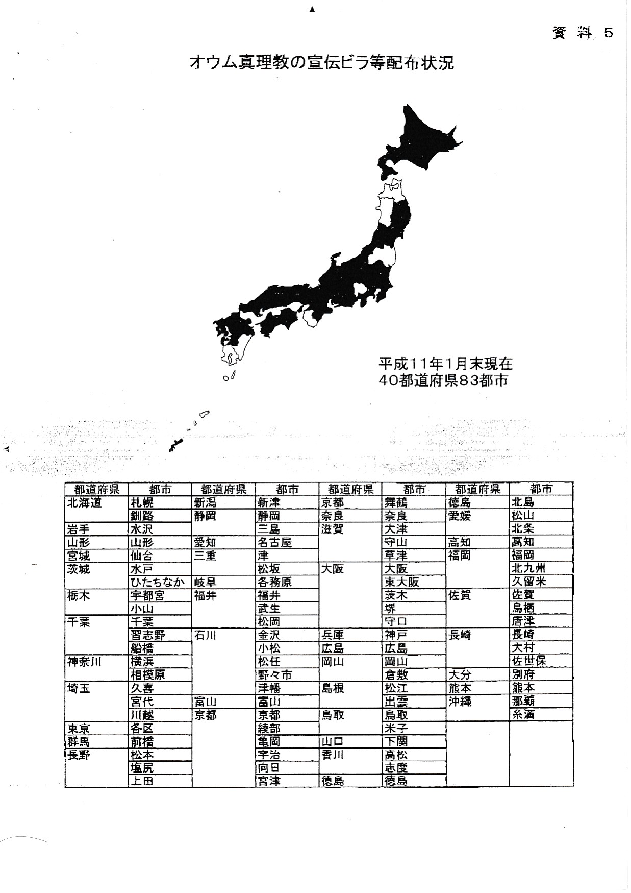 平成11年(1999年)の公安調査庁資料。FAXをコピーしたような状態です。何に使用したのか不明。なかなか綺麗にまとめてあるので、外部の誰かに見せるための資料と思われます。