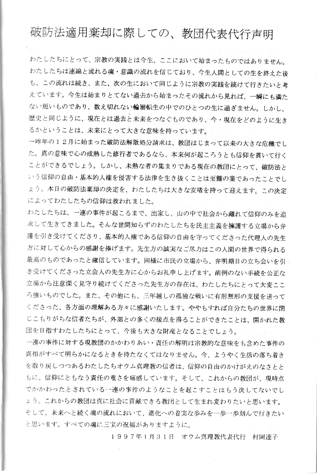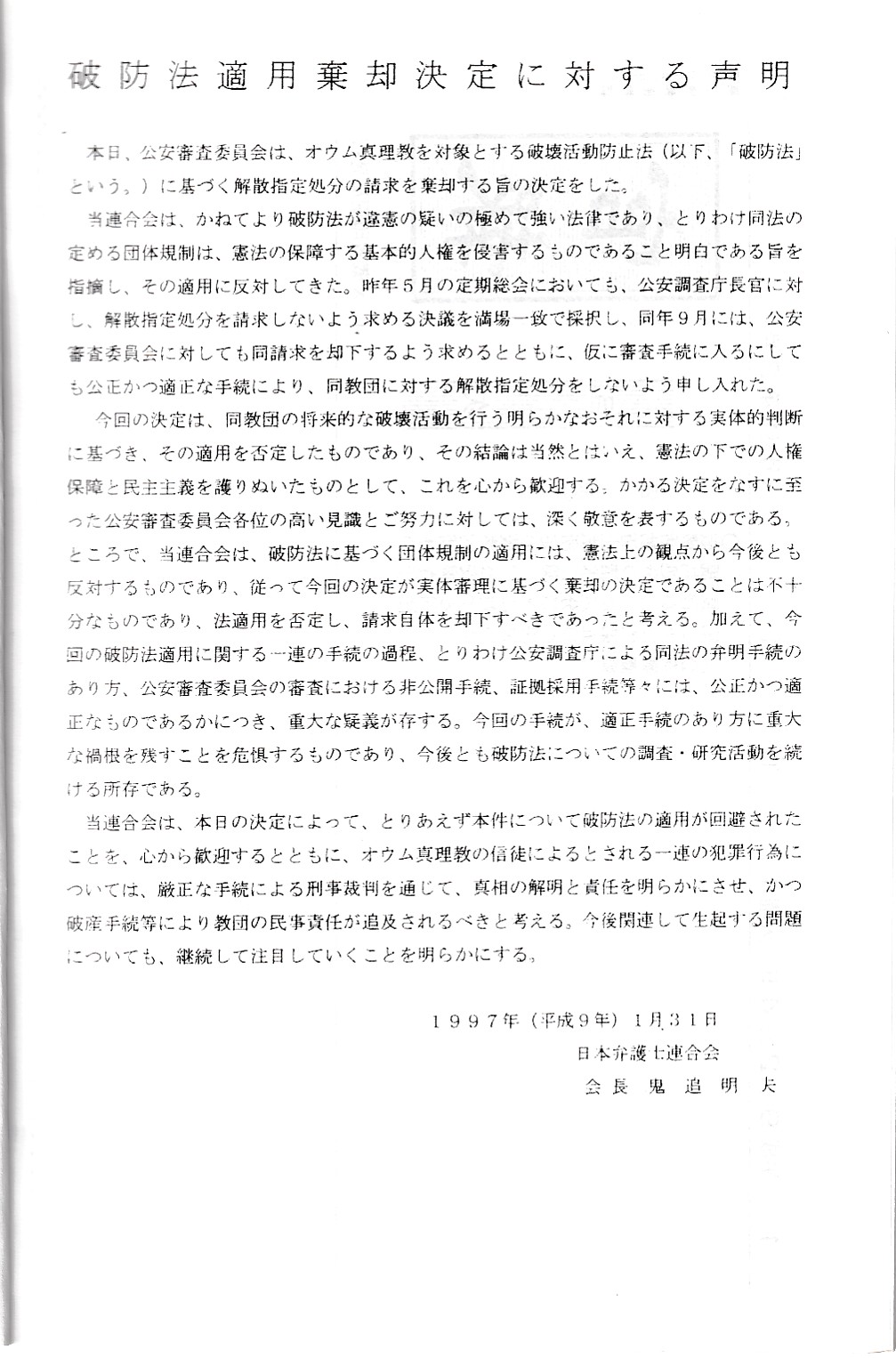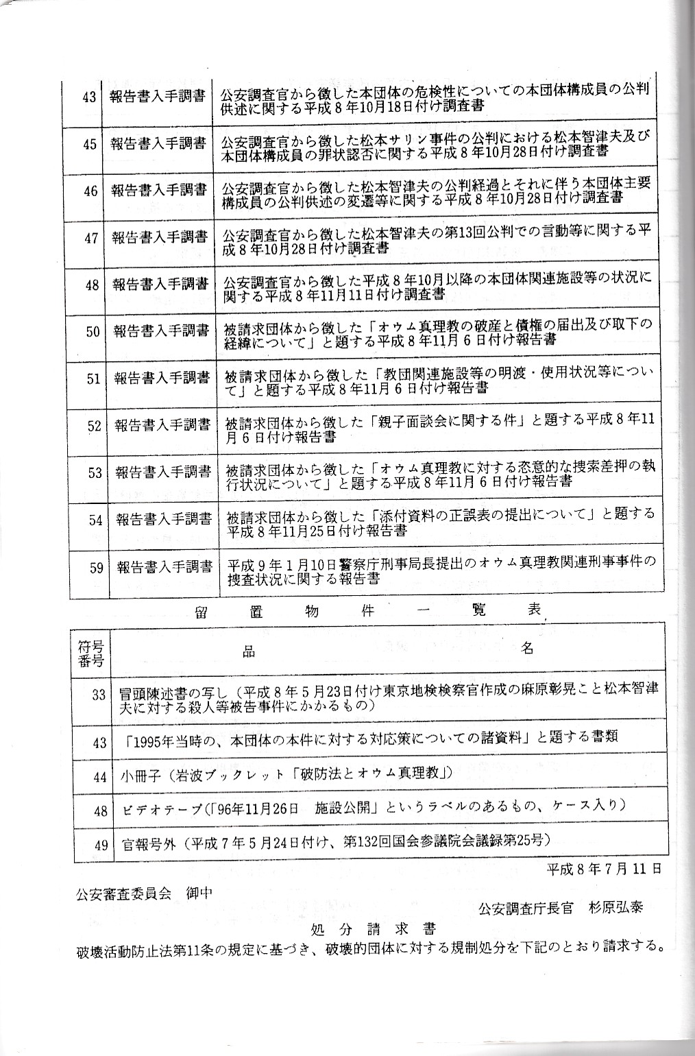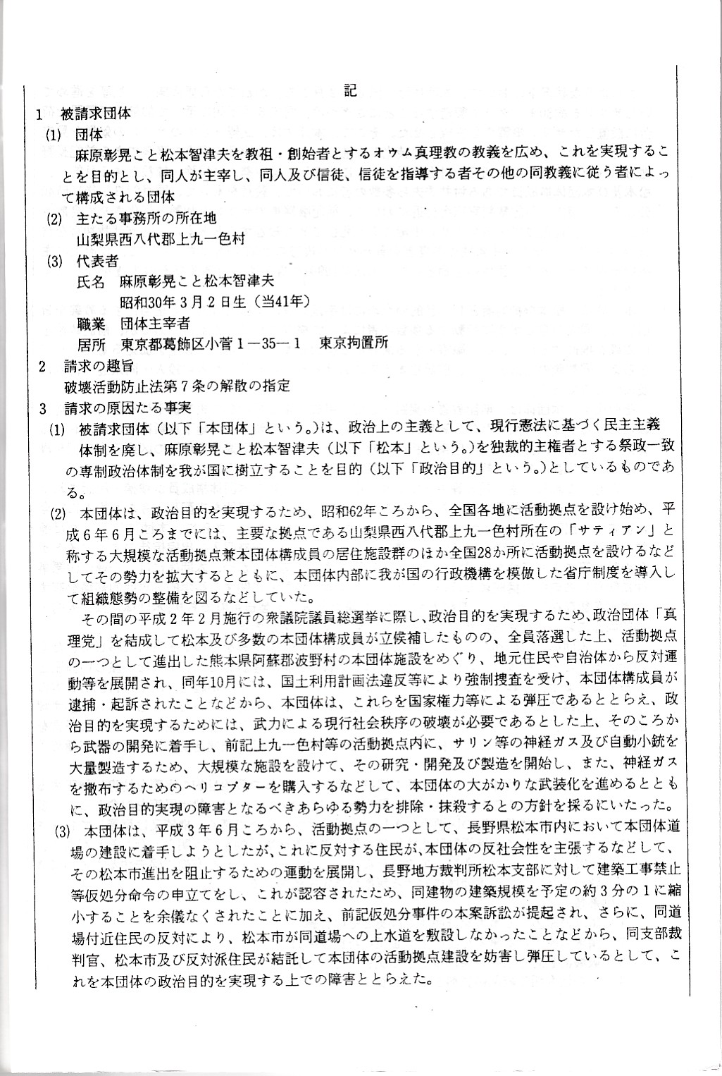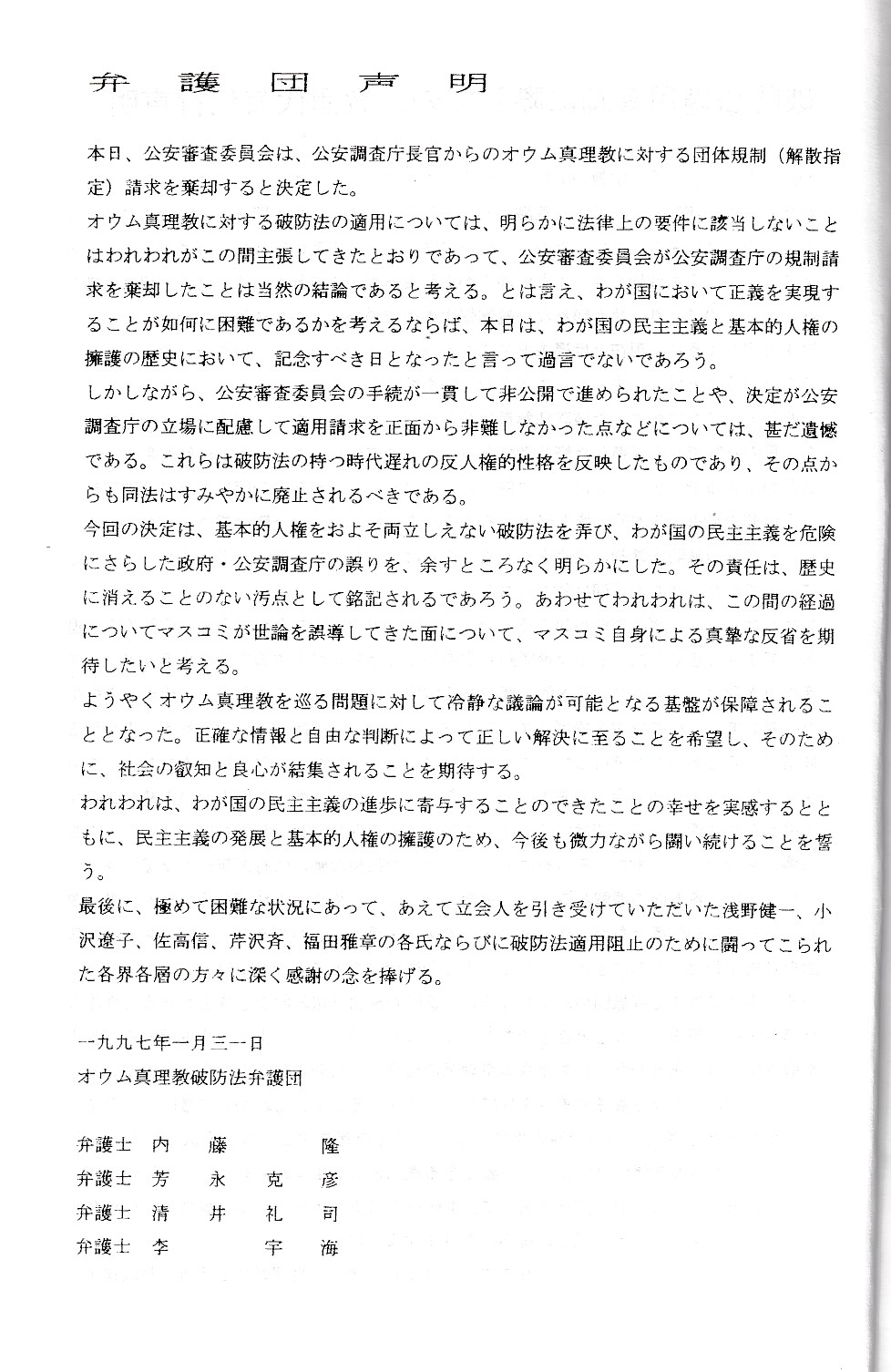 ここでは、オウム真理教破防法関係の資料を公開していきます。