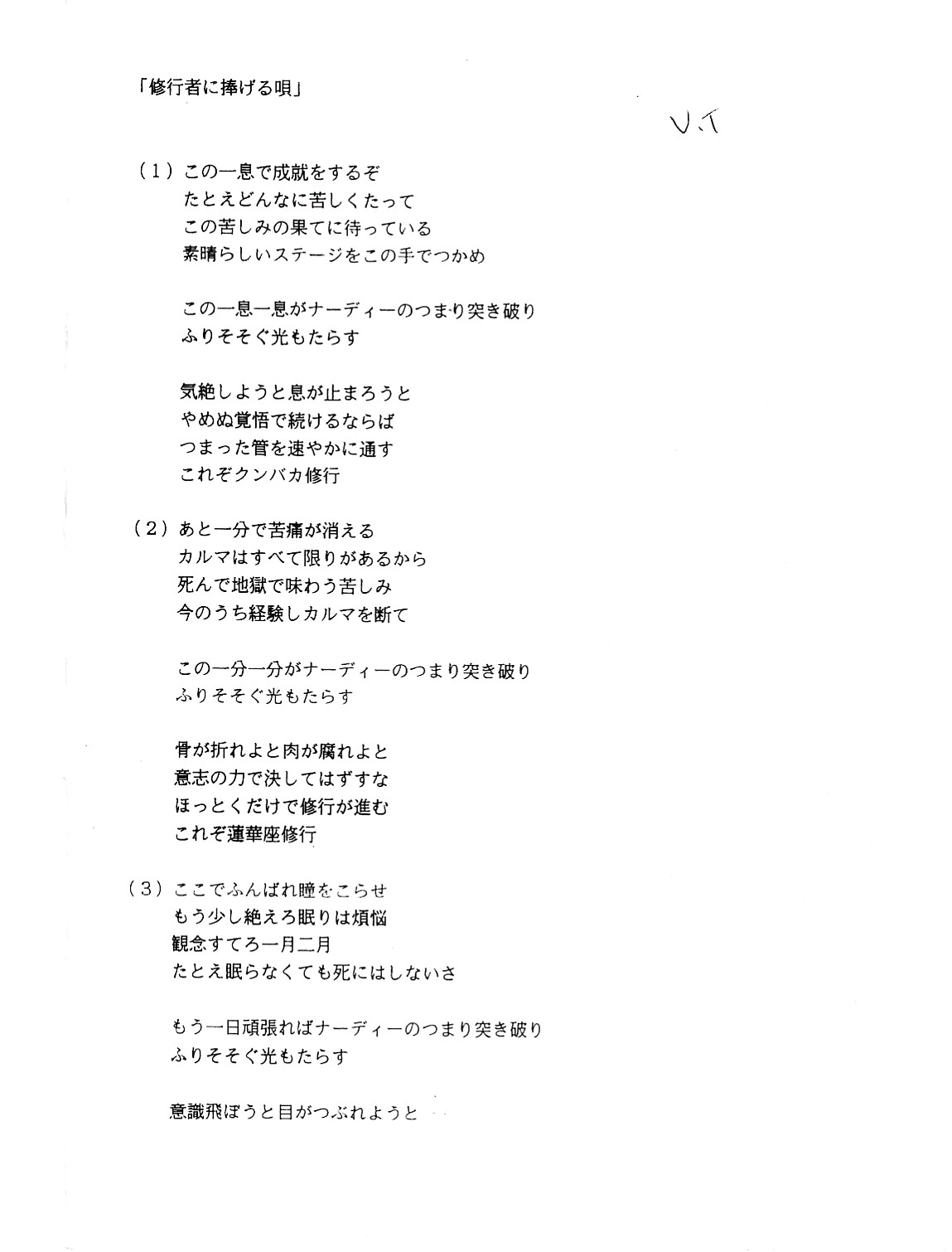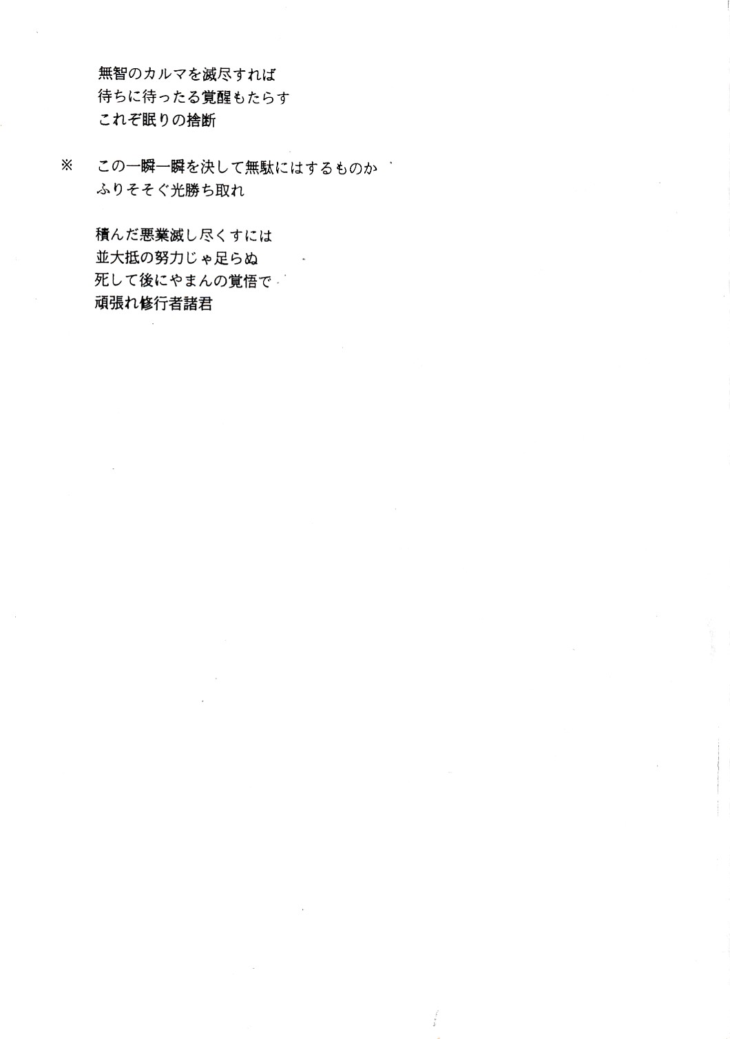 | 讃歌 | 覚者 | 輪廻転生 | 打ち勝て悪魔に | 休まずたゆまず真理の修行 |
