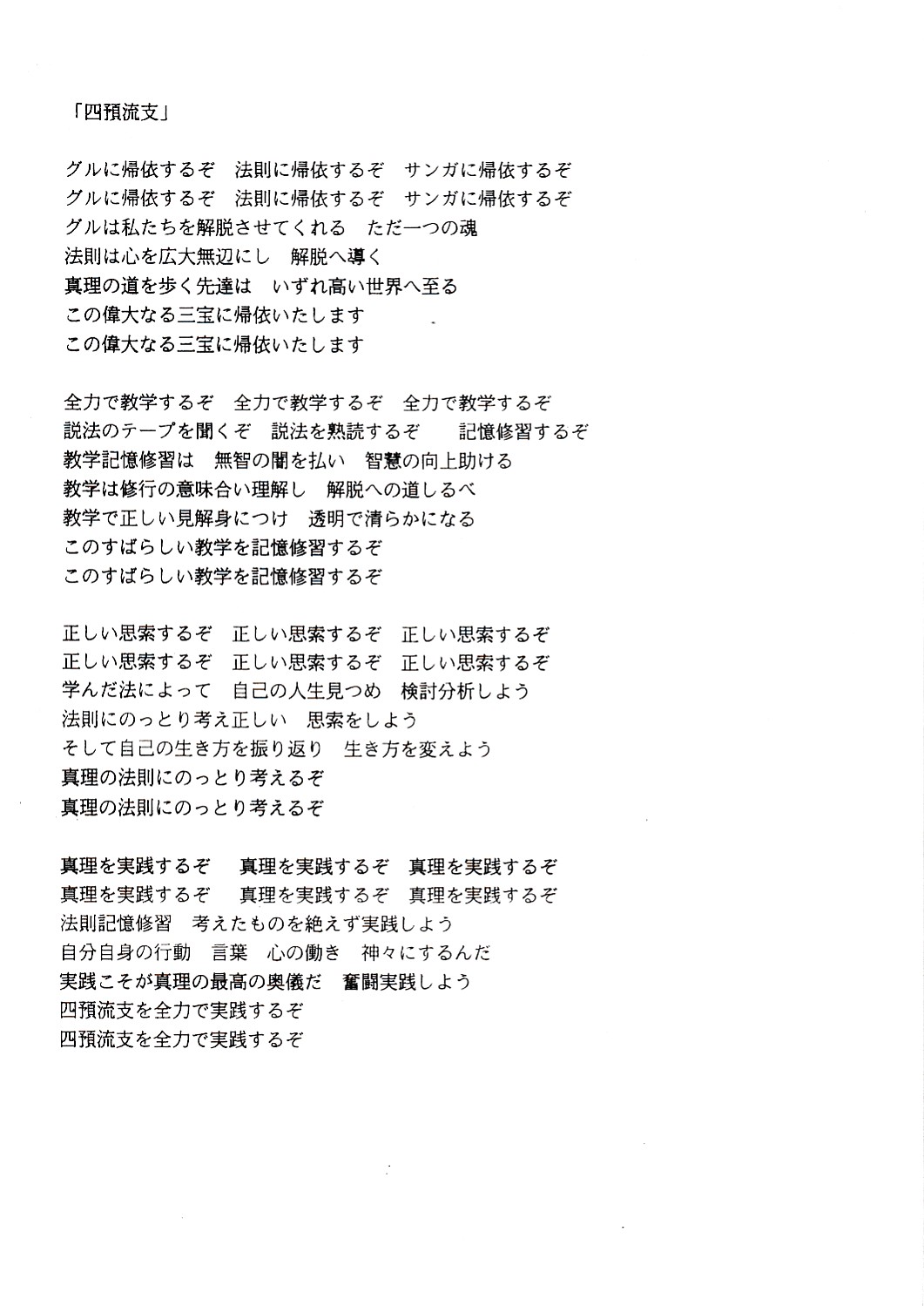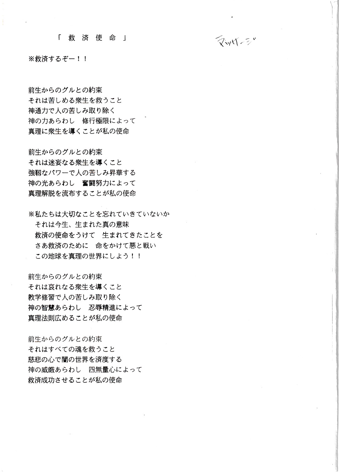 宗教団体・アレフ歌詞集(信徒用)