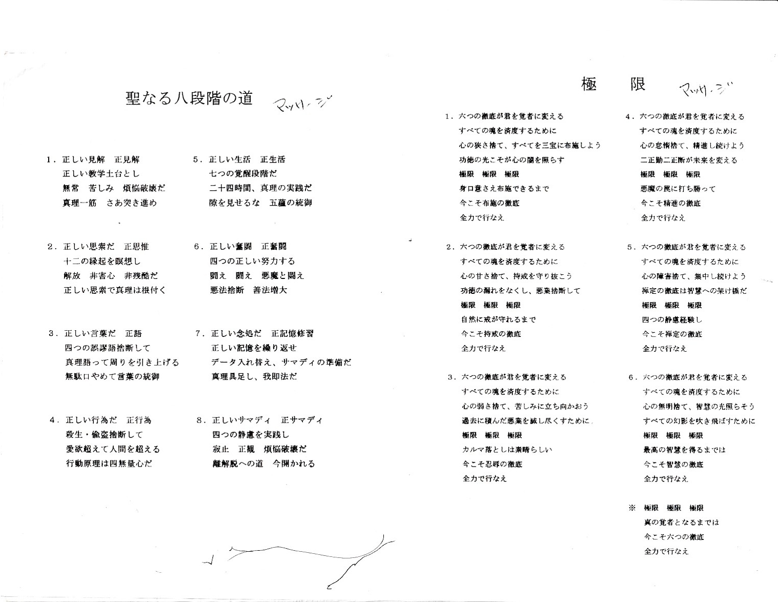 オウム真理教の歌詞カード(「覚者」踊りつき)