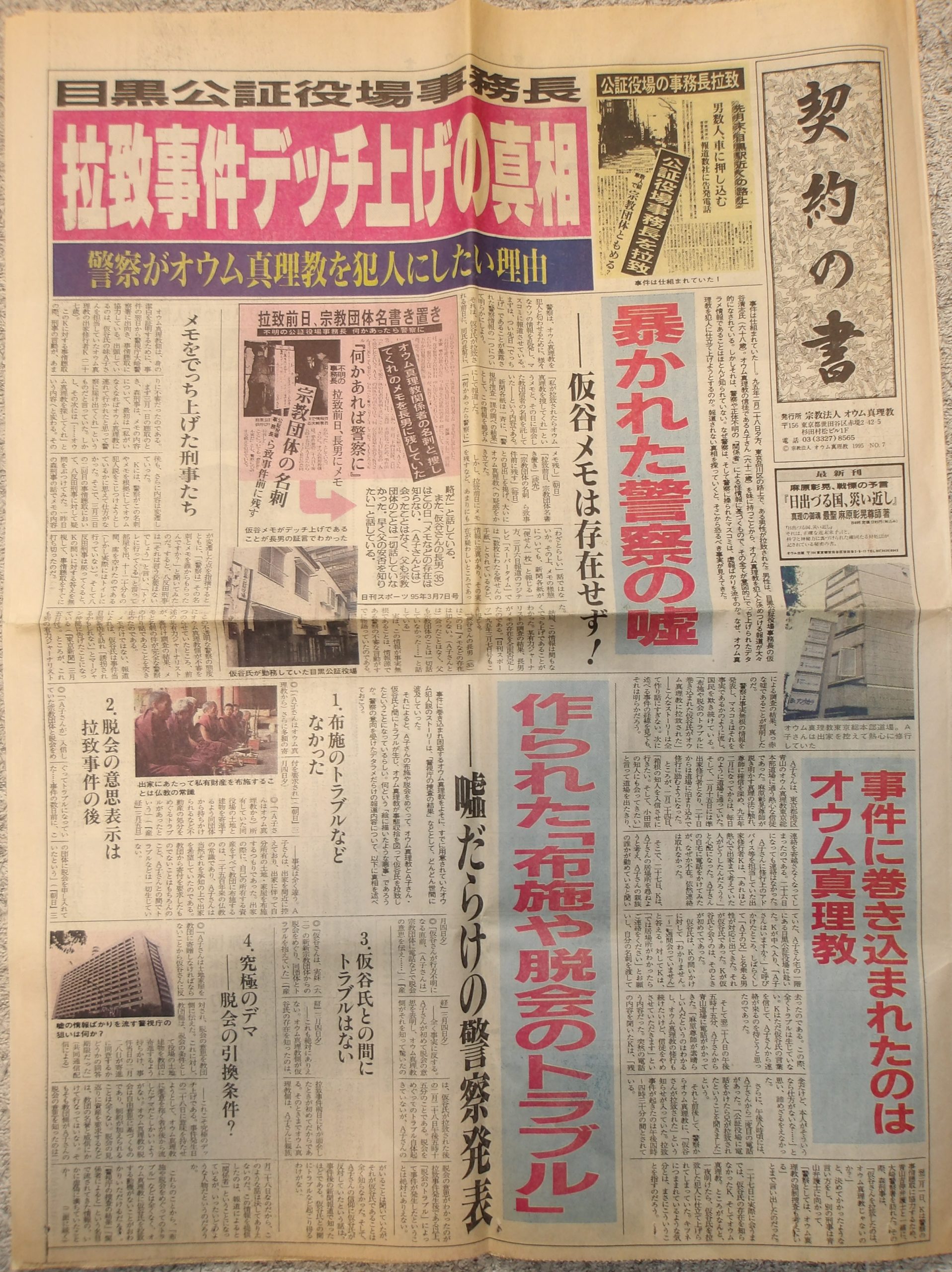 地下鉄サリン事件前後に発行された激ヤバものと思われます。1が仮谷清志さん拉致監禁殺人事件後に発行、2は果たして地下鉄サリン事件後の発行なのか。オウム真理教がサリン攻撃を受けているという内容です。