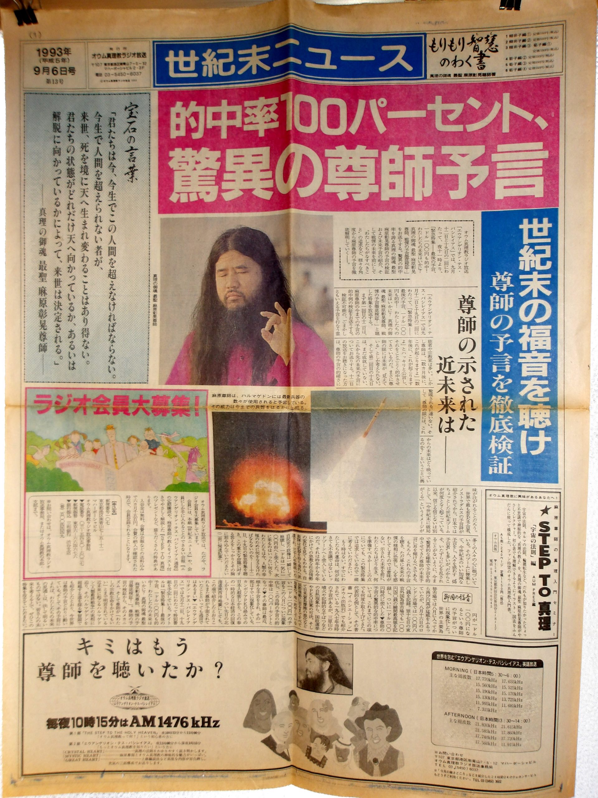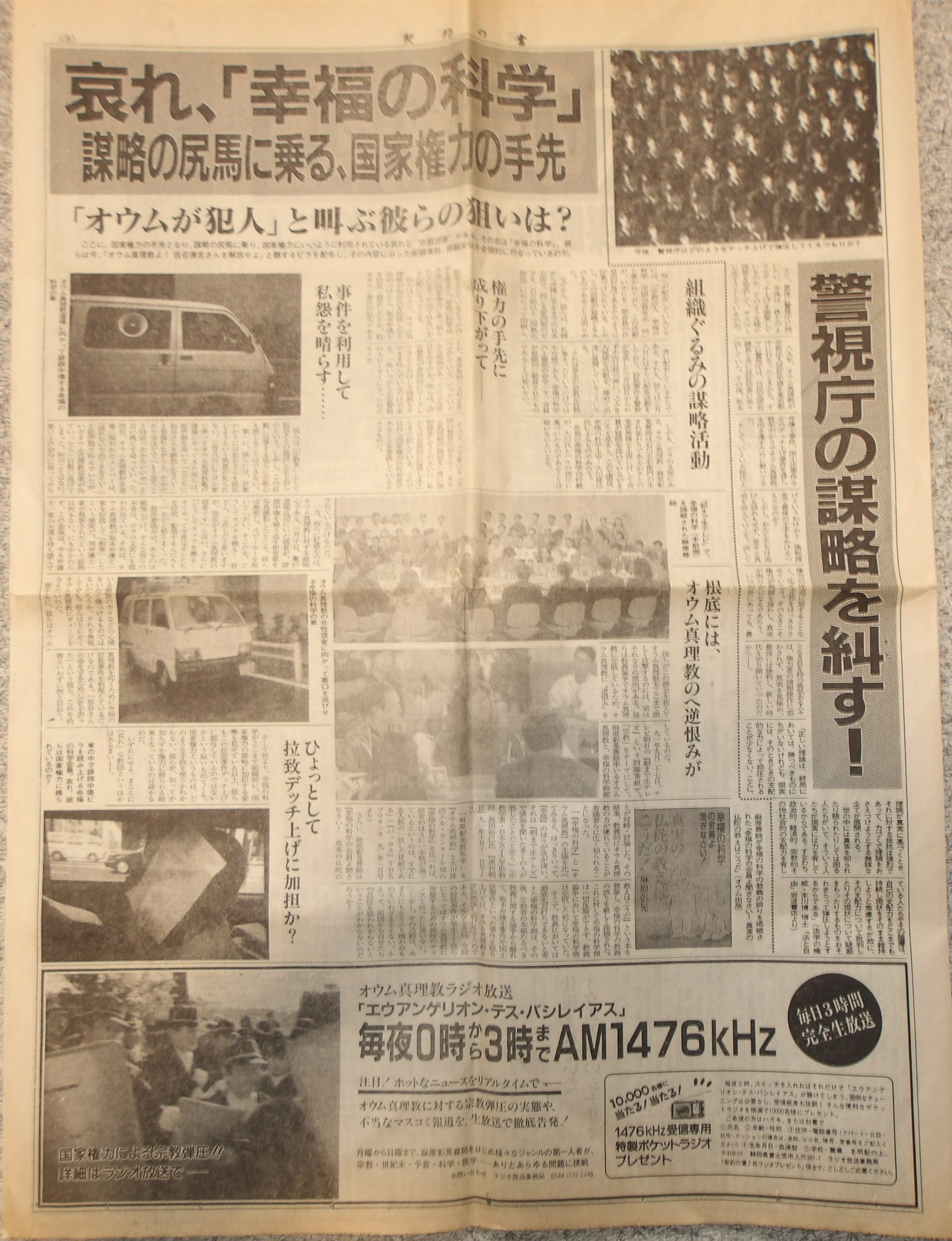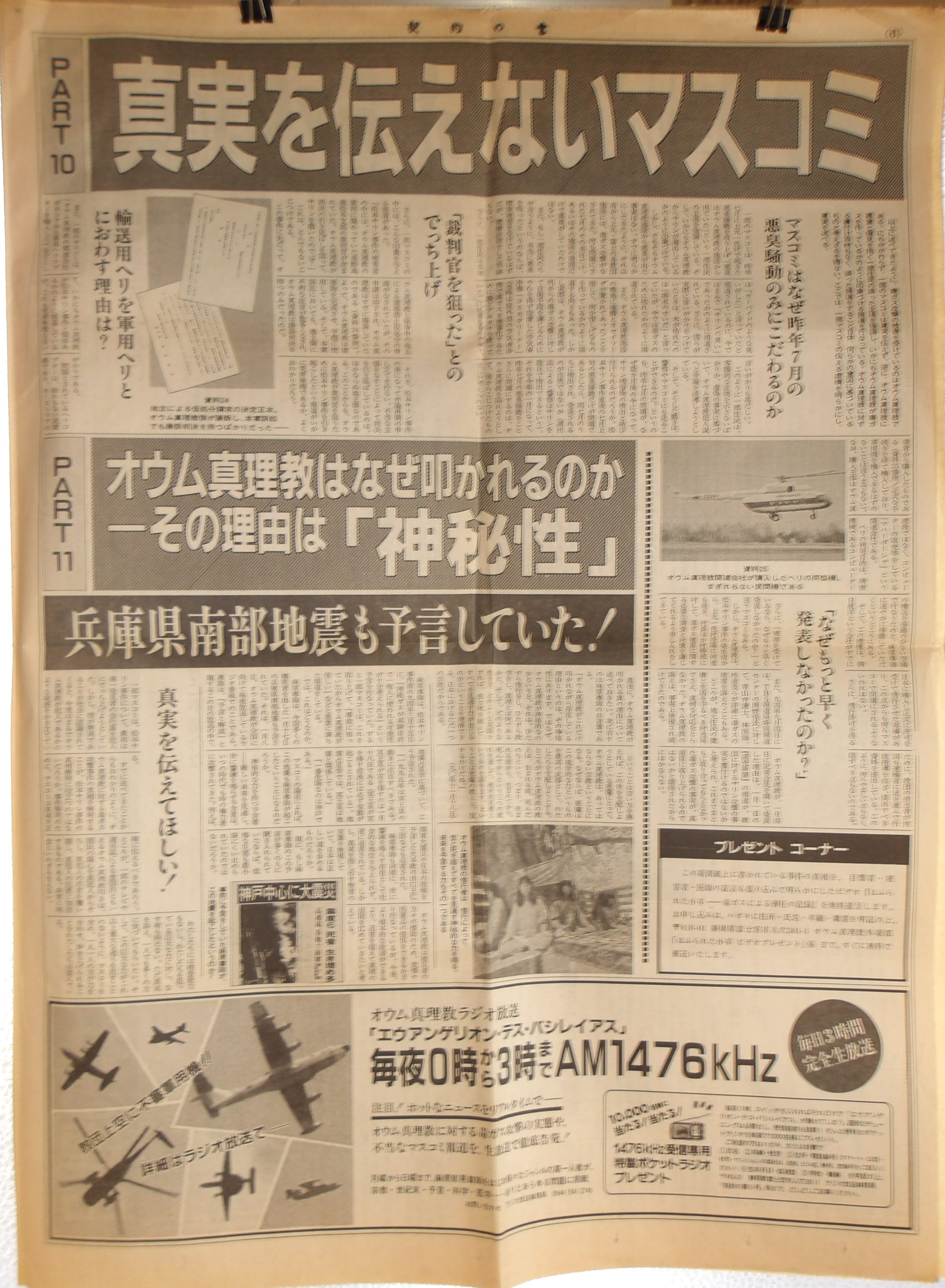 いかにもオウム真理教らしい胡散臭さ100%の謎の新聞。どう利用されたのか等、一切不明。