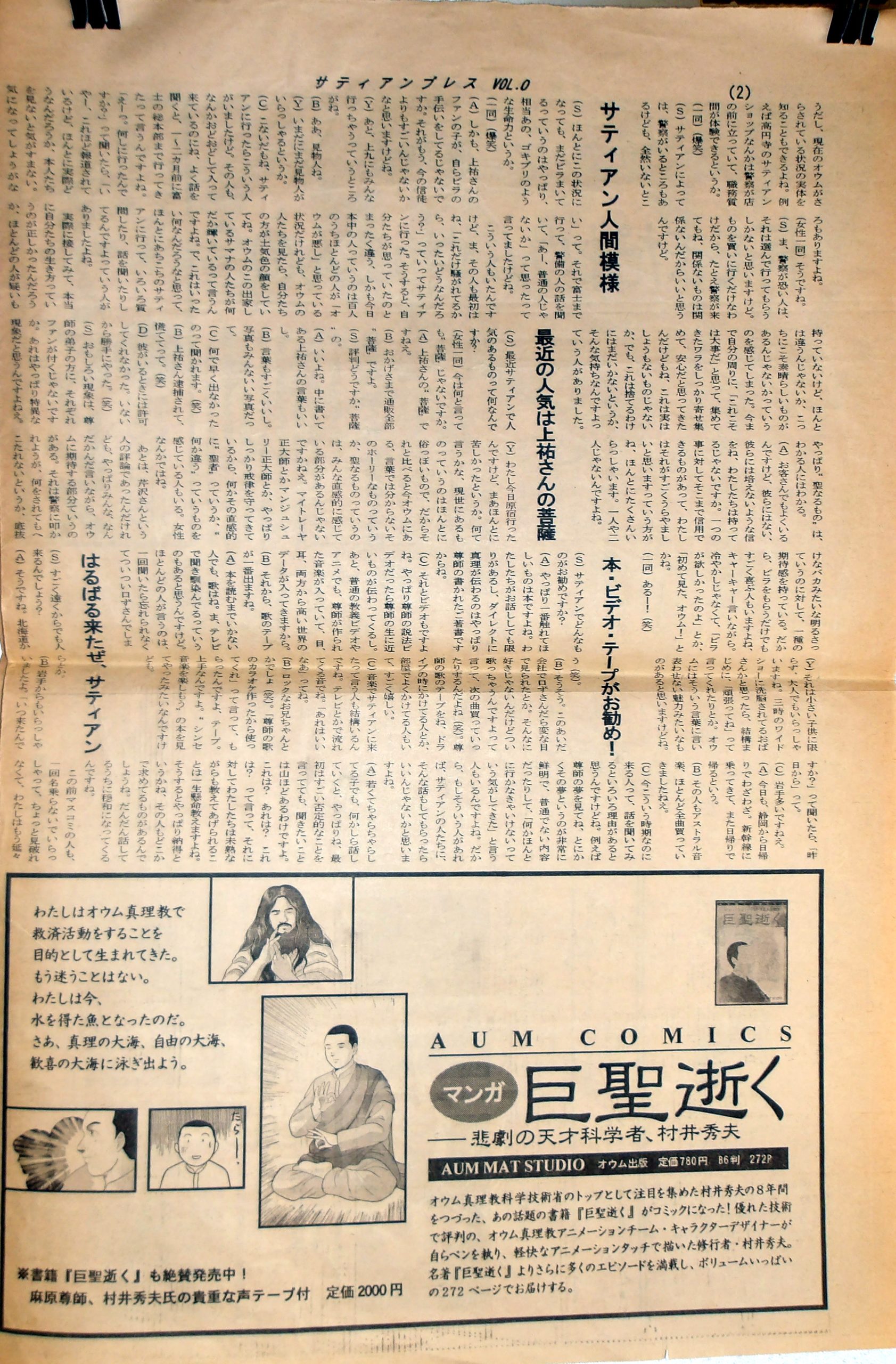 おそらくサティアンショップで配られていたのでしょう。しかし、もう受け取ったシチュまで覚えていません。なお、vol.0の次号(vol.1?)が出たのかは不明。