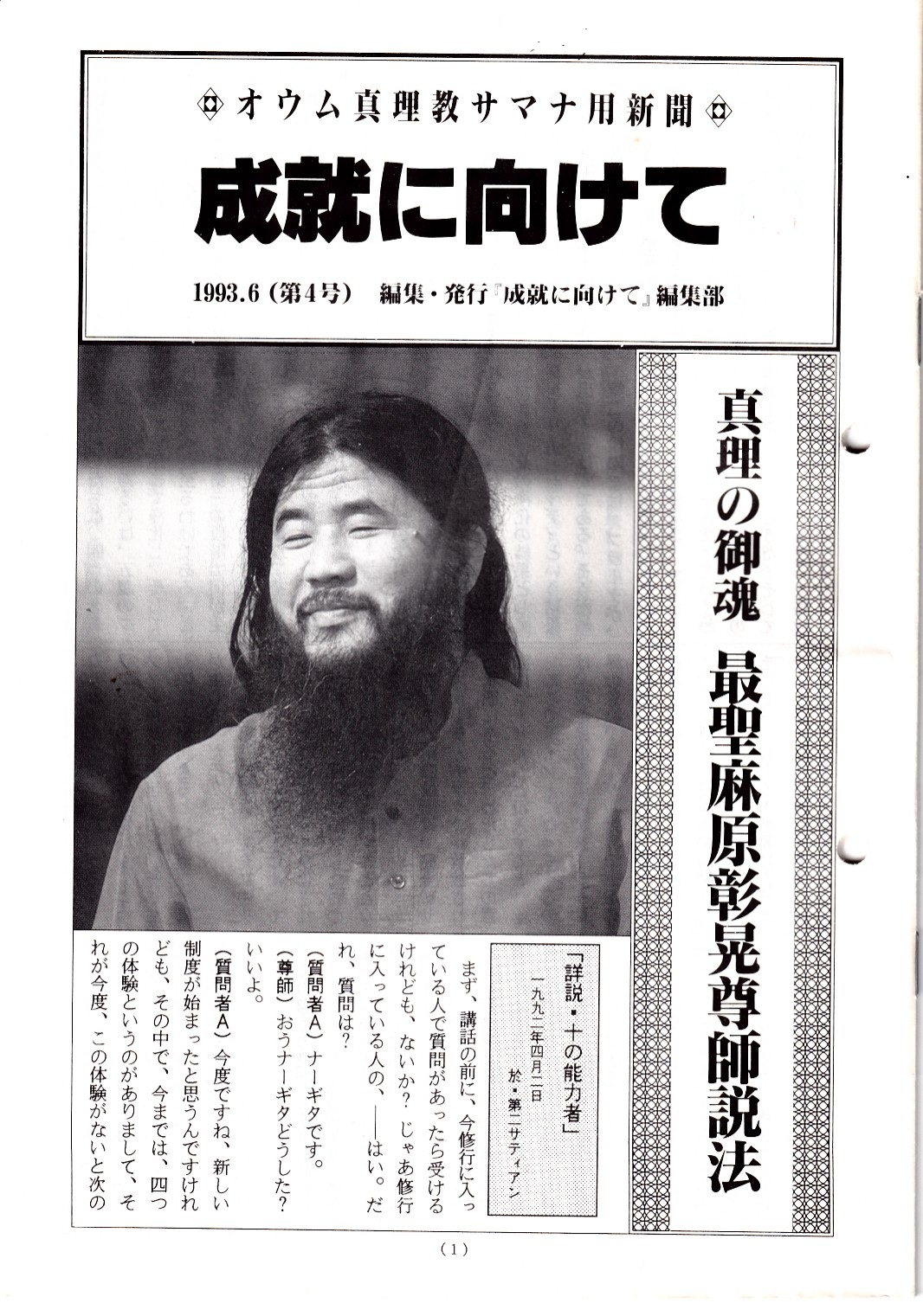 1993年3月創刊号。第4号まで所持しています。どういう性格の雑誌なのか分かりませんが、P.1の発刊のことばに、文字通り「成就に向けて」発行すると記載されているので、おそらく成就を目指すサマナを対象に発行したと思われます。